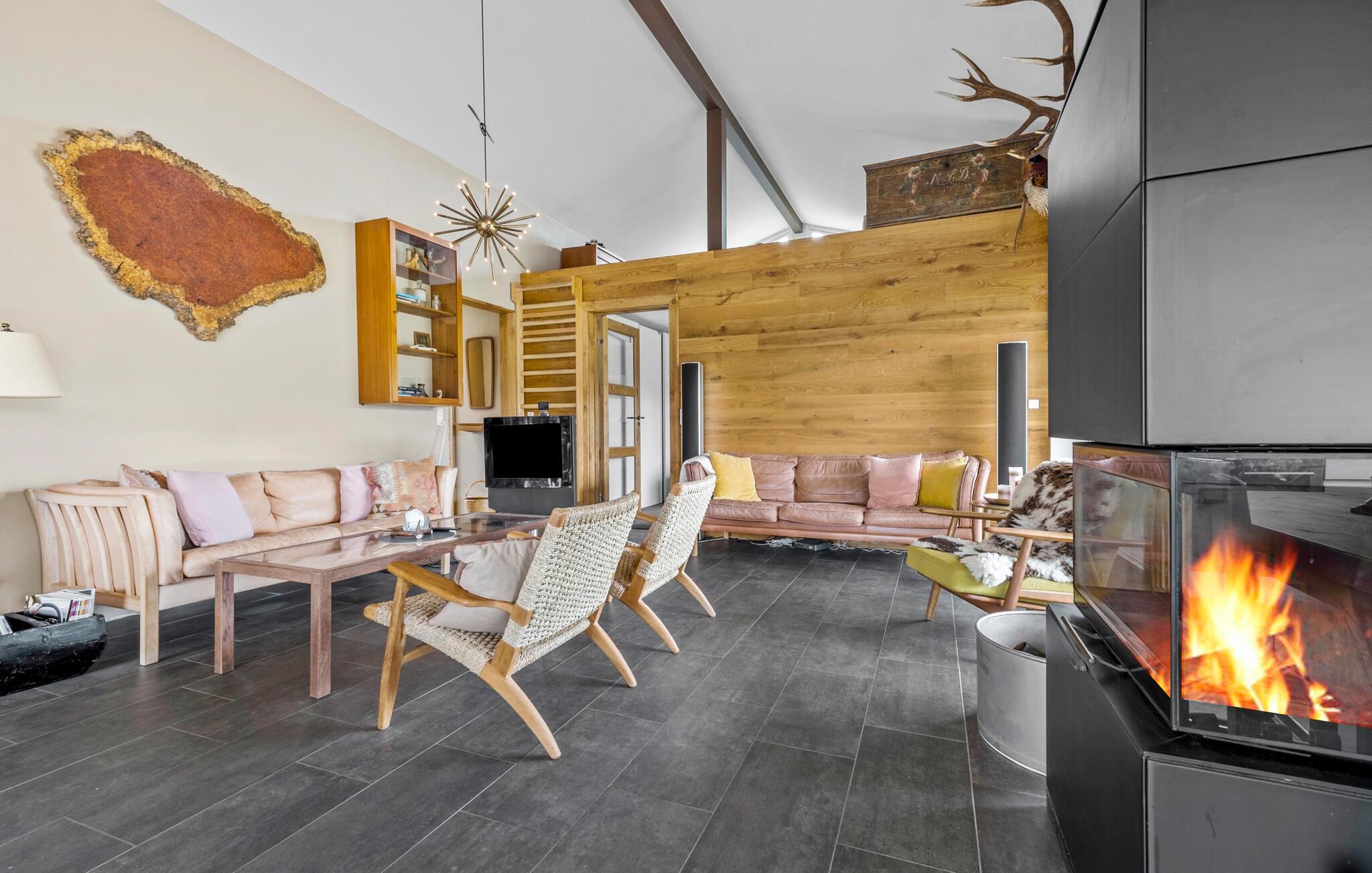 Freuen Sie sich auf eine wunderbare Auszeit mit der Familie oder Freunden in diesem gemütlichen Ferienhaus auf einer idyllischen Insel. Im Inneren des Hauses erwartet Sie ein Wohnbereich, der stilvoll eingerichtet ist. Machen Sie es sich vor dem knisternden Kaminofen bequem oder genießen Sie Ihre Mahlzeiten in der geräumigen Küche mit Essbereich, die zum gemeinsamen Kochen einlädt. Das großzügige Wohnzimmer bietet mit seinen bequemen Sitzgelegenheiten viel Platz, um mit der ganzen Familie Spiele zu spielen oder in Ruhe zu lesen.