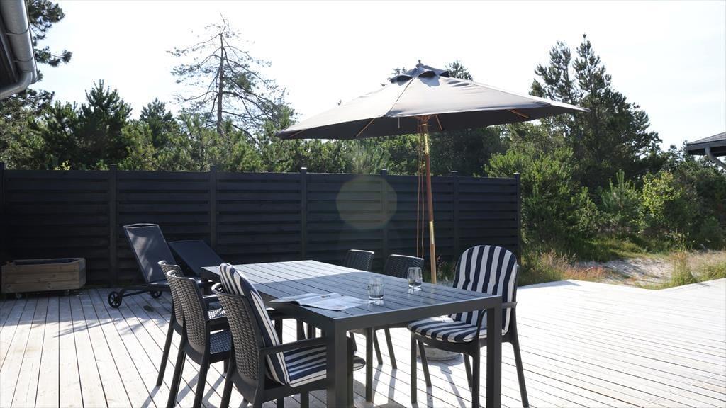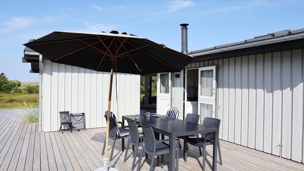 Das Ferienhaus liegt mit direktem Zugang zum Strand. Einfach die Sanddüne hinaufgehen und schon bist du am Strand. Hier kannst du von morgens bis abends baden. Eure Kinder können kleine Muscheln sammeln, ihre eigene Sandburg bauen oder Krabben angeln, während ihr dem Meer lauscht. Auf der Terrasse könnt ihr die Sonne genießen, während ihr dem Gesang der Vögel lauscht oder mit etwas Glück ein Reh vorbeilaufen seht. Auf dem Gelände kannst du auch die erstaunlichsten Heidekraut- und Sanddünen bewundern, die dich vom Meer abschirmen. Obwohl du dich an einem der besten Sandstrände Dänemarks befindest, hast du das Glück, direkt an einem ruhigen Teil des Strandes zu wohnen.