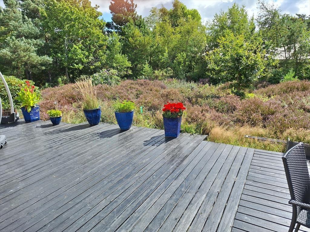Nach einem schönen Tag am Strand könnt ihr euch entweder auf der Terrasse entspannen und einfach die Sonne genießen, während ihr euch in ein gutes Buch vertieft. Denkt auch daran, die Außendusche des Hauses zu nutzen, wo ihr euch unter freiem Himmel abkühlen könnt. Die Naturlandschaft lässt sich nicht beschreiben, man muss sie erleben. Die schöne Heide und die gemütliche Bepflanzung werdet ihr sicherlich zu schätzen wissen. Wenn es Zeit für das Abendessen ist, könnt ihr euch an den Tisch unter dem gemütlichen überdachten Teil der Terrasse setzen, wo ihr auch den Grill im Außenküchenbereich nutzen könnt.