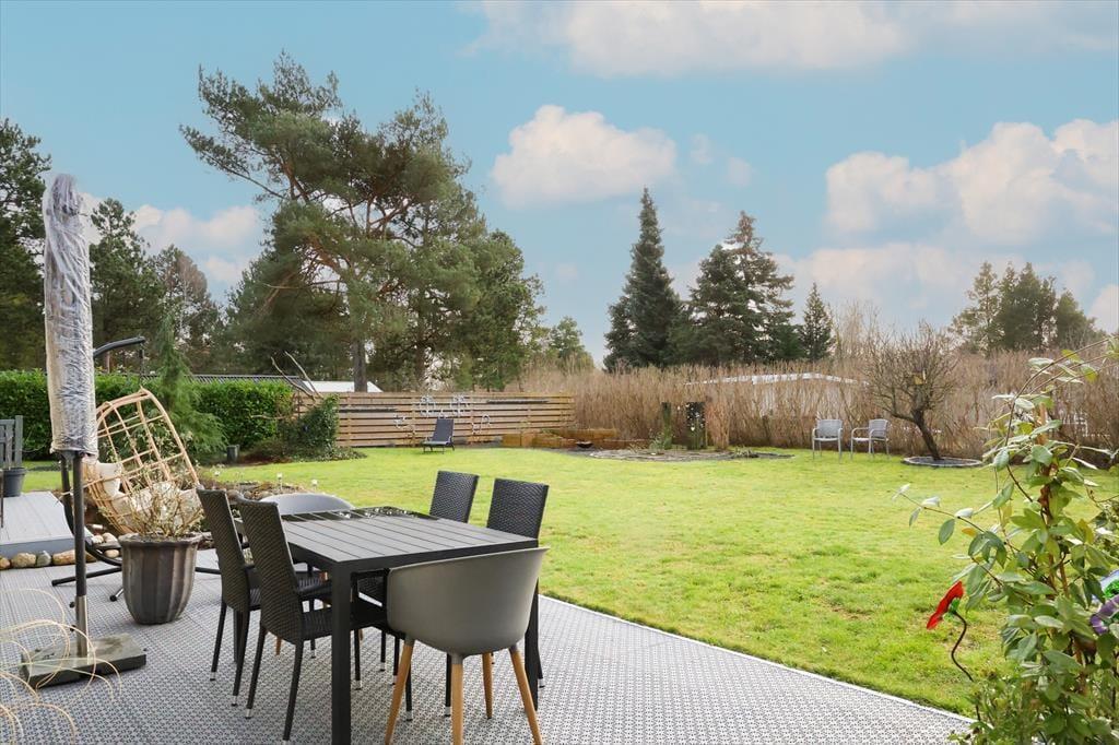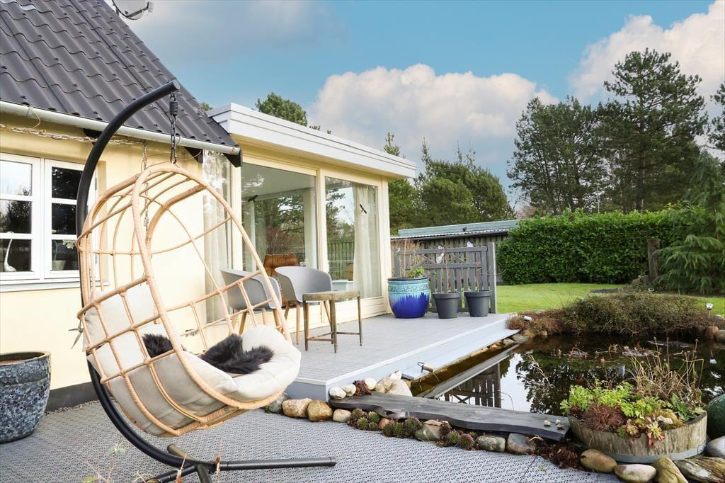 Dein Ferienhaus liegt auf einem schön geschlossenen Grundstück, das durch eine Grasfläche und Büsche geprägt wird. Mehrere gute Terrassenareale bieten den gesamten Tag hindurch windgeschützte Plätze in der Sonne. Auf der großen Südterrasse könnt ihr mittags in geselliger Runde essen. In der Abenddämmerung zieht ihr euch sicherlich lieber auf den überdachten Terrassenbereich zurück, auf dem ihr den langen Tag stimmungsvoll ausklingen lassen könnt. Gemütlich geht es allabendlich rund um die kleine Feuerstelle zu, an der ihr Stockbrote und Marshmallows röstet und Pläne für den kommenden Urlaubstag schmiedet.