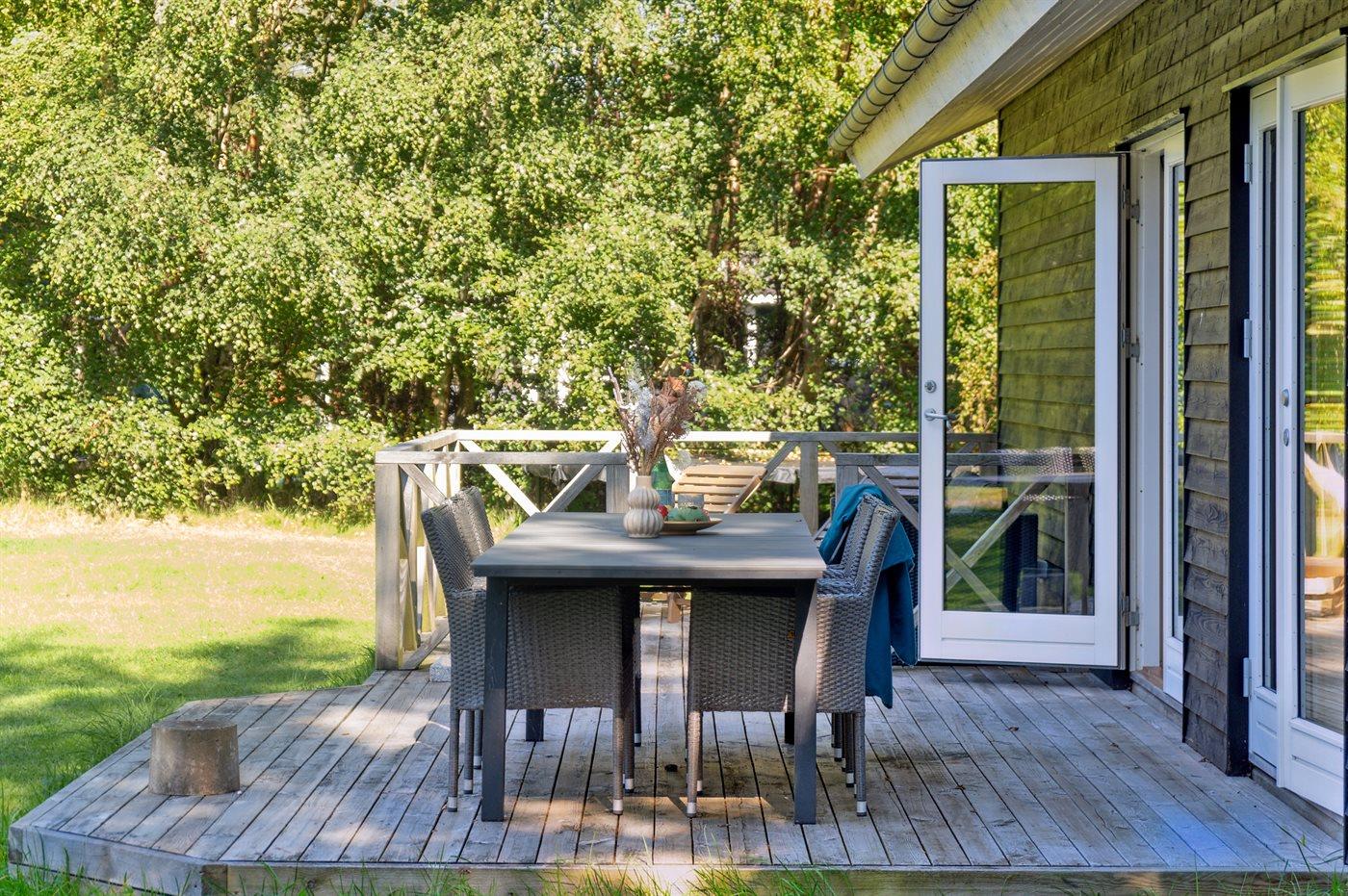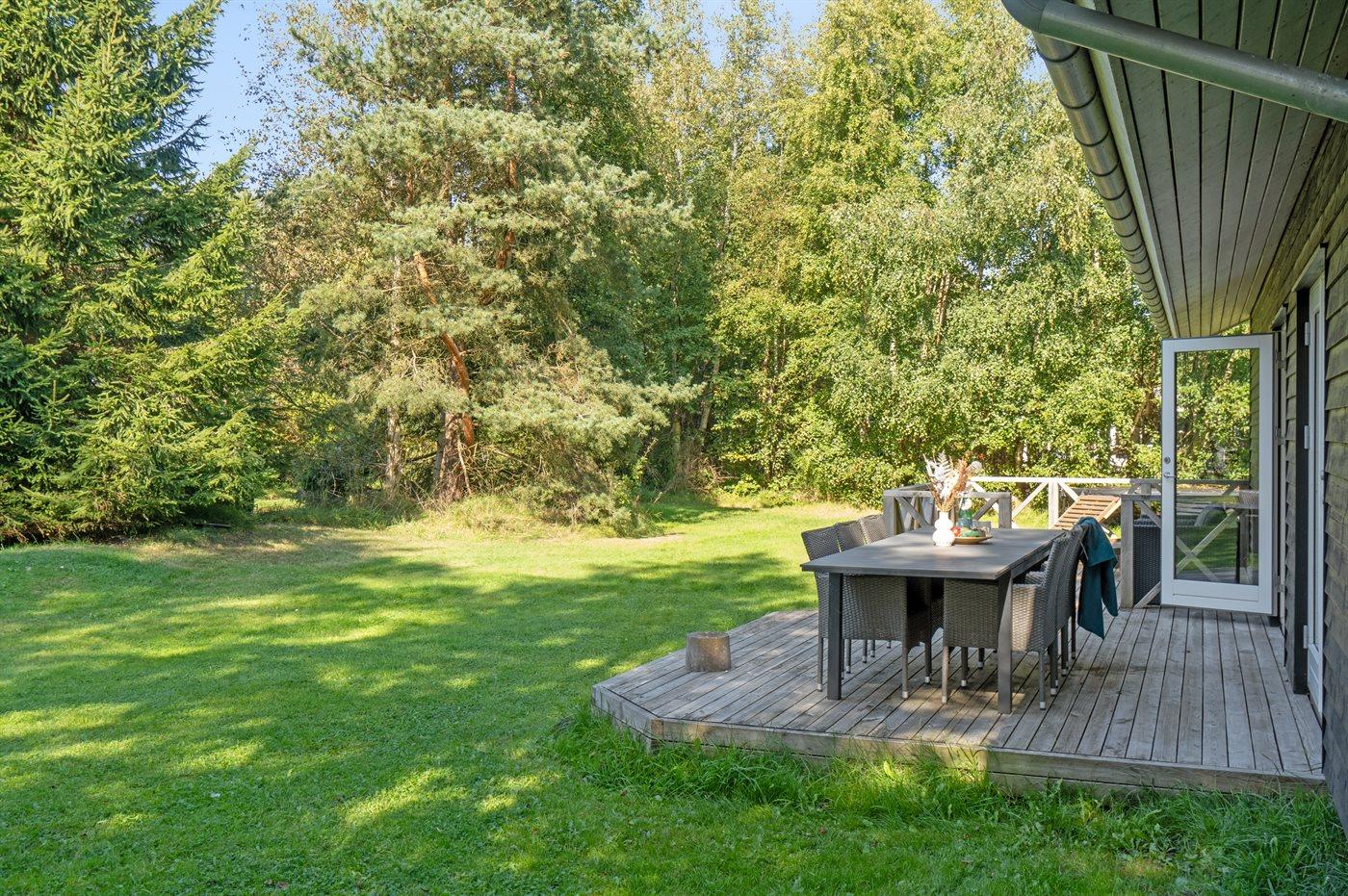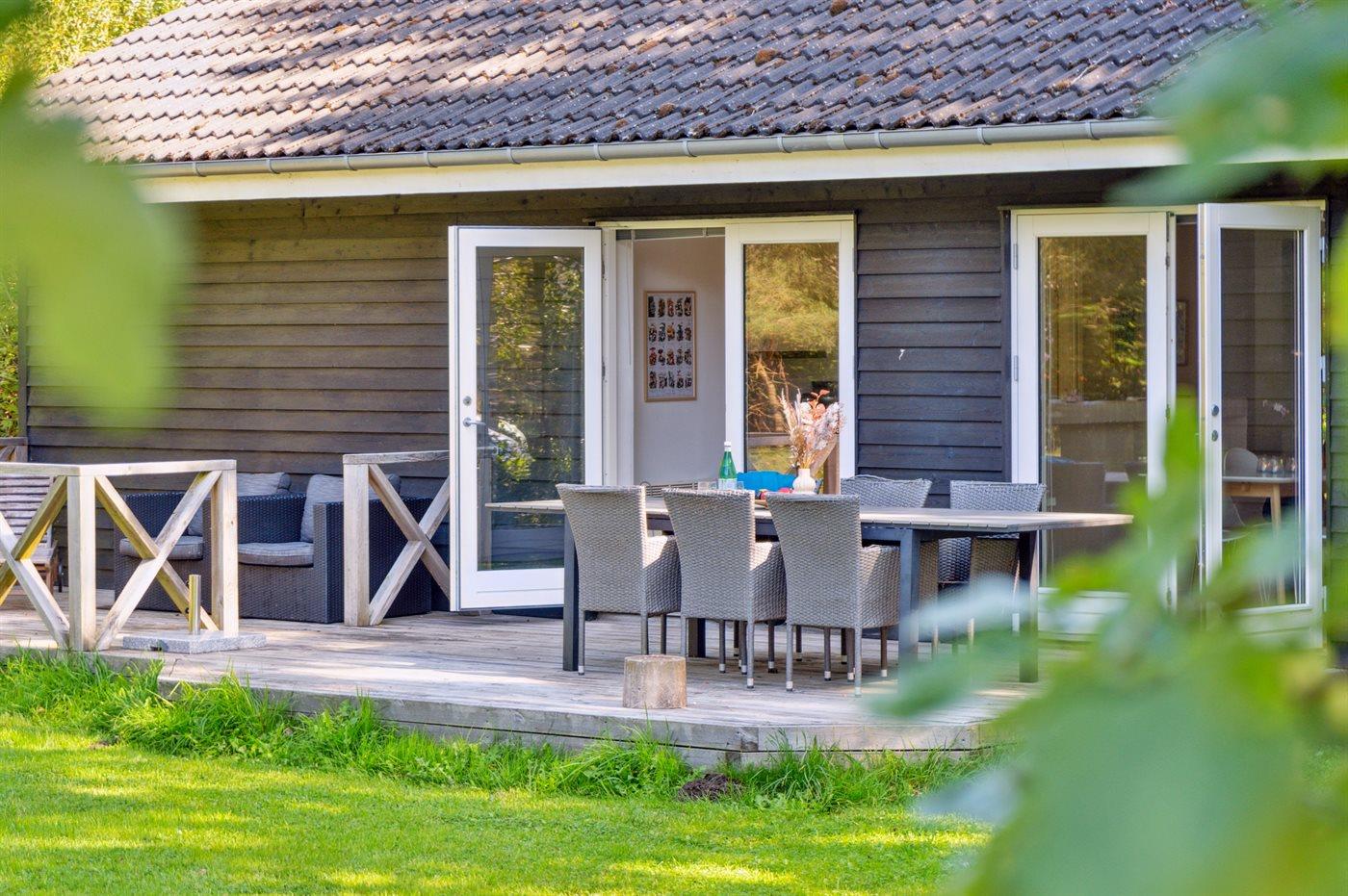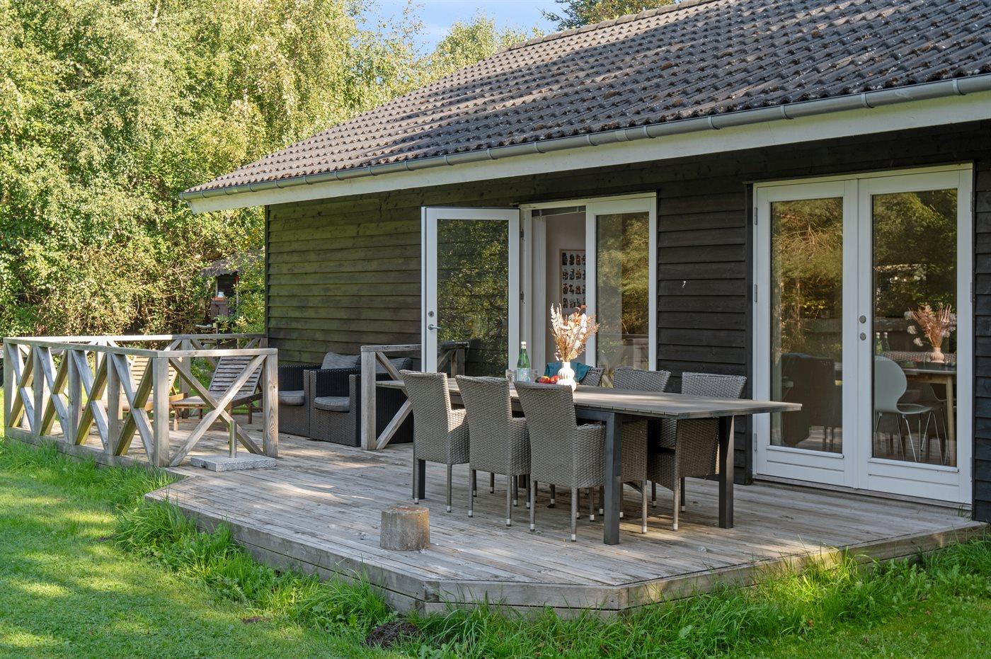 Modernes Ferienhaus nahe Gudmindrup Strand mit Terrasse, Garten und kinderfreundlichem Sandstrand.