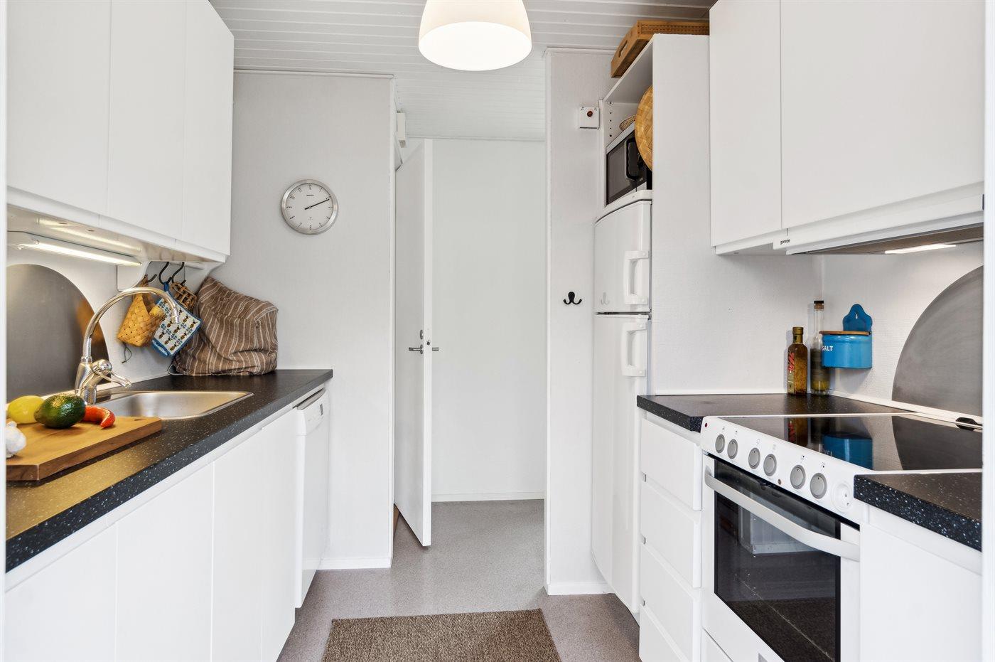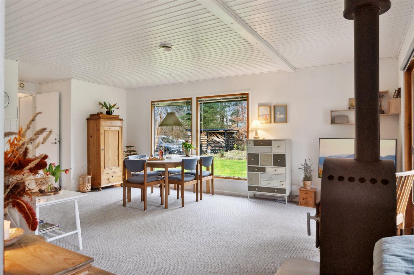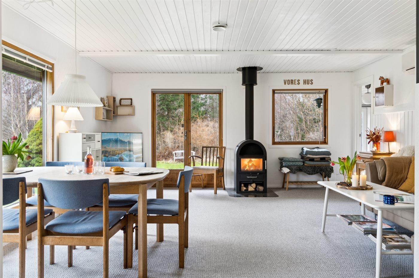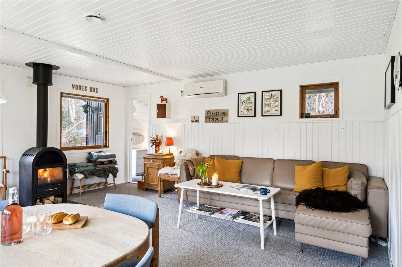 Das Haus ist mit einer Küche sowie einem kombinierten Ess- und Wohnbereich eingerichtet. Es gibt 3 Schlafzimmer, jedes mit 2 Schlafplätzen. Badezimmer mit Duschnische. Das Haus wird energieeffizient mit einer Luft-Luft-Wärmepumpe beheizt und außerdem steht ein Kaminofen zur Verfügung.