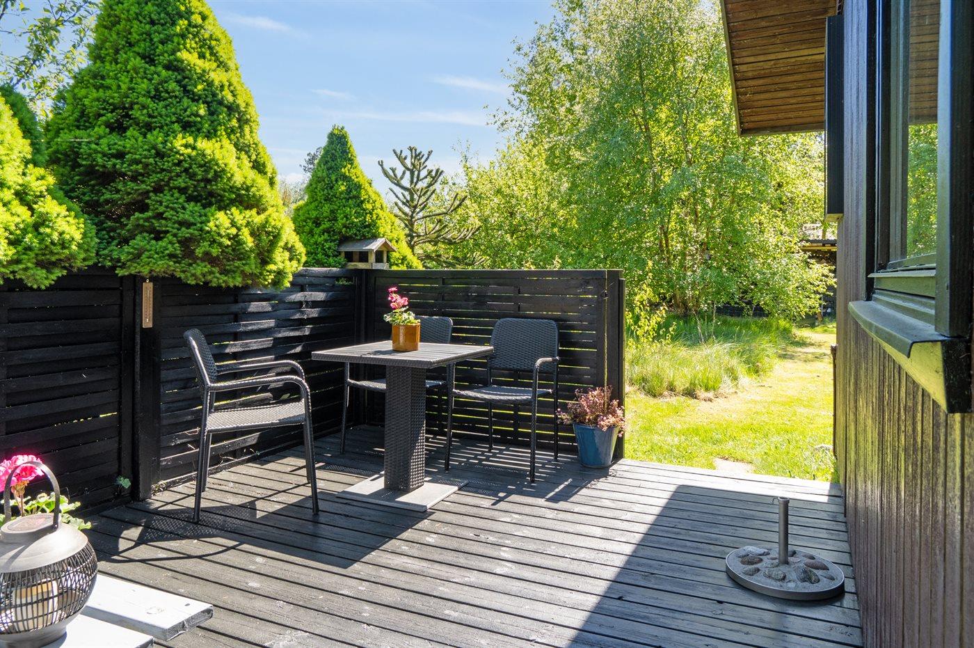 Auf dem großen eingezäunten Grundstück, wo Kinder sich sicher Aufhalten können, gibt es viel Platz für Ballspiele und andere Aktiväten im Freien. Auf der guten, teilweise überdachten Terrasse kann man die Sonne genießen oder sich in einem guten Buch vertiefen. Auf dem Grundstück ist außerdem ein Carport vorhanden.