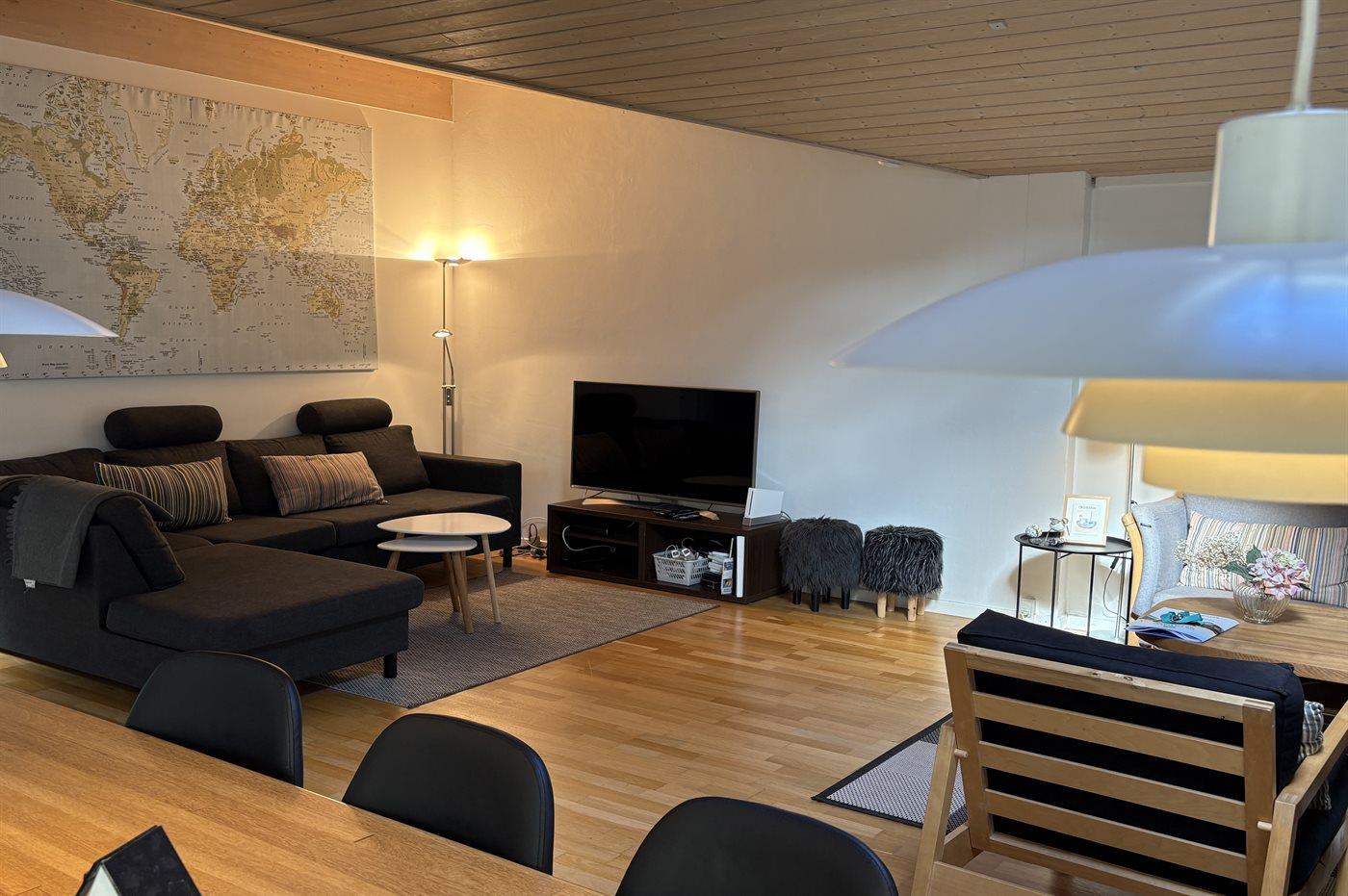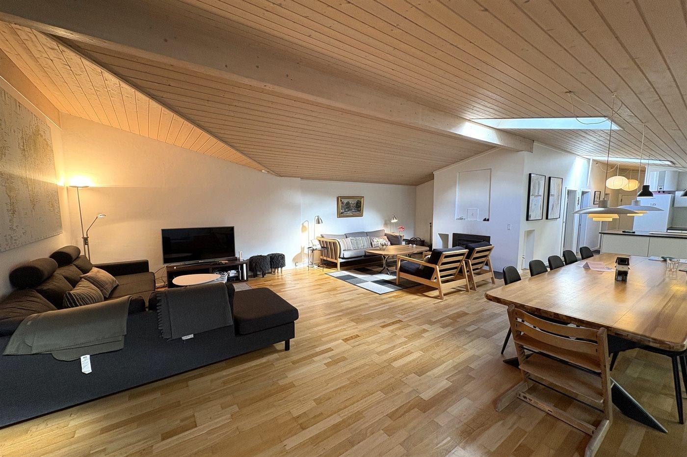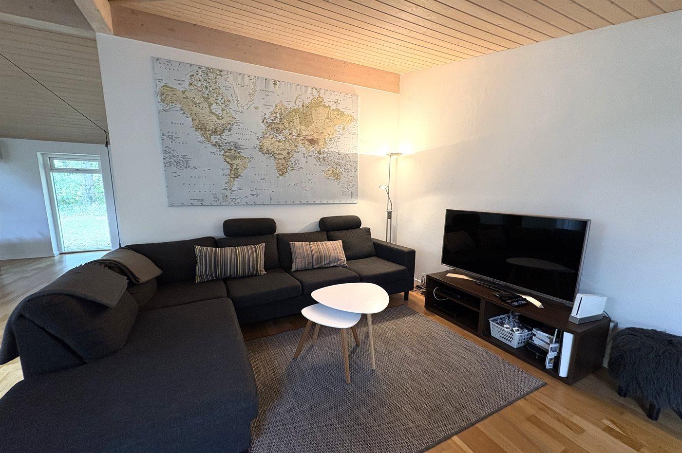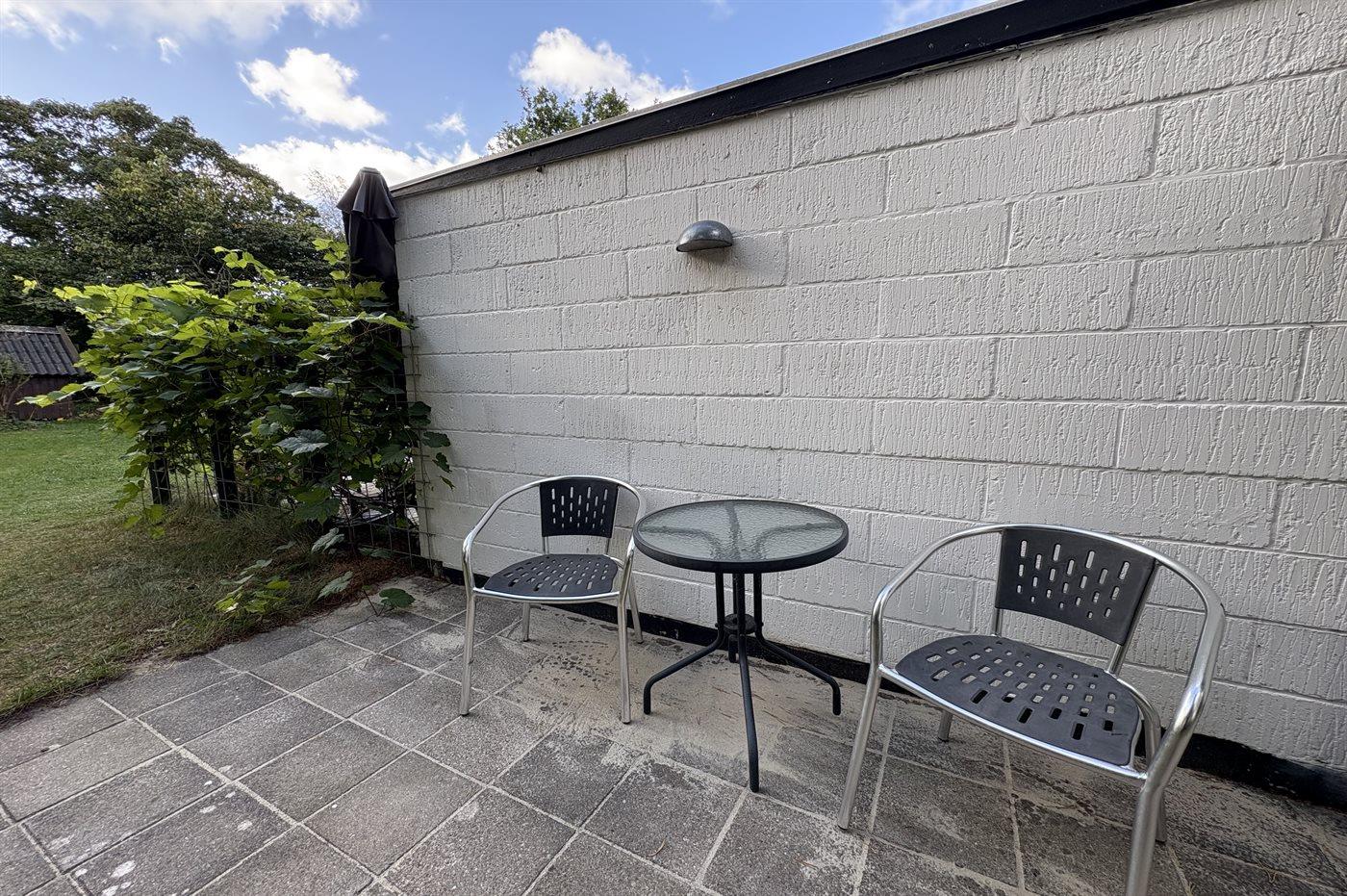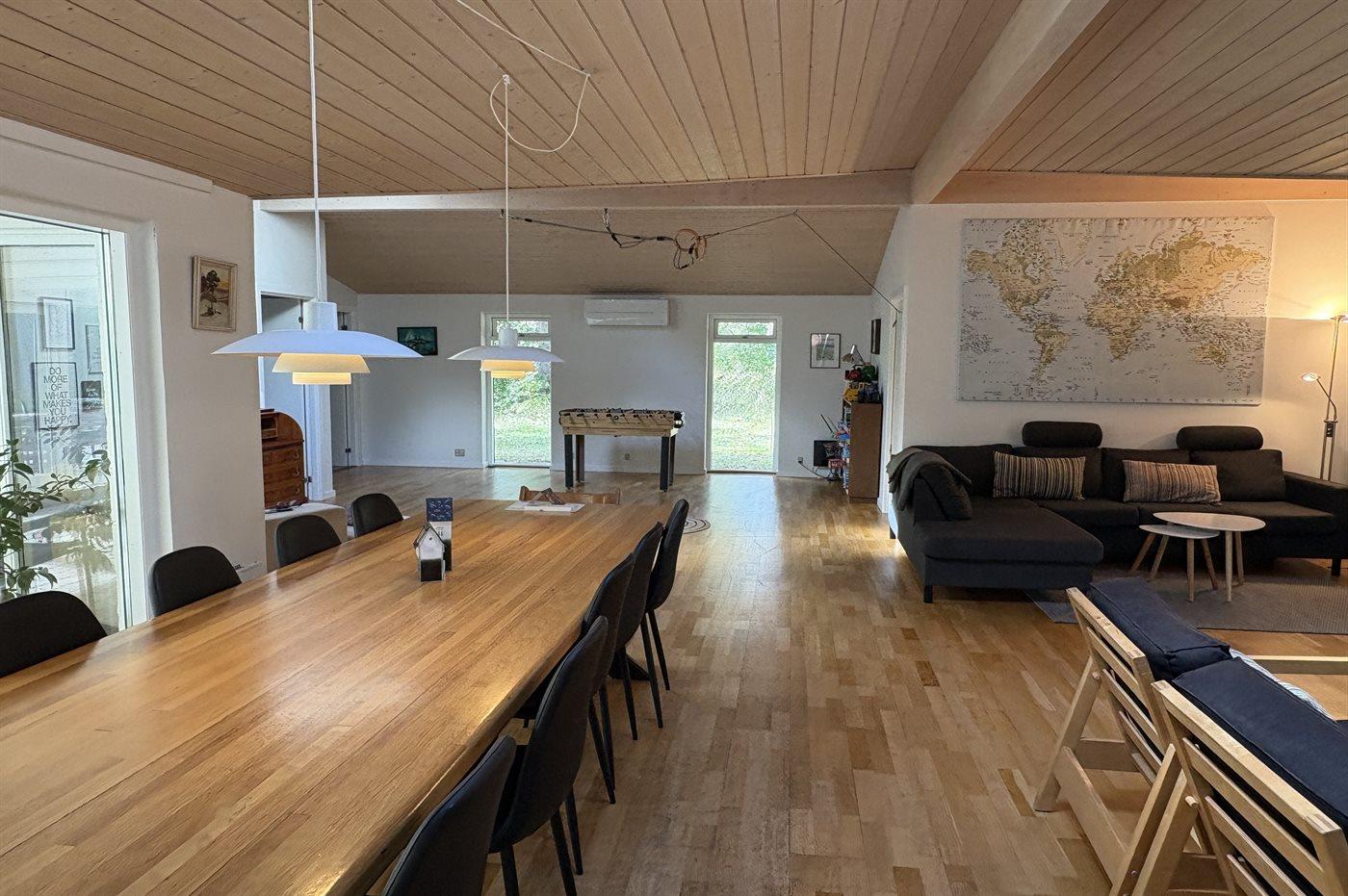 Das Haus lädt zu gemütliche Stunden mit der Familie und guten Freunden ein. In der großen Wohnküche, die direkt mit dem Wohnzimmer verbunden ist, gibt es viel Platz – genau wie in dem hellen und einladenden Wintergarten, der einen Großteil des Jahres genutzt werden kann. Auf der großen gefliesten Terrasse kannst du die Sonne und den Sommer genießen.