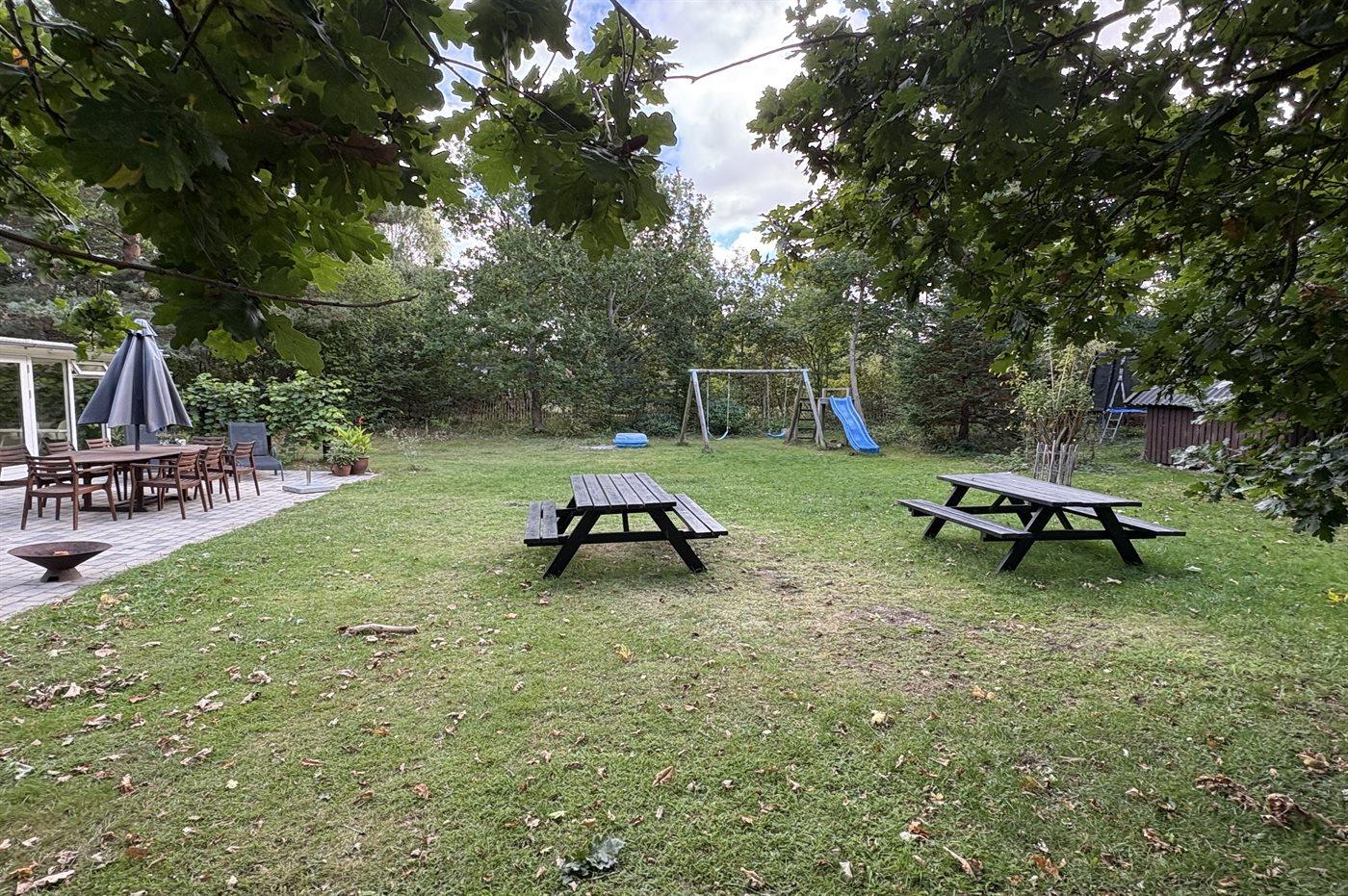 Die Ferienunterkunft liegt auf einem 2956 m² großen Naturgrundstück. Die Entfernung zum Meer beträgt 1800 m. Die nächste Einkaufsmöglichkeit liegt 3250 m entfernt. In einem Abstand von 3250 m gibt es einen Golfplatz. Es steht ein 50 m² Terrassenareal zur Verfügung. Zutritt zu einem Wintergarten. Schaukel. Sandkasten. Trampolin. Rutsche. Fußballtor. Es steht ein Grill zur Verfügung. Es steht ein Carport zur Verfügung. Parkplatz auf dem Grundstück.
