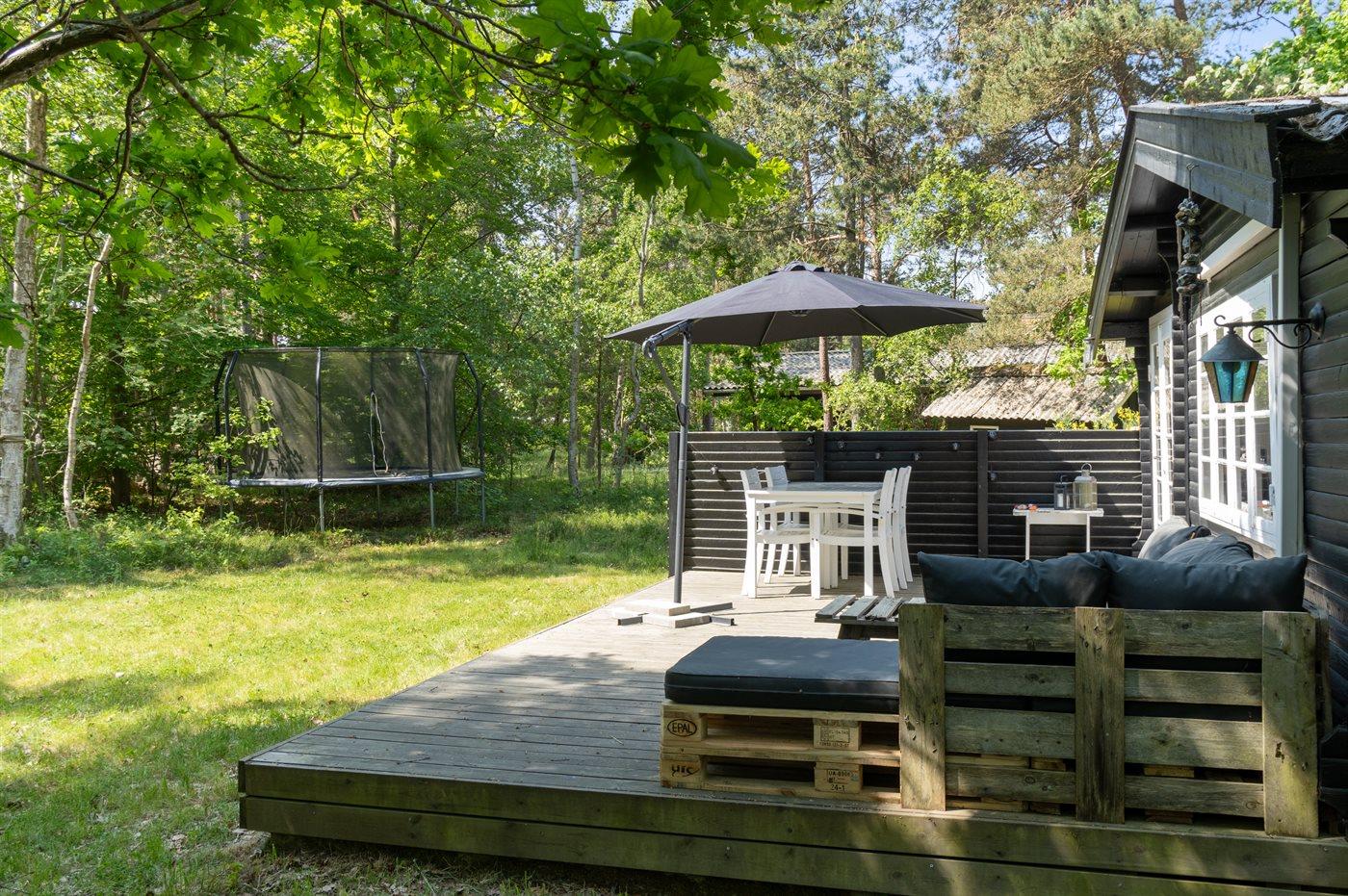 Dieses ansprechende und liebevoll restaurierte Ferienhaus mit Ursprung in dem Jahr 1947 liegt auf einem schönen Naturgrundstück nur 1100 Meter von einem guten und kinderfreundlichen Sandstrand und nur 200 Meter von einem nahegelegenen Wald entfernt. Das Haus befindet sich in ruhiger Umgebung auf einem ungestörten Grundstück, umgeben von hohen Bäumen.