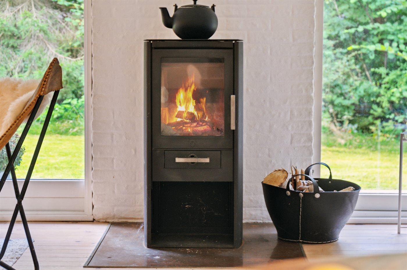 Das Haus wird energieeffizient mit einer Luft-Luft-Wärmepumpe beheizt, und es gibt einen Kaminofen.