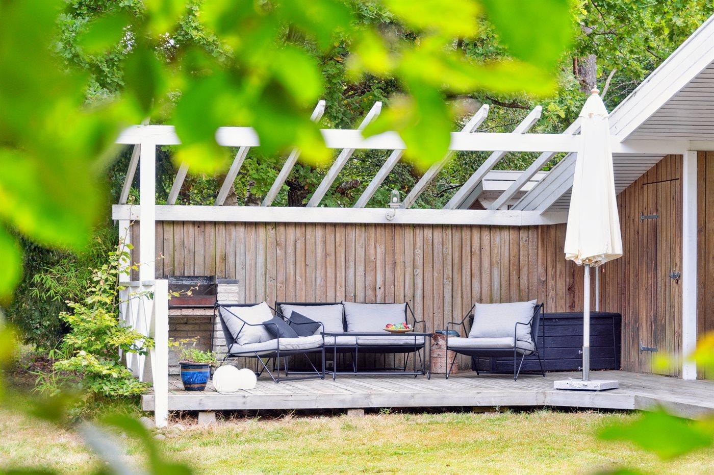 Die Ferienunterkunft liegt auf einem 1288 m² großen Gartengrundstück. Das Grundstück ist eingezäunt. Die Entfernung zum Meer beträgt 1150 m. Die nächste Einkaufsmöglichkeit liegt 450 m entfernt. In einem Abstand von 6200 m gibt es einen Golfplatz. Es steht ein 40 m² Terrassenareal zur Verfügung. Außerdem gibt es 38 m² überdachte Terrasse. Trampolin.Lagerfeuerstelle. Es steht ein Grill zur Verfügung. Es steht ein Carport zur Verfügung. Parkplatz auf dem Grundstück.