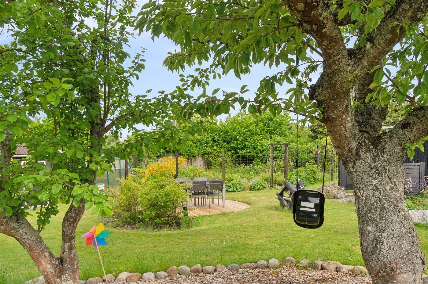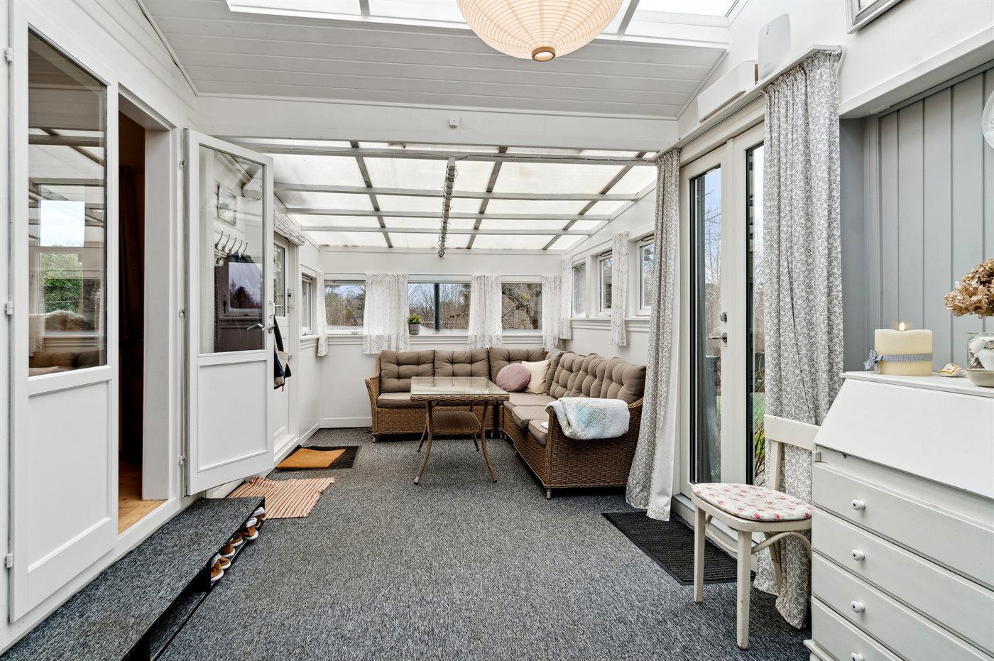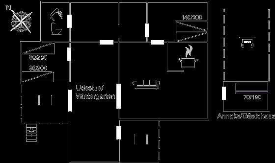 Die gemütliche Wohnküche liegt in offener verbindung mit dem Wohnzimmer, von dem aus man Zugang zum hellen Wintergarten hat, wo man viele gemütliche Stunden verbringen kann. Es gibt mehrere schöne Terrassen, auf denen man die Sonne genießen, aber auch Schutz vor dem Wind und Schatten finden kann. Eine Lagerfeuerstelle steht ebenfalls zur Verfügung.