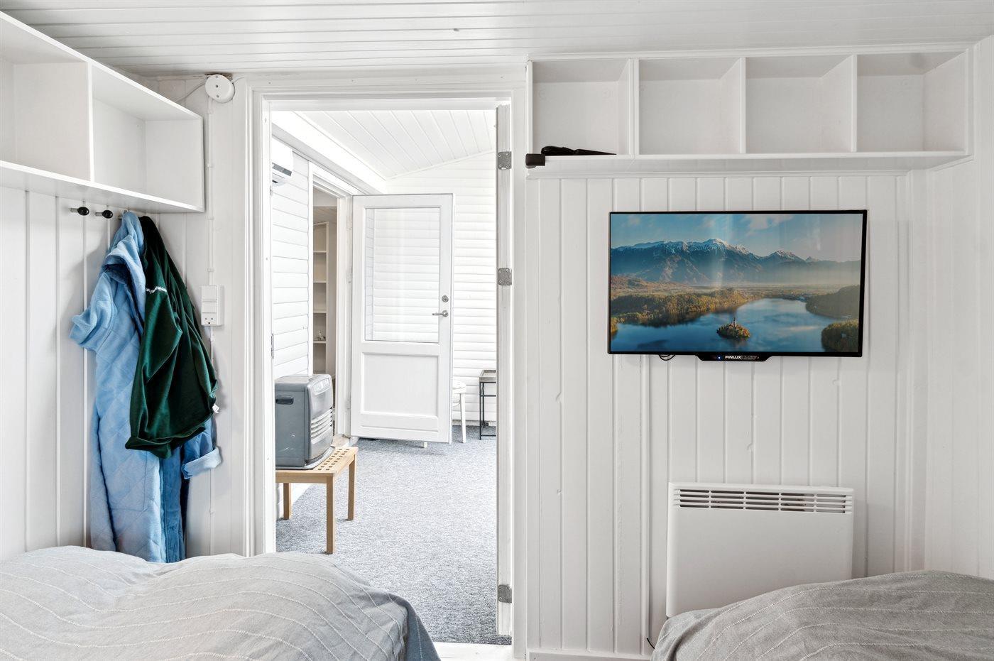 Im Haus gibt es 2 Schlafzimmer mit jeweils 2 Schlafplätzen. Im Gästehaus gibt es ein Etagenbett mit 2 Schlafplätzen (aufgrund der Maße von 70x190 cm am besten für Kinder und Jugendliche geeignet). Das Badezimmer ist mit einer kleinen Badewanne ausgestattet. Die Ferienunterkunft verfügt über einen Waschtrockner.