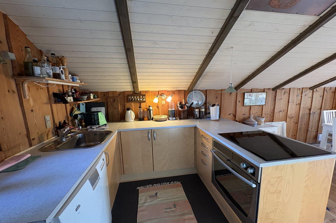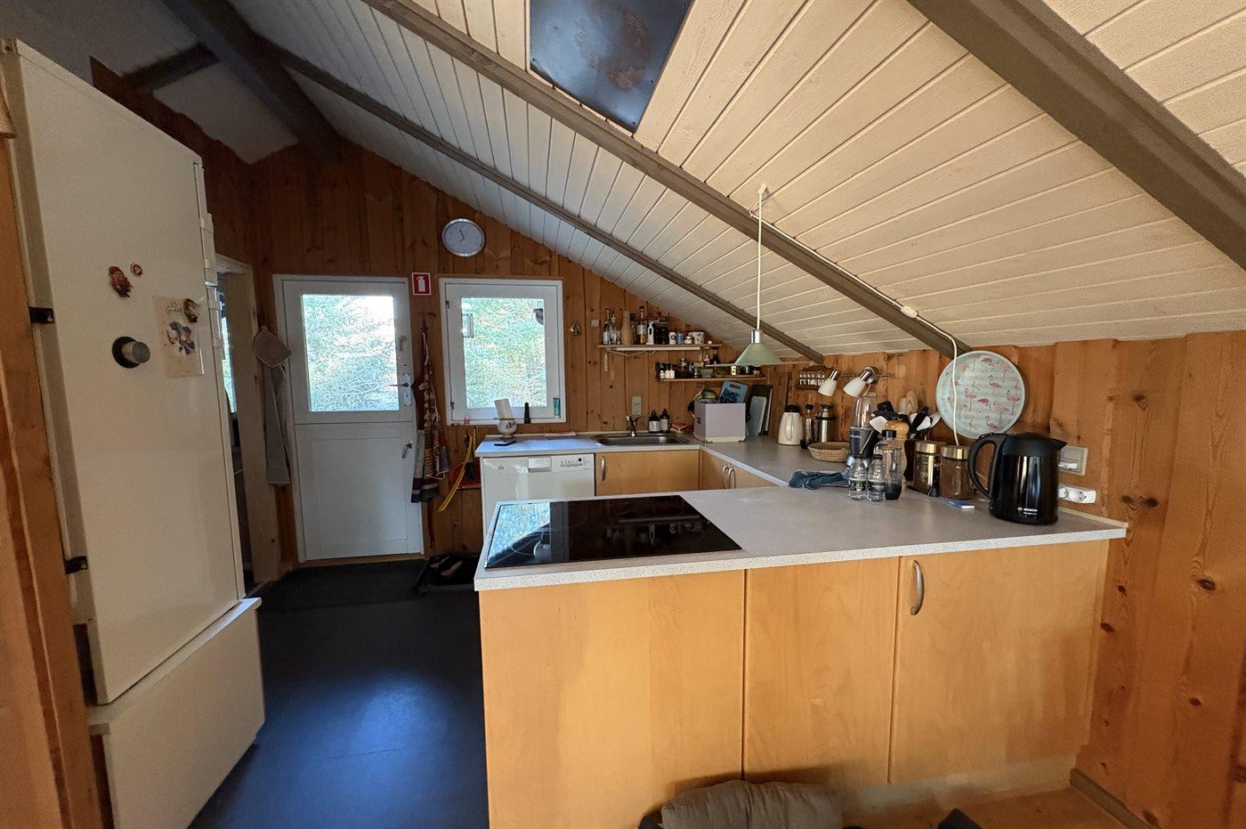 Die Küche und der Essbereich sind offen mit dem Wohnzimmer verbunden, und auf der Nord- sowie der Südseite des Hauses befinden sich schöne Terrassen. Teile der Terrassenbereiche sind überdacht, sodass du sowohl Schutz vor dem Wind als auch Schatten findest.