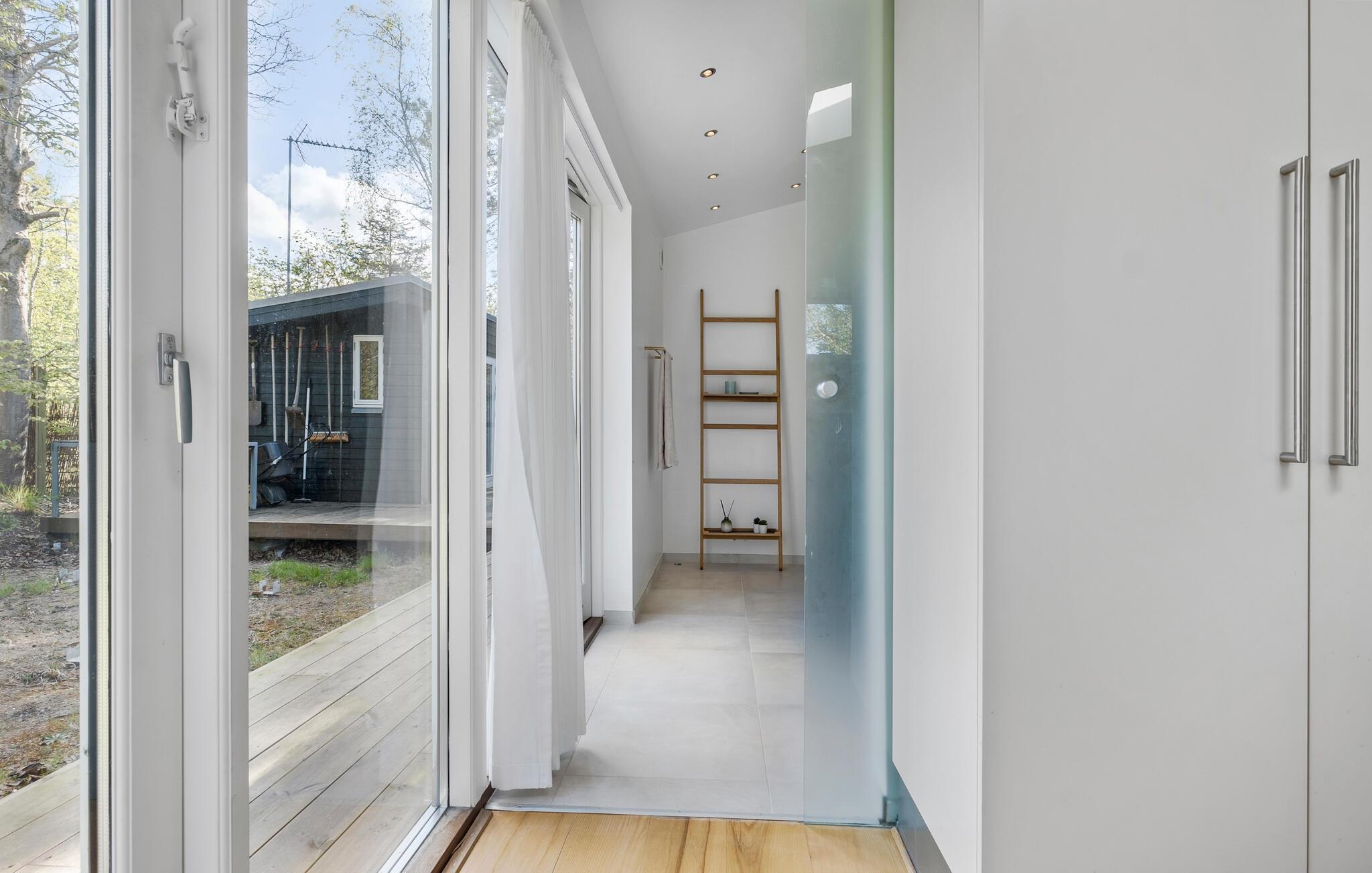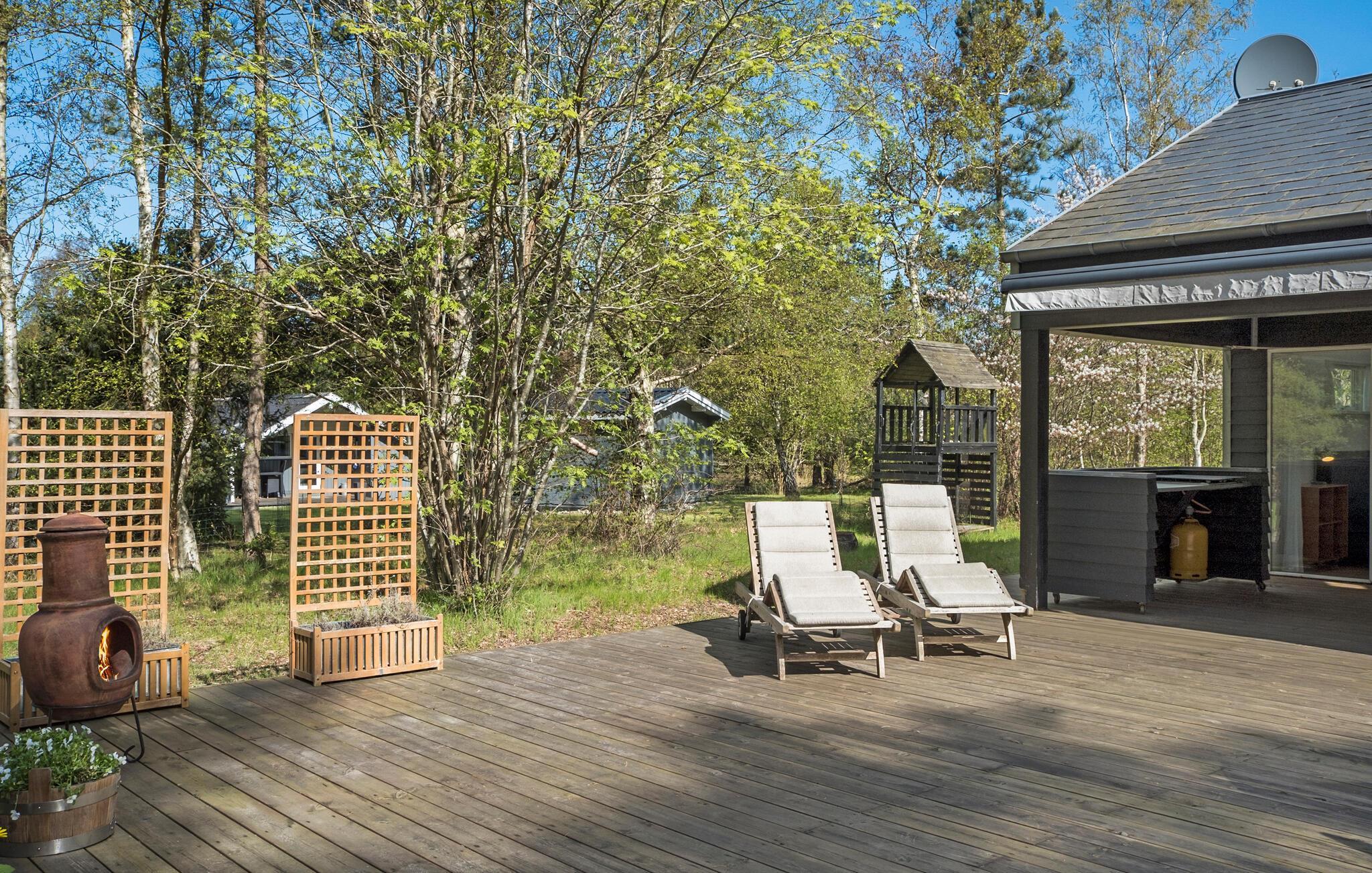 Das Haus umgibt eine schöne Holzterrasse, die sich zum Garten hin mit viel Platz öffnet. Grillen Sie an der Außenküche, trinken kühle Getränke auf Ihren Gartenmöbeln und schauen Ihren Kindern beim Spielen im Garten zu.