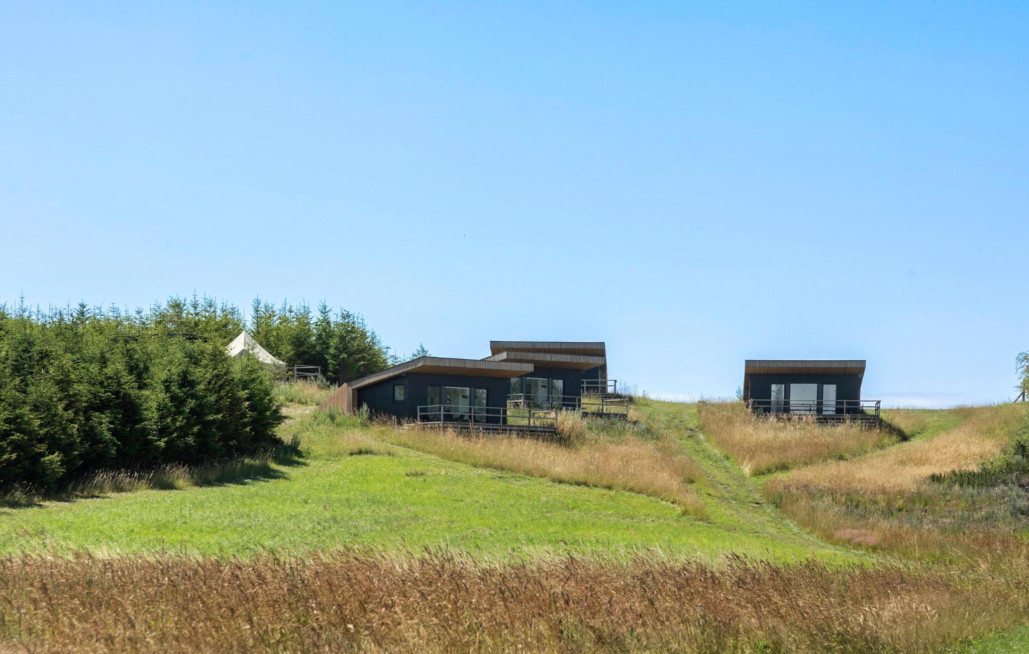 Stilvolles Tiny-Haus auf Sejerø mit Panoramablick, großer Terrasse und modernem Komfort für erholsame Urlaubstage.