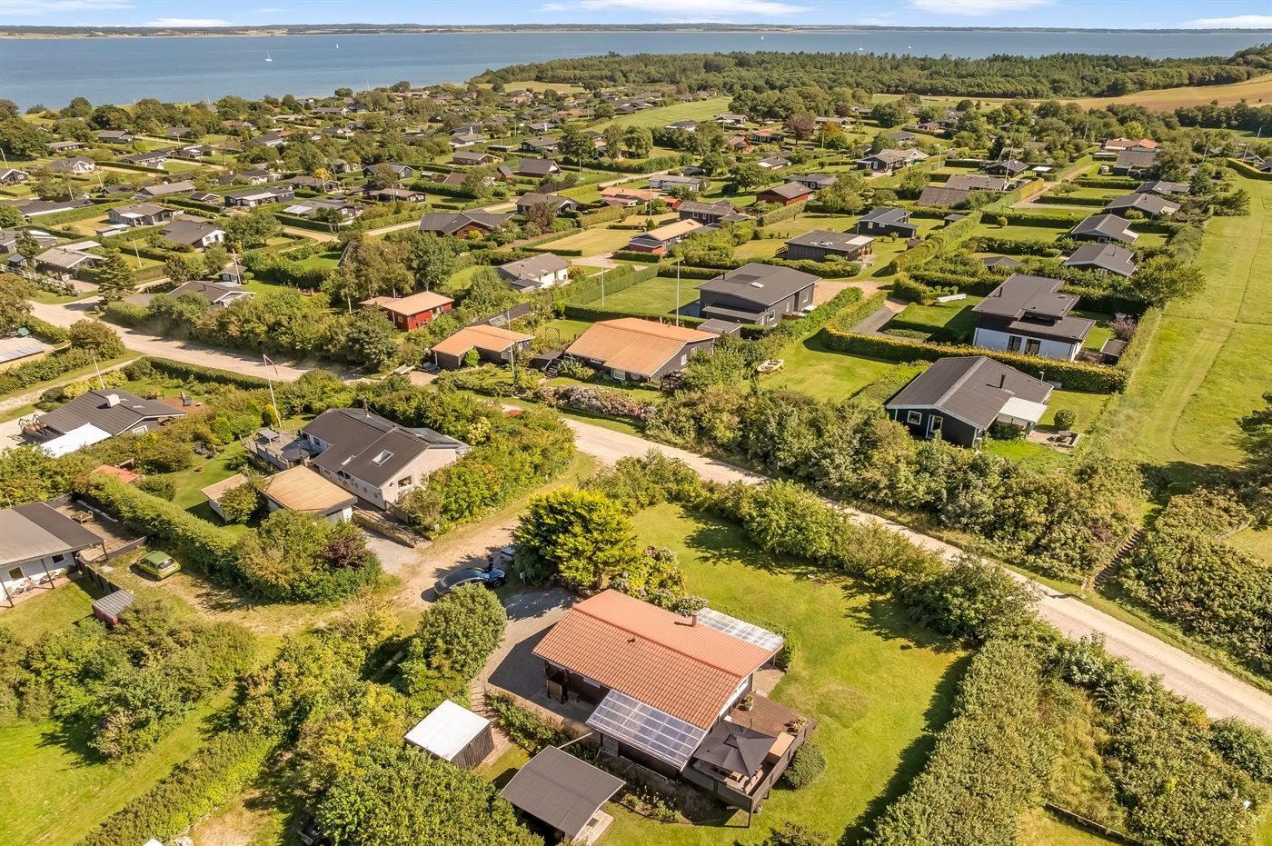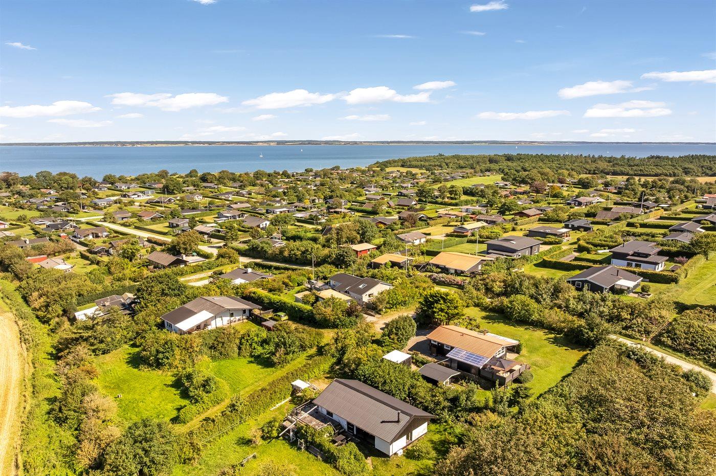 Das 839 m² große Grundstück bietet reichlich Platz zum Spielen, Relaxen und für Aktivitäten im Freien. Der Fjord ist nur 500 Meter entfernt, Einkaufsmöglichkeiten findest du in 3 km Entfernung, und der nächste Golfplatz liegt 10 km vom Haus entfernt. Die Fährverbindung zur Insel Fur liegt nur 5 km entfernt und lädt zu einem unkomplizierten und schönen Ausflug auf die Insel ein.