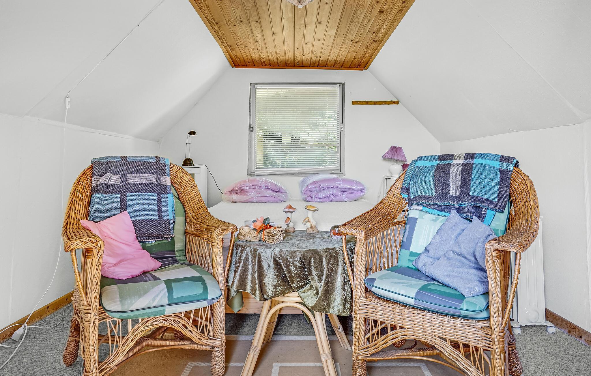Dieses praktische und einfach gestaltete Ferienhaus bietet Ihnen alles, was Sie für einen erholsamen Urlaub brauchen. Der lichtdurchflutete Wohnbereich mit großen Fenstern schafft eine angenehme Atmosphäre, während der Kaminofen an kühleren Abenden für Gemütlichkeit sorgt. Hier können Sie gemeinsam entspannte Stunden verbringen. Auf dem offenen Naturgrundstück ist viel Platz zum Spielen und Relaxen, während die Terrasse ideal für gesellige Grillabende an warmen Sommertagen ist.