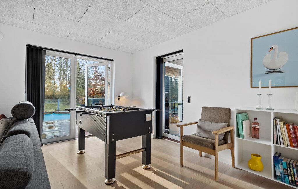 Erleben Sie unvergessliche Tage in diesem modernen und komfortablen Ferienhaus in Selkær Mølle. Die lichtdurchfluteten Räume und die hochwertige Ausstattung schaffen eine Wohlfühlatmosphäre für die ganze Familie. Lassen Sie den Tag im gemütlichen Wohnzimmer ausklingen oder liefern Sie sich eine Partie Tischfußball. Im Garten können Sie Tischtennis spielen, während sich die Kinder austoben. Zur Erfrischung wartet ein eigener Pool, während der Whirlpool pure Entspannung verspricht. Ein rundum perfekter Ort für gemeinsame Stunden.