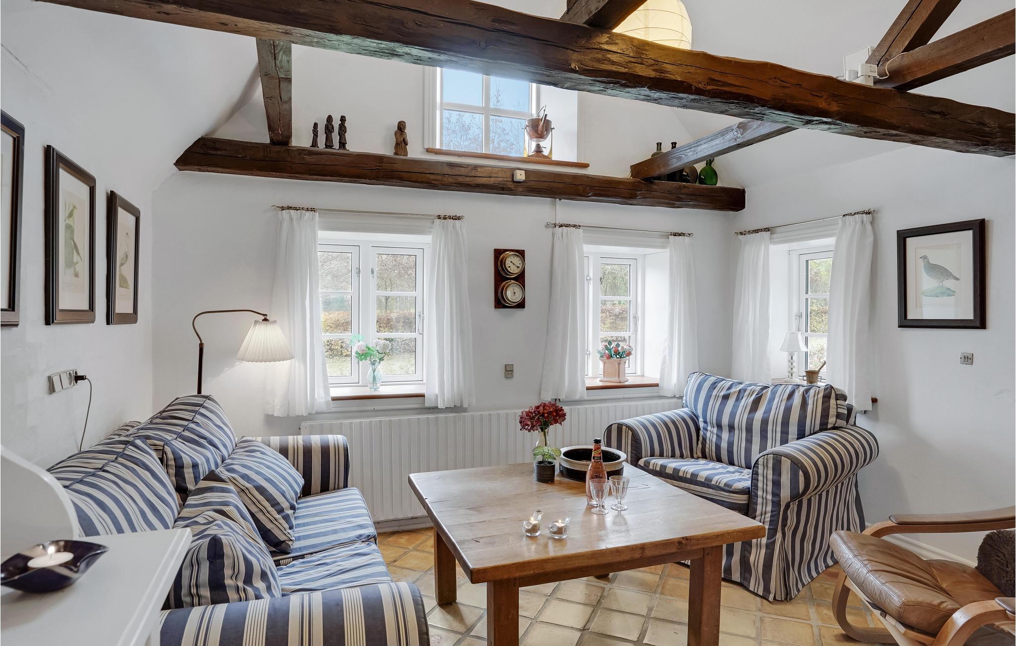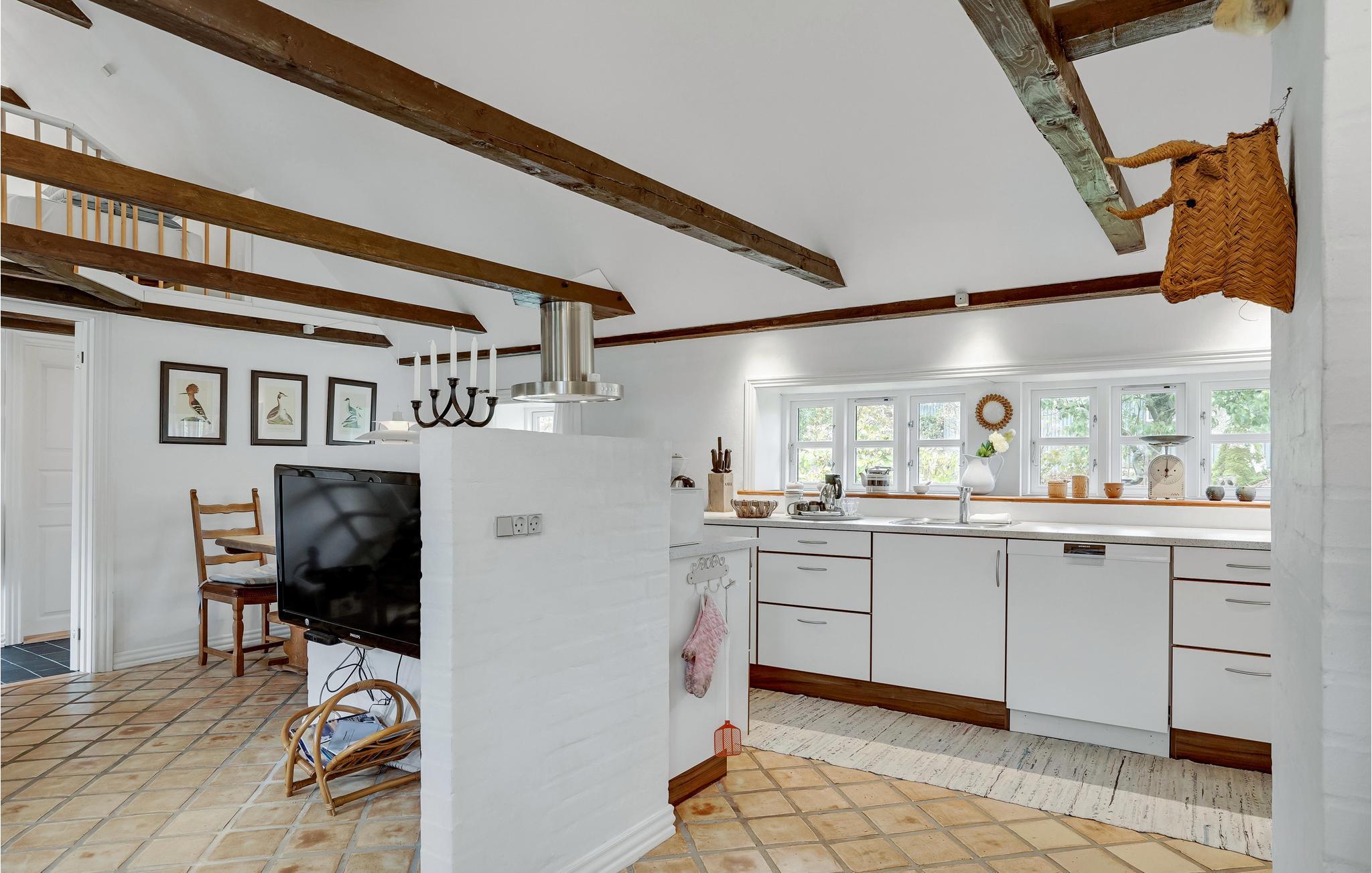 In ruhiger, ländlicher Umgebung nur 250 m vom Limfjord entfernt finden Sie dieses gemütliche Ferienhaus mit Reetdach. Das alte Bauernhaus wurde liebevoll renoviert und bietet somit eine geschmackvolle, komfortabel ausgestattete Einrichtung mit schönen Details wie Fliesenböden und sichtbaren Deckenbalken. Die authentische Atmosphäre des Hauses lädt zu gemütlichen Urlaubstagen beim Brettspielen, geselligen Mahlzeiten und stimmungsvollen Abenden vorm Kaminofen ein. Draußen findet die ganze Familie Platz zum Austoben oder für einen frisch gebrühten Kaffee in den Gartenmöbeln beim Sonnenschein und Blick auf die schöne, windförmige Bäume.