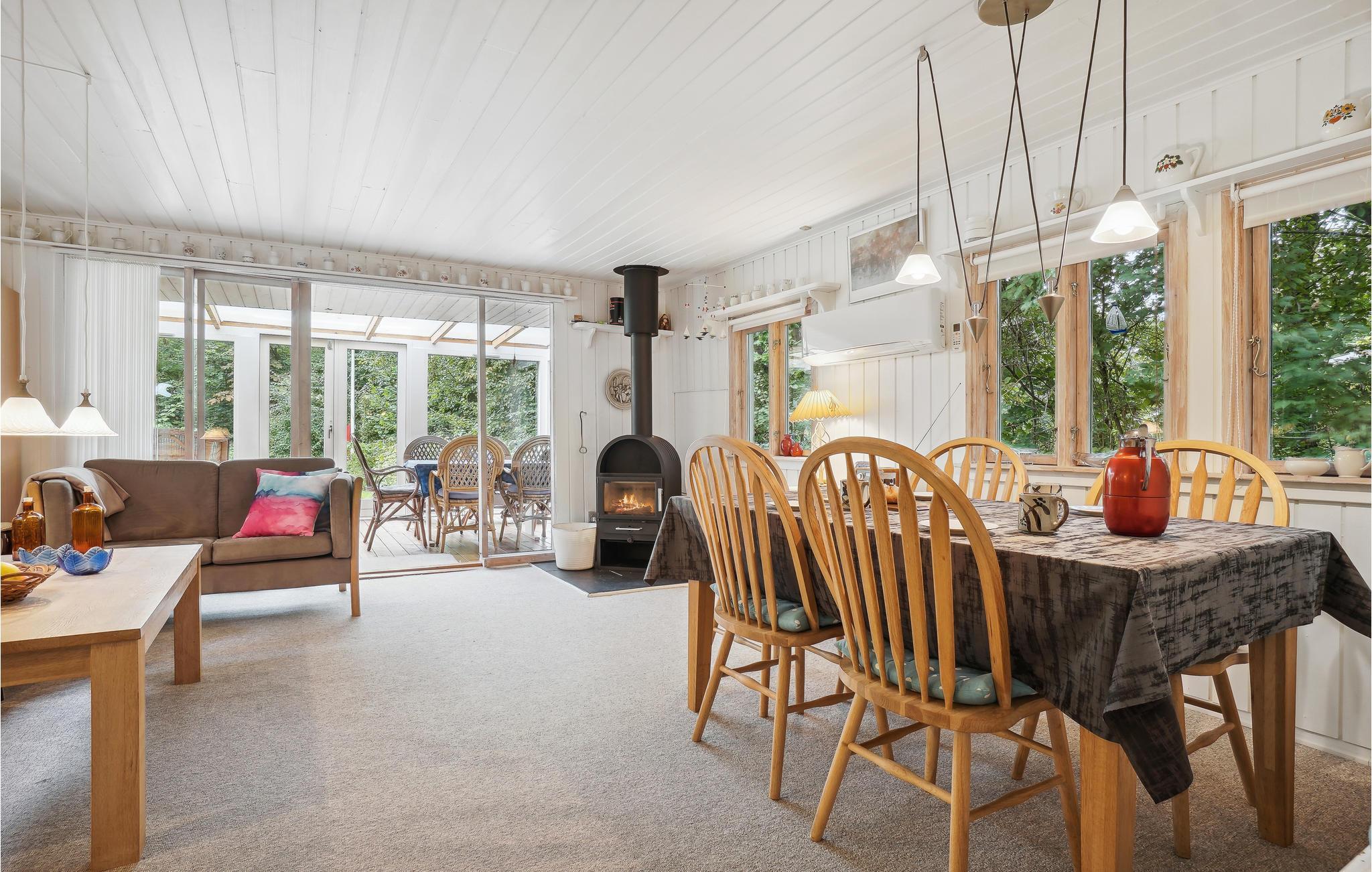 Das einladende und geräumige Haus empfängt Sie in idyllischer Lage und bietet damit perfekte Bedingungen für einen Urlaub, in dem Sie fantastische Naturerlebnisse, herrliche Stunden im Freien und eine gemütliche Zeit im Haus genießen können. Tafeln Sie in geselliger Runde am Esstisch mit schönem Blick ins Freie und freuen Sie sich auf gemütliche Abende am behaglich knisternden Kaminofen.