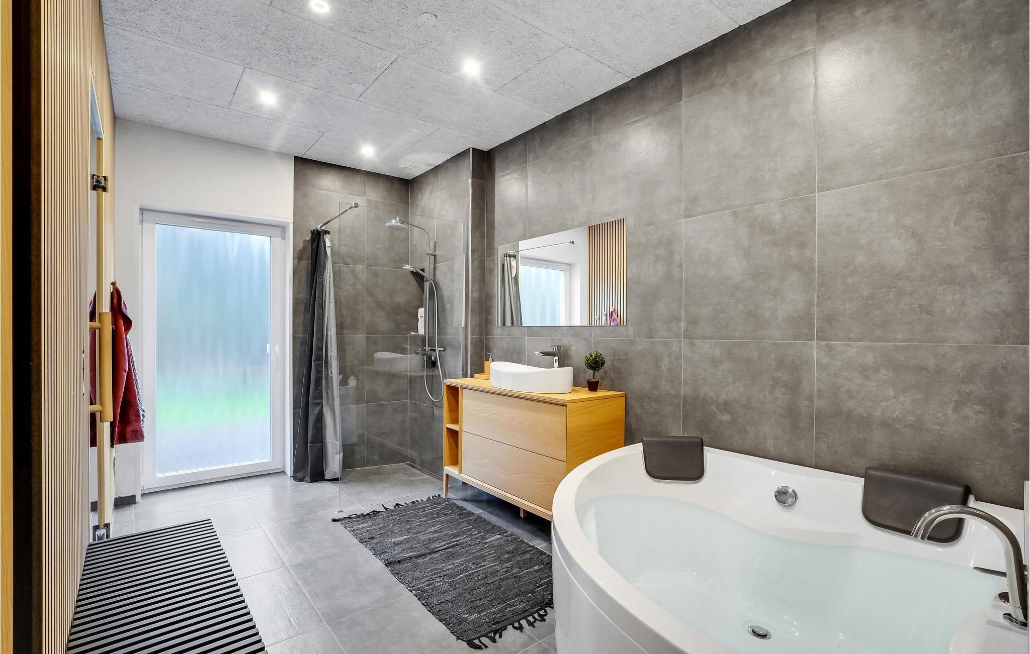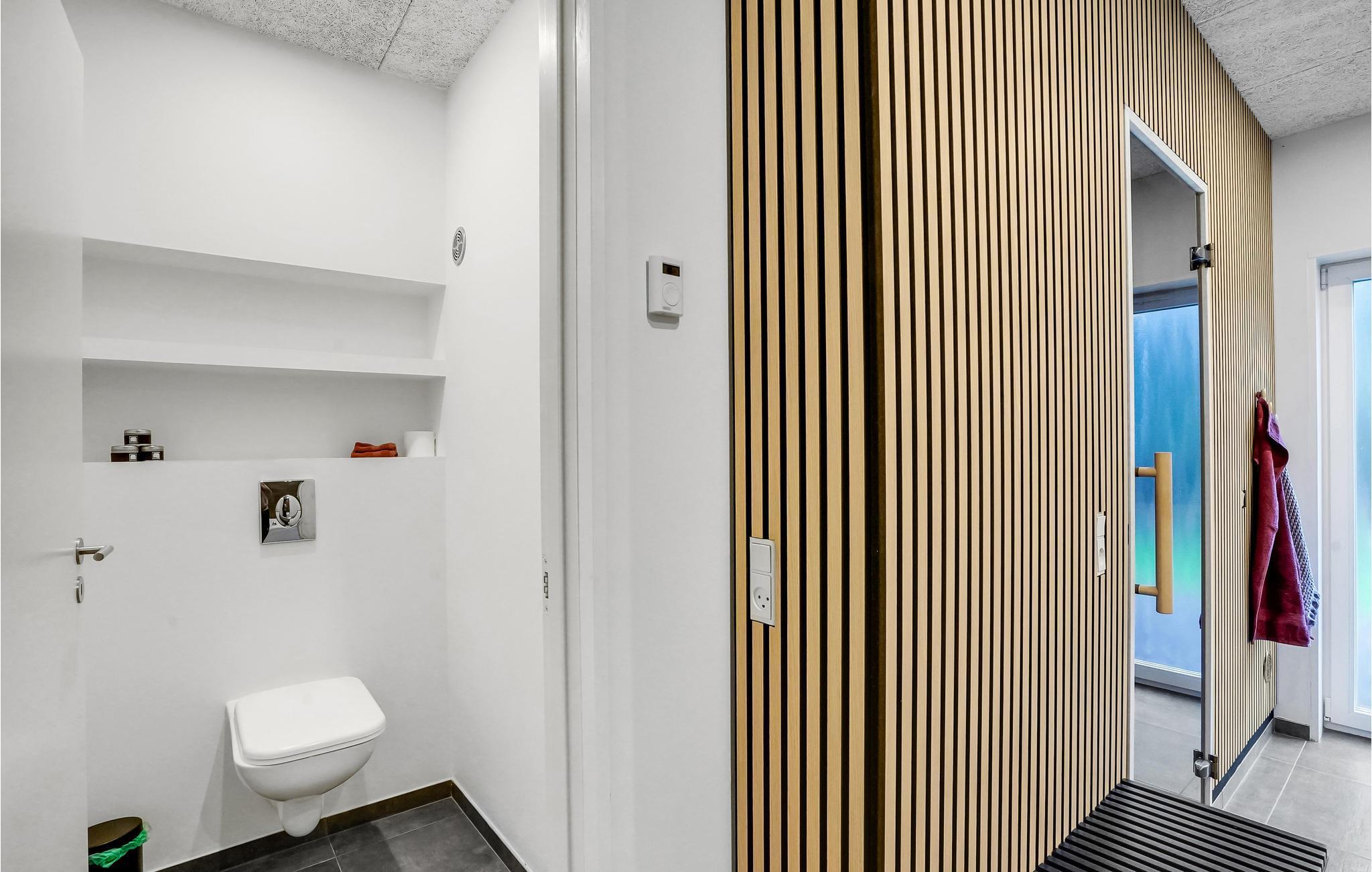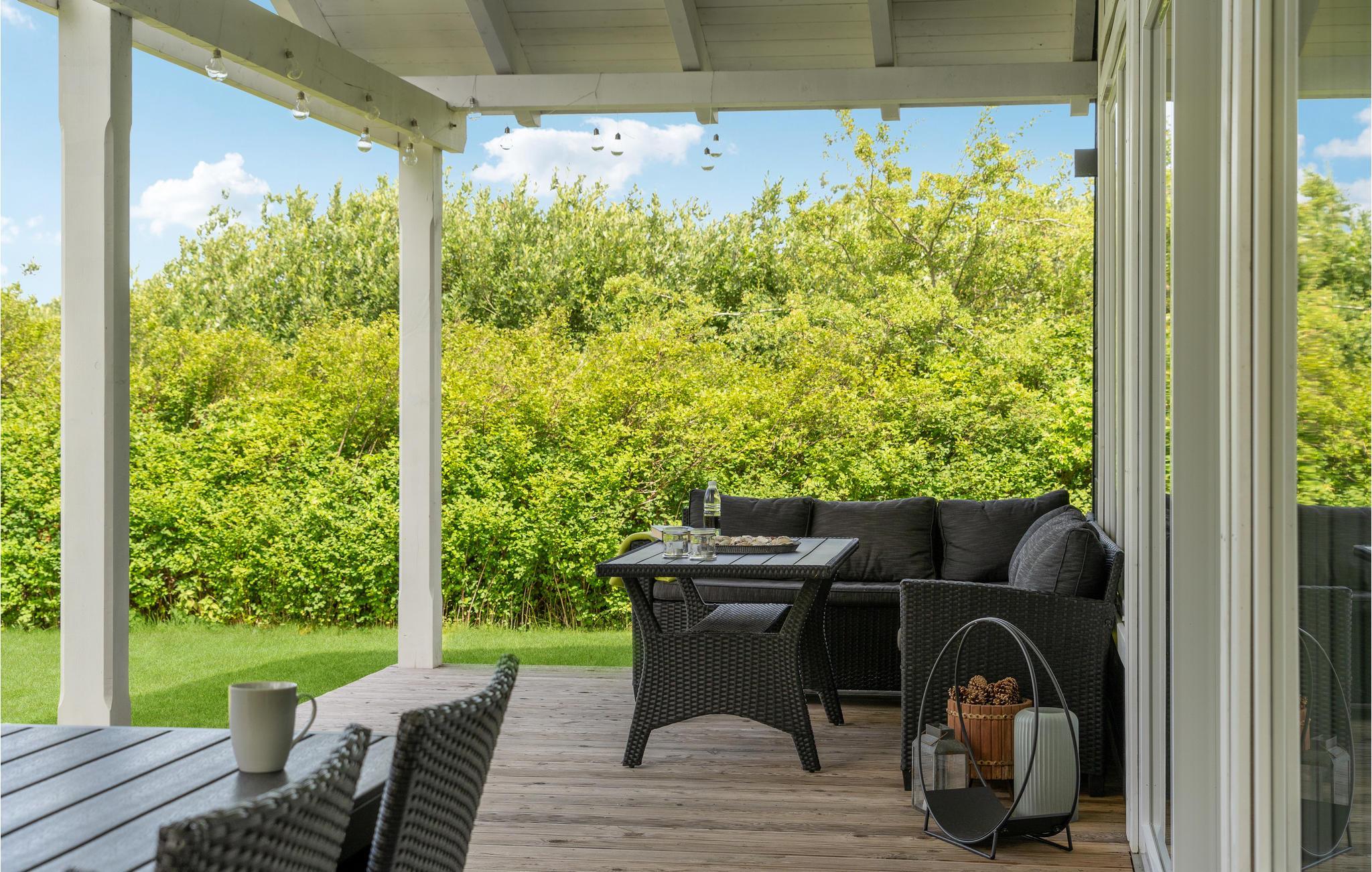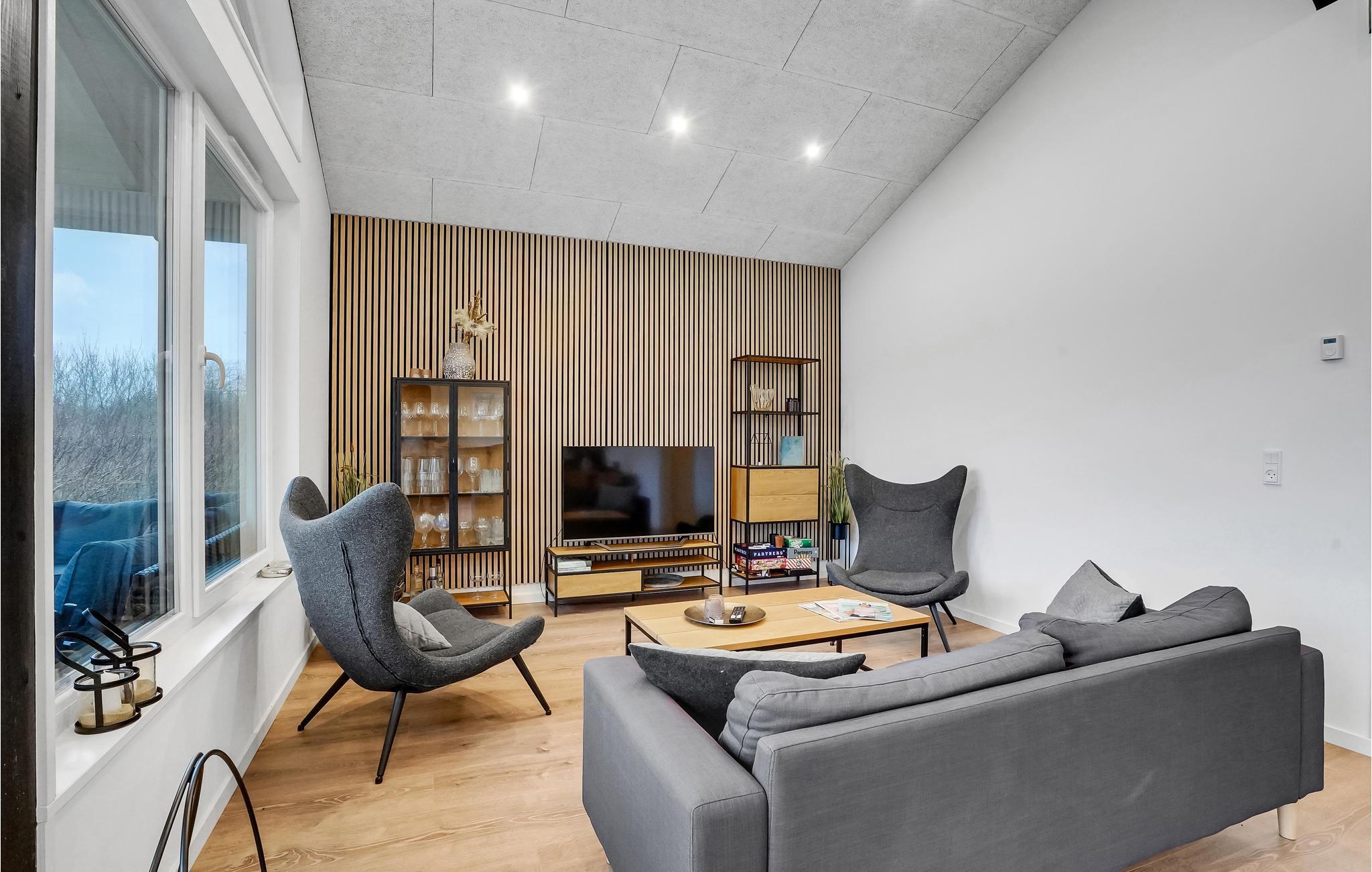 Willkommen in Serup Strand und diesem komfortablen und geschmackvollen Ferienhaus, das alle Ihre Wünsche erfüllen wird. Neben Design wurde hier viel Wert auf Gemütlichkeit gelegt, sodass Sie im hohen Wohnraum, aufgrund der großen Fenster tolles Licht und eine herrliche Atmosphäre erwarten können. Schwingen Sie zusammen den Kochlöffeln, spielen Sie Karten am Esstisch oder legen sie die Beine hoch und schauen einen unterhaltsamen Film. Nach einem aktiven Tag an der frischen Luft ist es schön, in der Sauna zu entspannen. Auf der überdachten Terrasse können Sie sowohl am Morgen mit einem leckeren Frühstück starten sowie Ihre gegrillten Speisen genießen oder den tag auf den Loungemöbeln ausklingen lassen, wenn Ihre Kinder im Garten spielen.