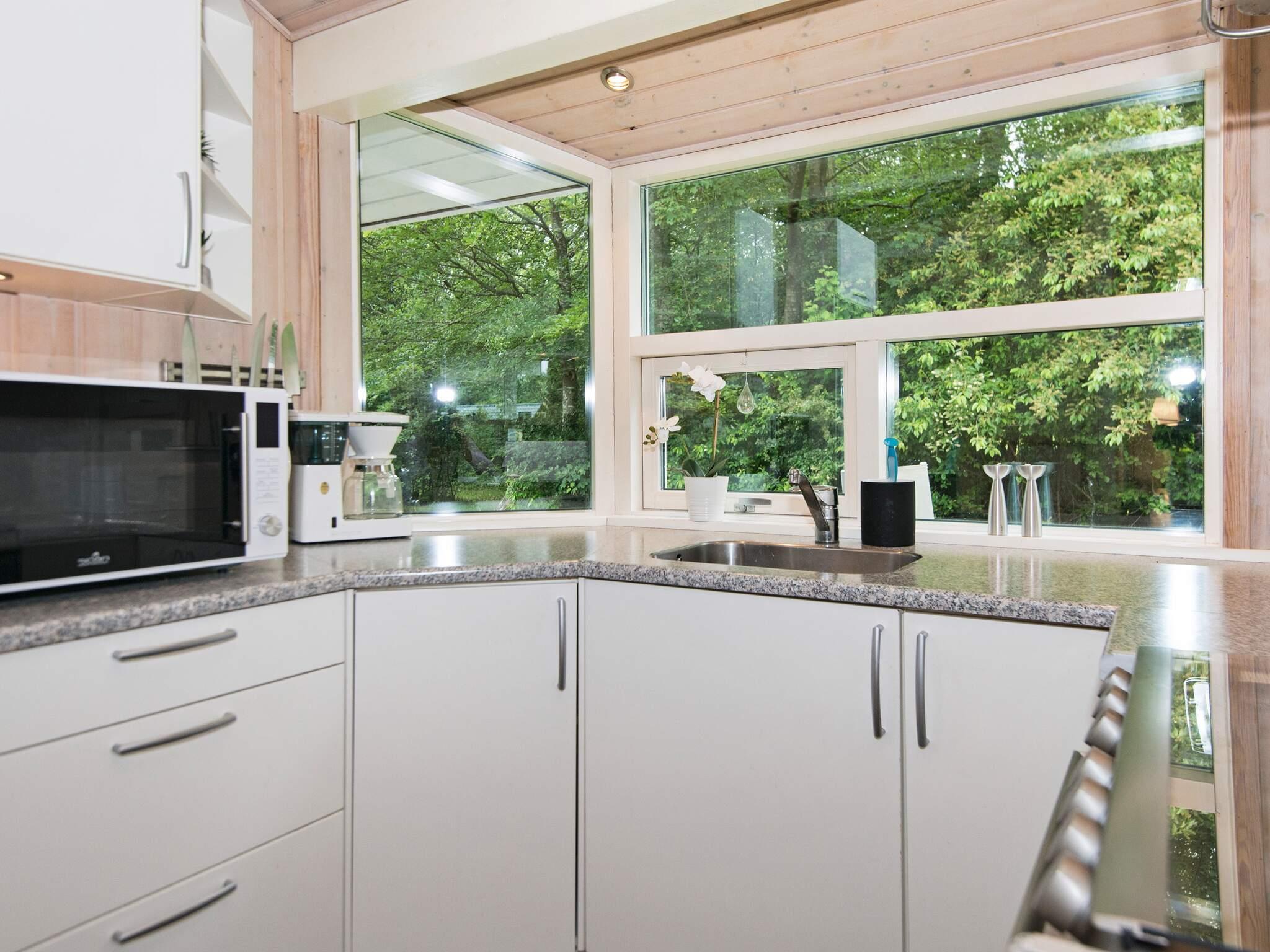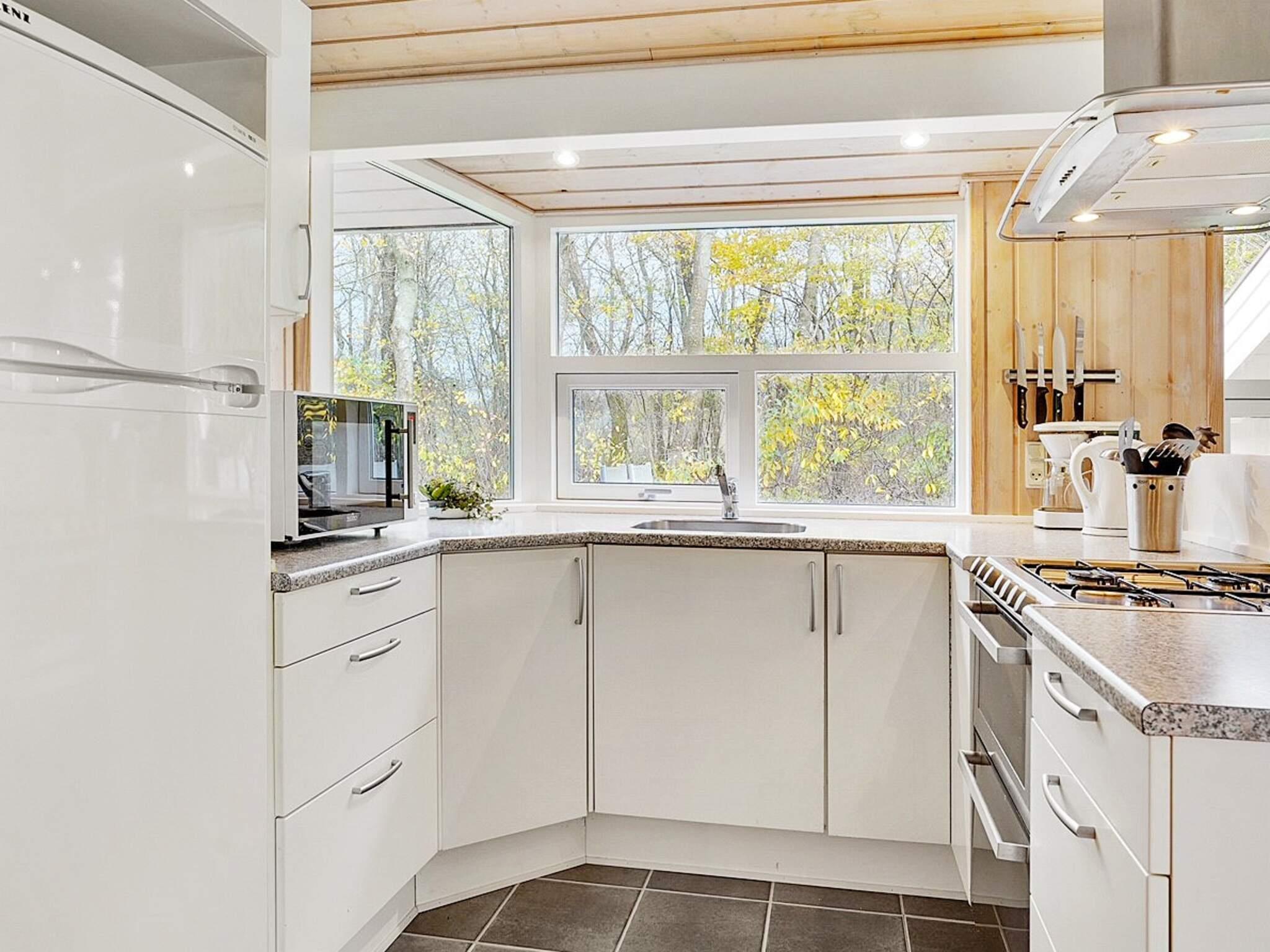 Im Ferienhaus heller, offener Küchen-/Wohnbereich für das Familienleben, inklusive Holzofen, WLAN und direktem Zugang zu einer überdachten Terrassenfläche, die sich z.B. für Grillabende anbietet. Es stehen mehrere Terrassen zur Auswahl am Ferienhaus, das auf einem gut abgeschirmten Grundstück mit Rasenfläche und Schaukel liegt.