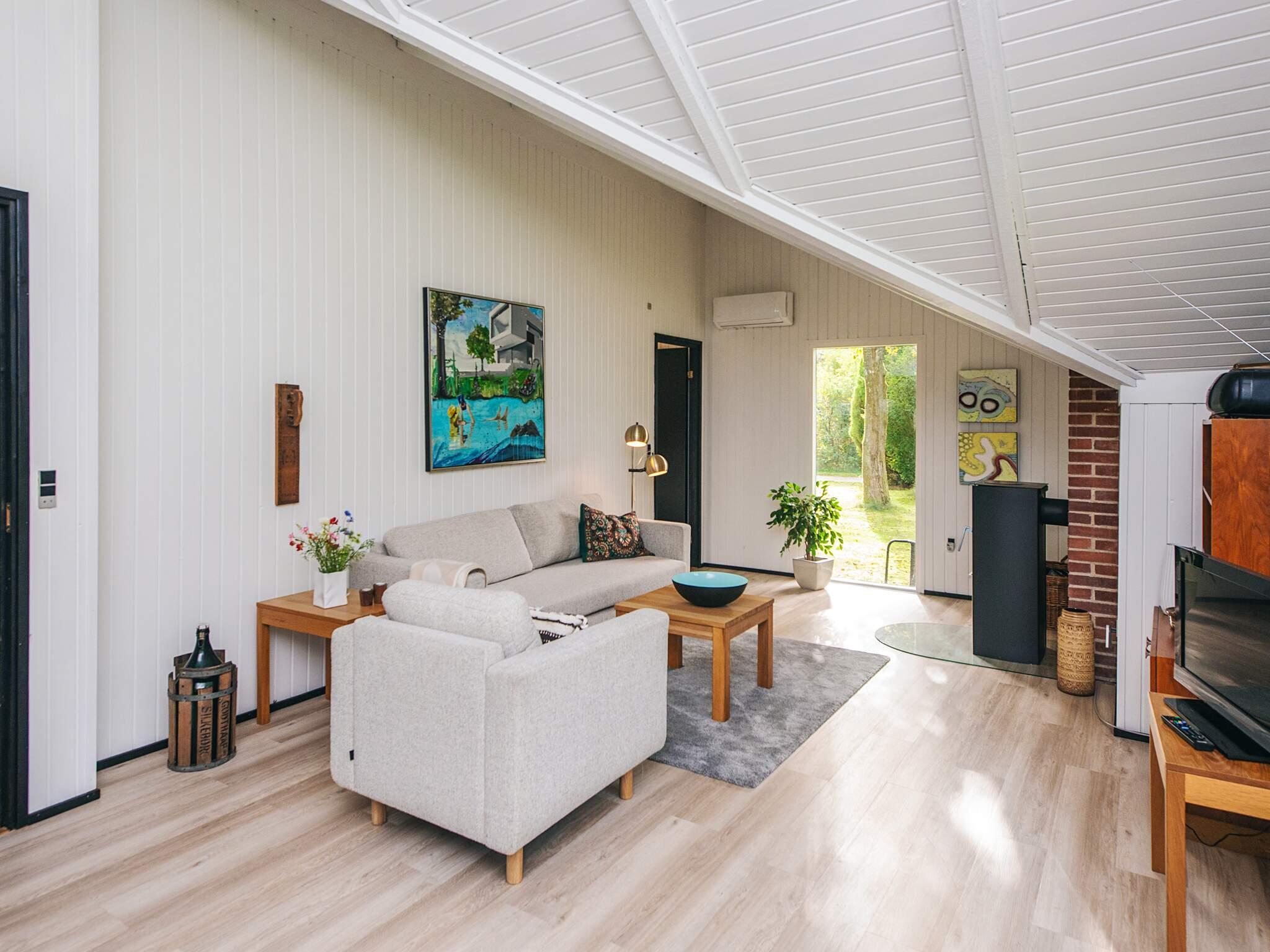 • Großes, offenes Wohnzimmer mit Holzofen – ideal zum Entspannen, für Brettspielabende und zum geselligen Beisammensein.
