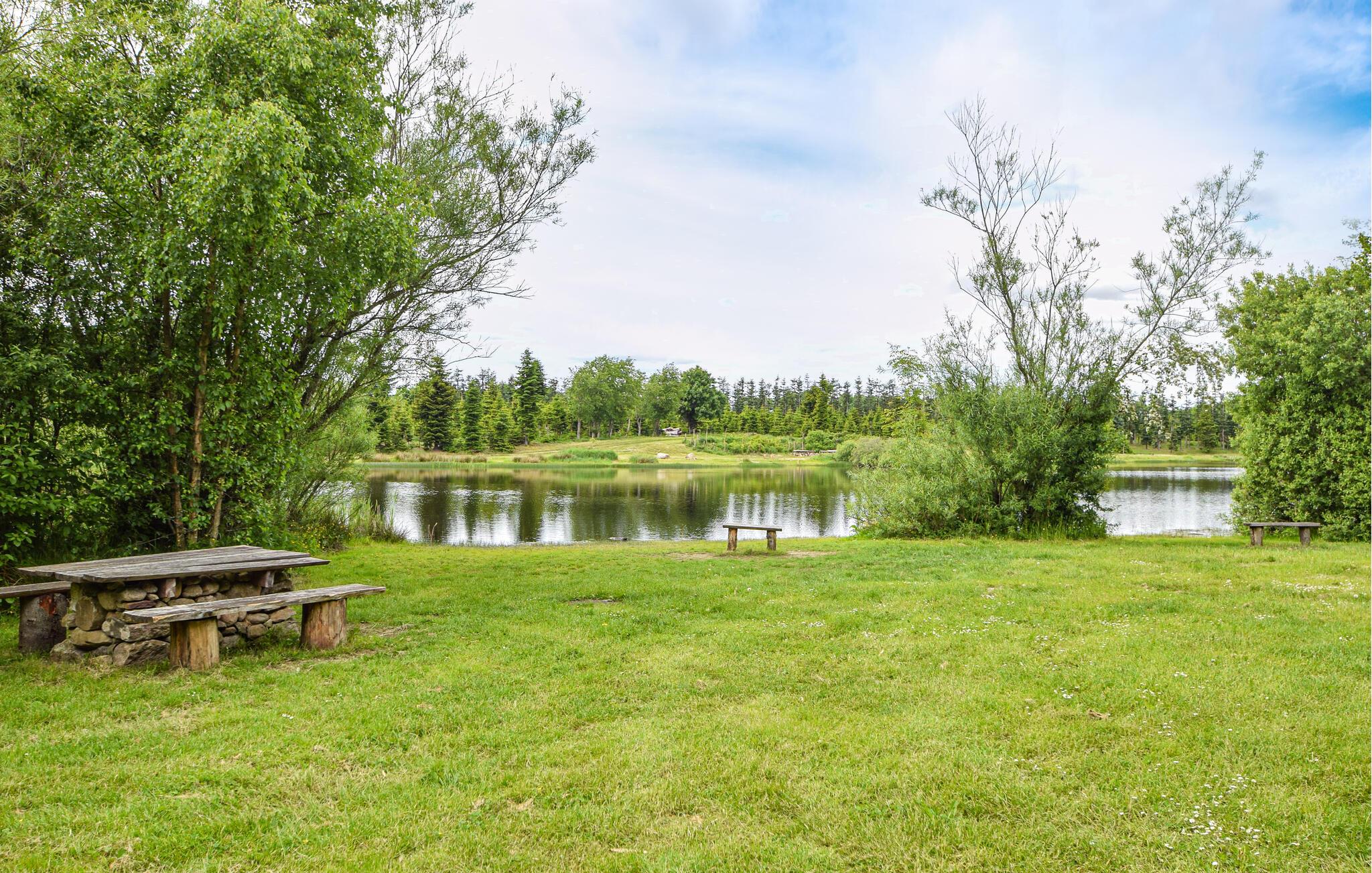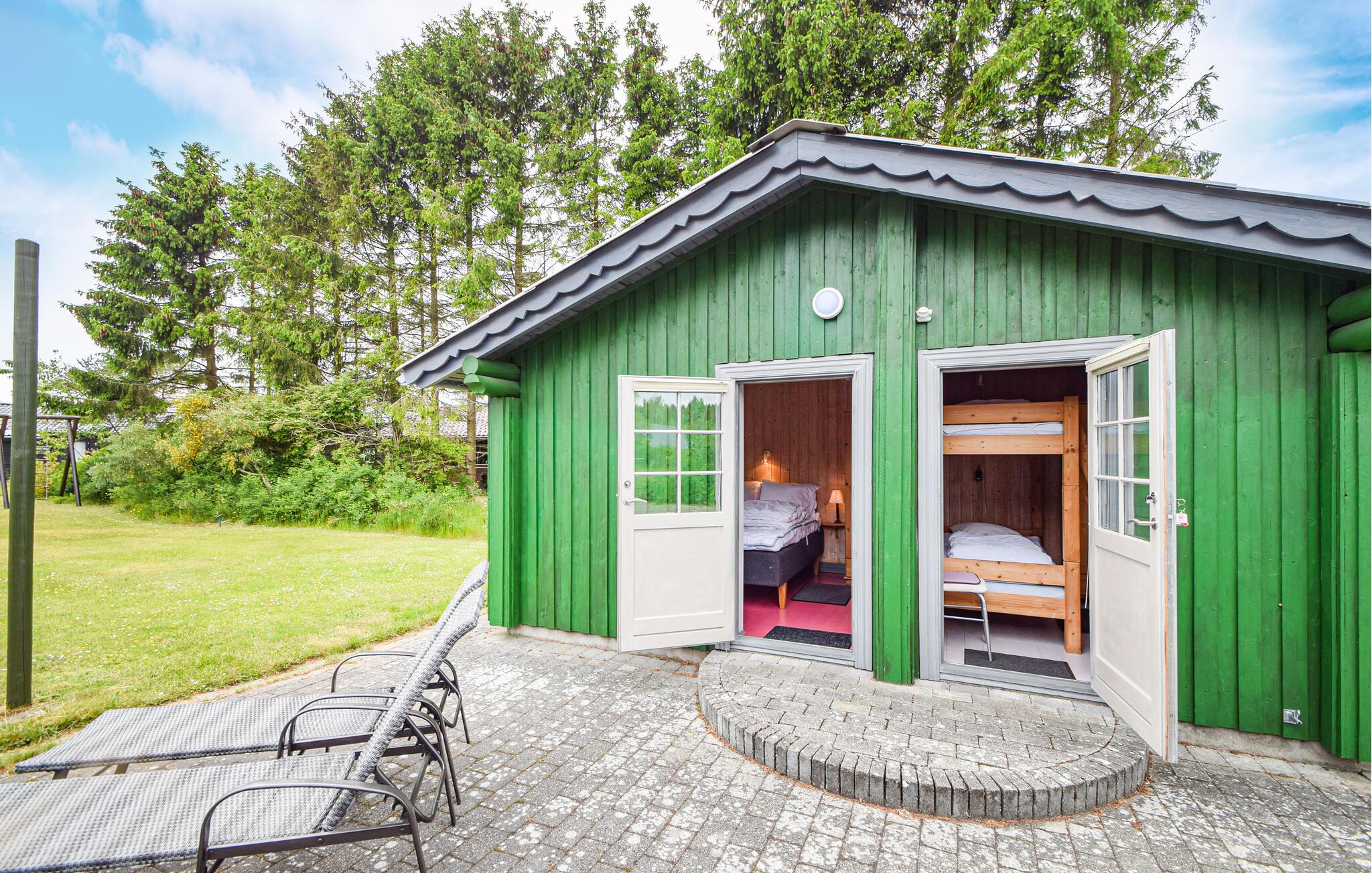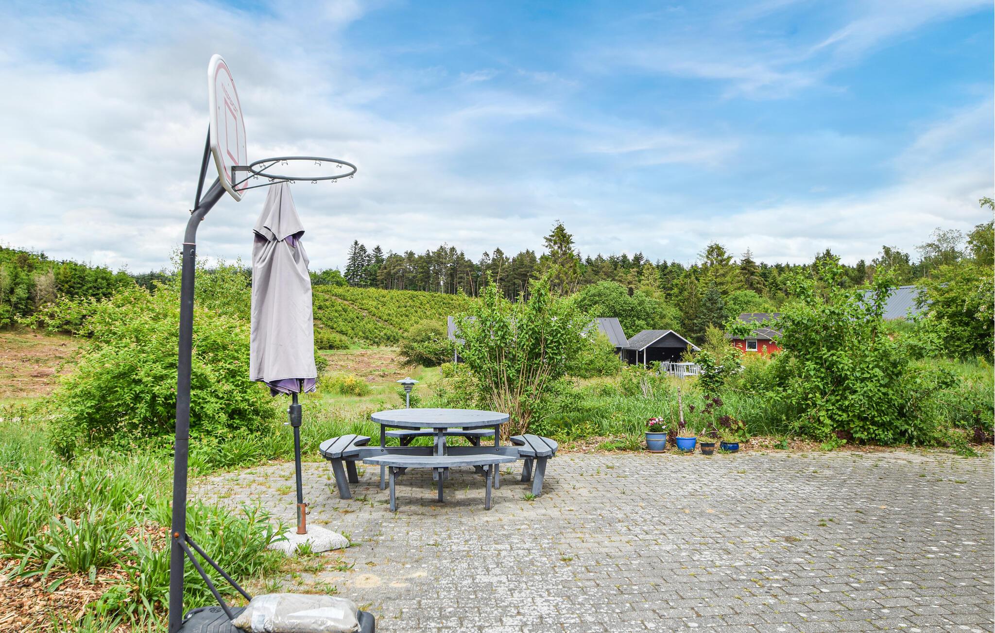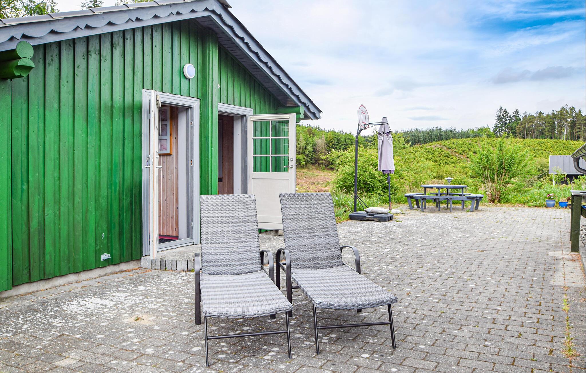 Gemütliches Ferienhaus in einem Gebiet mit schöner Natur. Im Haus gibt es zwei gute Schlafzimmer, und nur wenige Schritte von der gepflasterten Terrasse liegt ein Anbau mit zwei weiteren Schlafzimmern. Hier wurde sich viel Mühe gegeben, damit das Haus den Rahmen um einen schönen Urlaub bildet. Auf der Terrasse um das Haus gibt es viele schöne Ecken und Gartenmöbel. Eine Schaukel, ein Basketballnetz und ein Sandkasten stehen Ihnen zur Verfügung. Hier gibt es viele Gelegenheiten, die Natur zu genießen, darunter auf Ausflügen mit dem Fahrrad. Hier gibt es viele gute Pfade und Radwege, und in einer Stunde erreichen Sie die Großstadt Aarhus. In der Gegend gibt es viele gute Möglichkeiten zu angeln, darunter in mehreren Put-and-Take-Seen, und beim Haus gibt es einen Filetierplatz und viel Gefrierplatz. Es ist nicht weit von hier zu den großen Sehenswürdigkeiten in Jütland wie Legoland und den Löwenpark in Givskud.