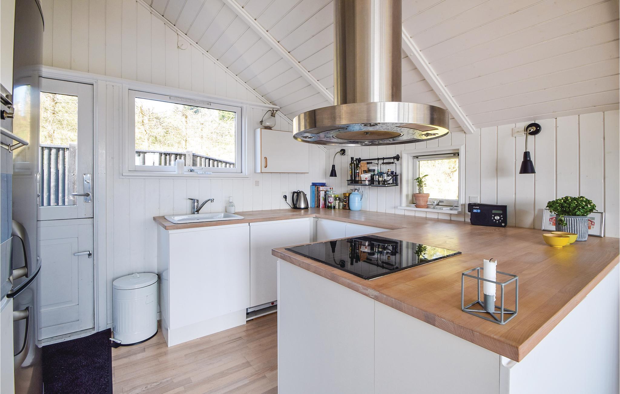 Richtig behagliches Ferienhaus mit einzigartiger, schöner Lage und einer phantastischen Aussicht. Einem Panoramablick über Julsø und den Himmelbjerg. Schon alleine ein Aufenthalt auf der Terrasse und der Ausblick sind die Reise wert. Sie können jedoch nicht ganz bis zum Haus vorfahren, Sie parken das Auto an der Straße und gehen die letzten 150 m zu Fuß auf einem Waldweg. Somit ist das Haus für Personen mit Gehbehinderung wenig geeignet. Zudem liegt das Haus auch auf einem abfallenden Grundstück, Teile sind mit Schotter belegt, eine große Terrasse liegt vor dem Haus, es gibt eine weitere, Aussicht bietende Terrasse. Die Küche ist komplett eingerichtet, zum Wohnzimmer (auch dieses ist mit Aussicht) ist sie offen. Es gibt drei Schlafzimmer und ein Badezimmer, alles mit schöner Einrichtung.
