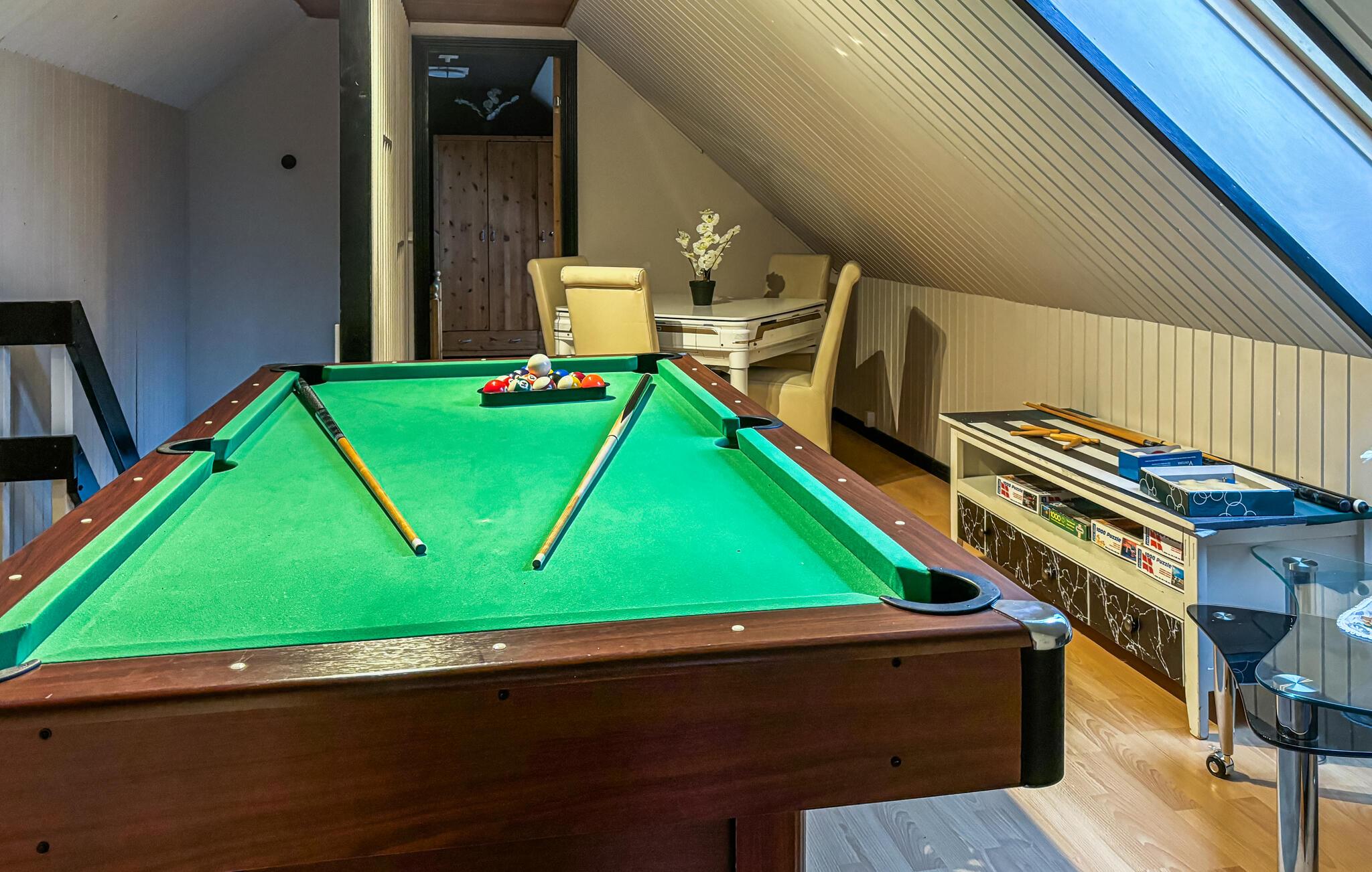 Dieses große, klassische Ferienhaus auf zwei Etagen ist der ideale Rückzugsort für Familien oder Gruppen. Die geschmackvolle Kombination aus hellen und dunklen Farben schafft eine harmonische Atmosphäre, die Sie zum Wohlfühlen einlädt. Eine gut ausgestattete Küche ermöglicht Ihnen gemeinsames Kochen, während das gemütliche Wohnzimmer perfekt für entspannte Filmabende ist.