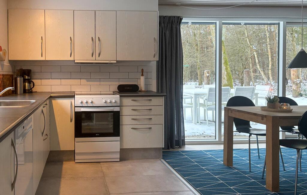 Eingebettet in eine ruhige, waldreiche Umgebung und nur einen Spaziergang vom Ufer des Fjords entfernt, heißt Sie dieses geschmackvoll eingerichtete Ferienhaus mit einer angenehmen und behaglichen Atmosphäre willkommen. Genießen Sie entspannte Mahlzeiten mit Blick in die Natur, vertiefen Sie sich am Kaminofen in Ihre Urlaubslektüre oder finden Sie sich zu gemütlichen Spieleabenden zusammen.