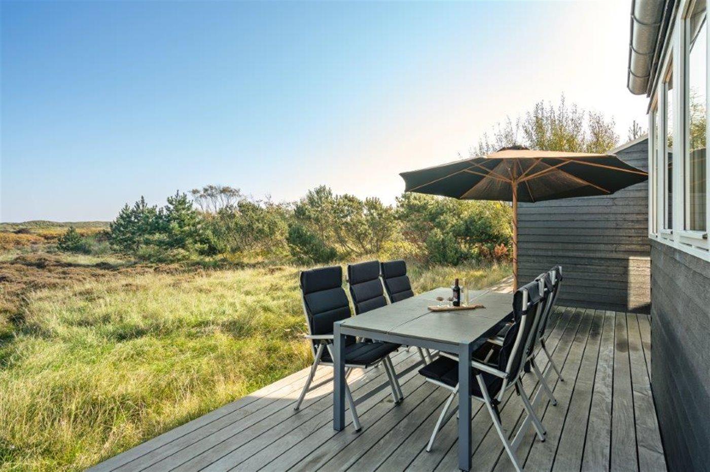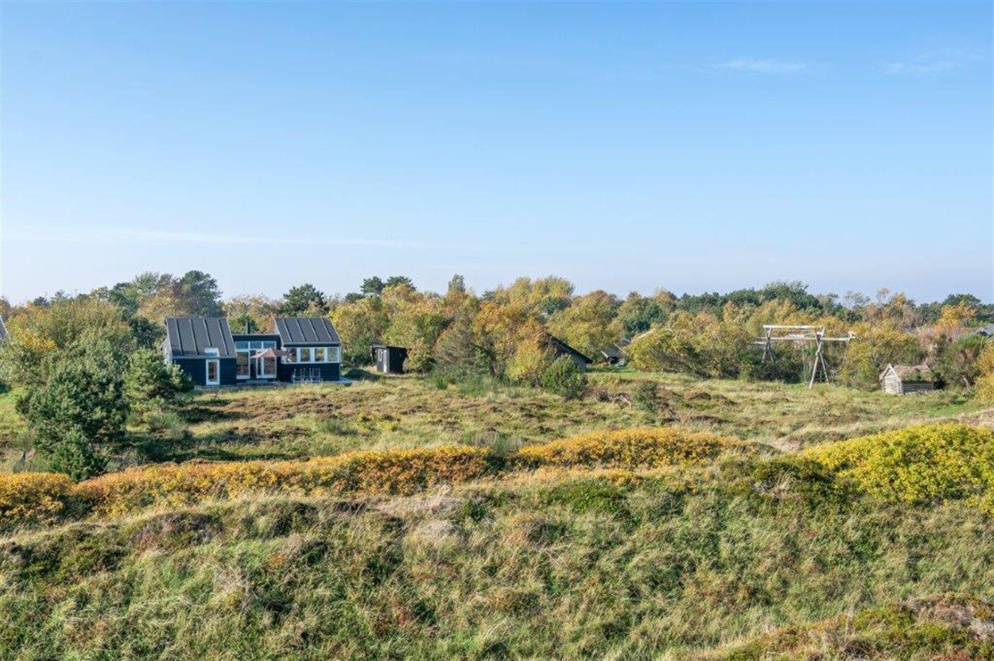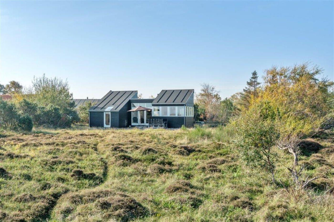 Die Ferienunterkunft liegt auf einem 2157 m² großen Dünengrundstück. Die Entfernung zum Meer beträgt 100 m. Die nächste Einkaufsmöglichkeit liegt 1800 m entfernt. Es steht ein 60 m² Terrassenareal zur Verfügung. Außerdem gibt es 24 m² überdachte Terrasse. Es steht ein Grill zur Verfügung. Parkplatz auf dem Grundstück.