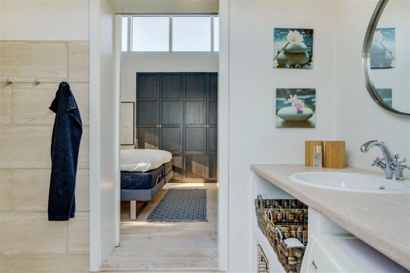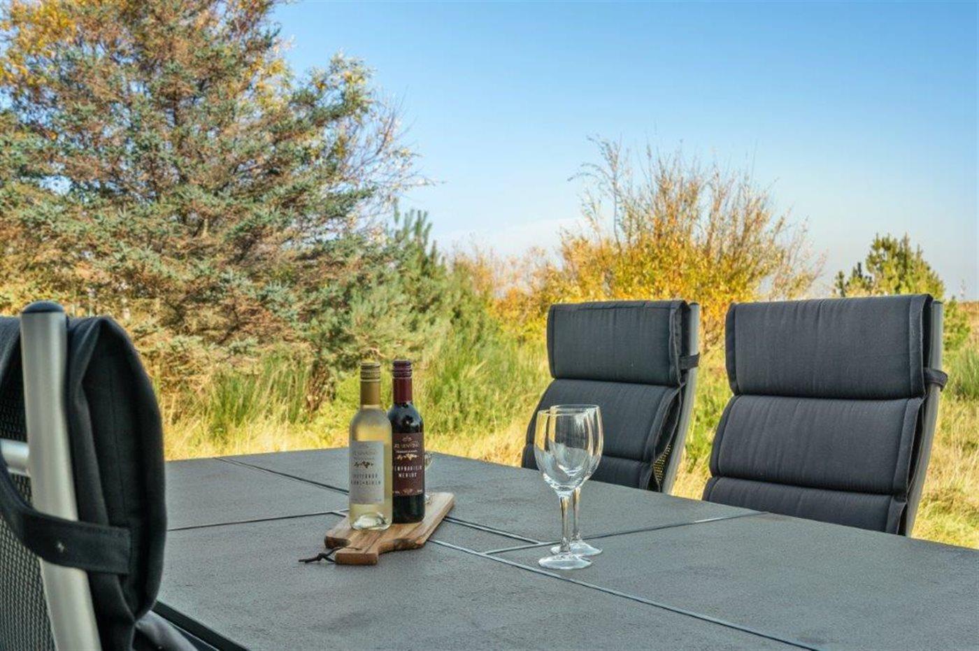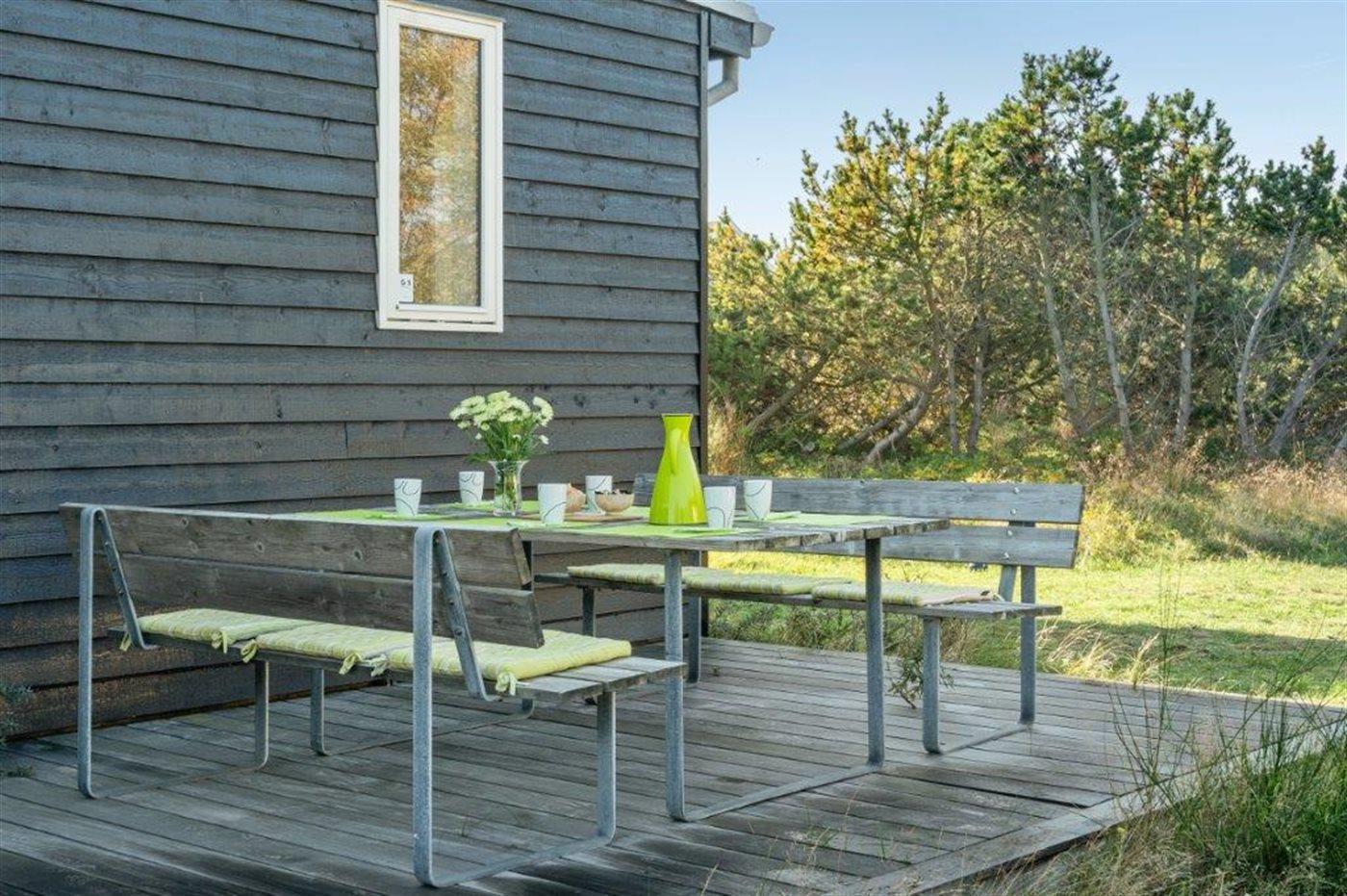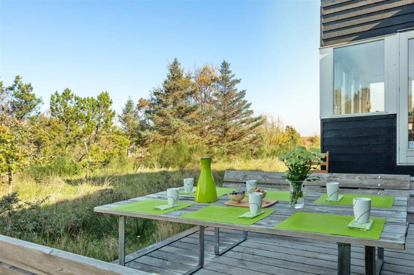 Die Ferienunterkunft liegt auf einem 2157 m² großen Dünengrundstück. Die Entfernung zum Meer beträgt 100 m. Die nächste Einkaufsmöglichkeit liegt 1800 m entfernt. Es steht ein 60 m² Terrassenareal zur Verfügung. Außerdem gibt es 24 m² überdachte Terrasse. Es steht ein Grill zur Verfügung. Parkplatz auf dem Grundstück.