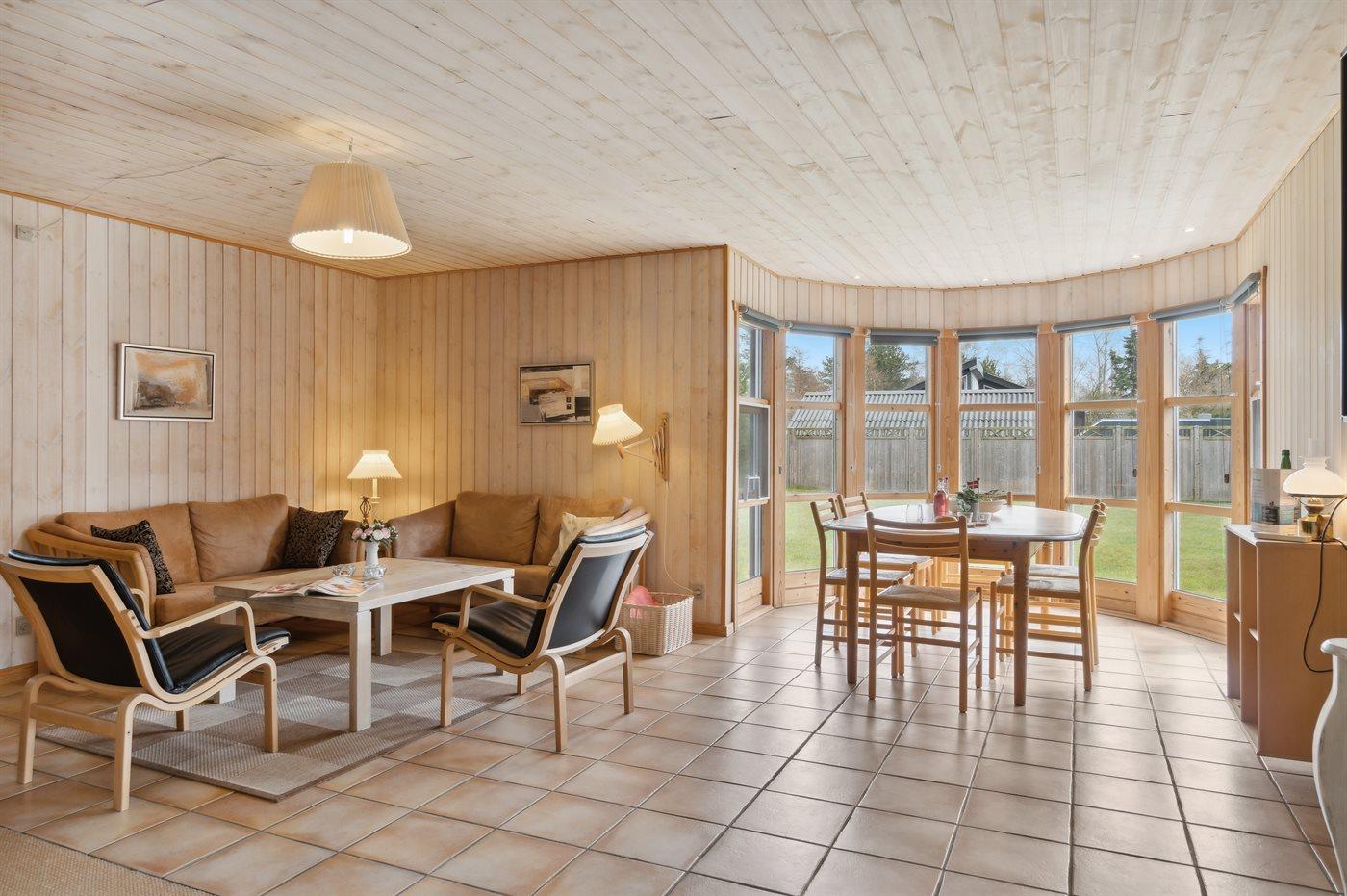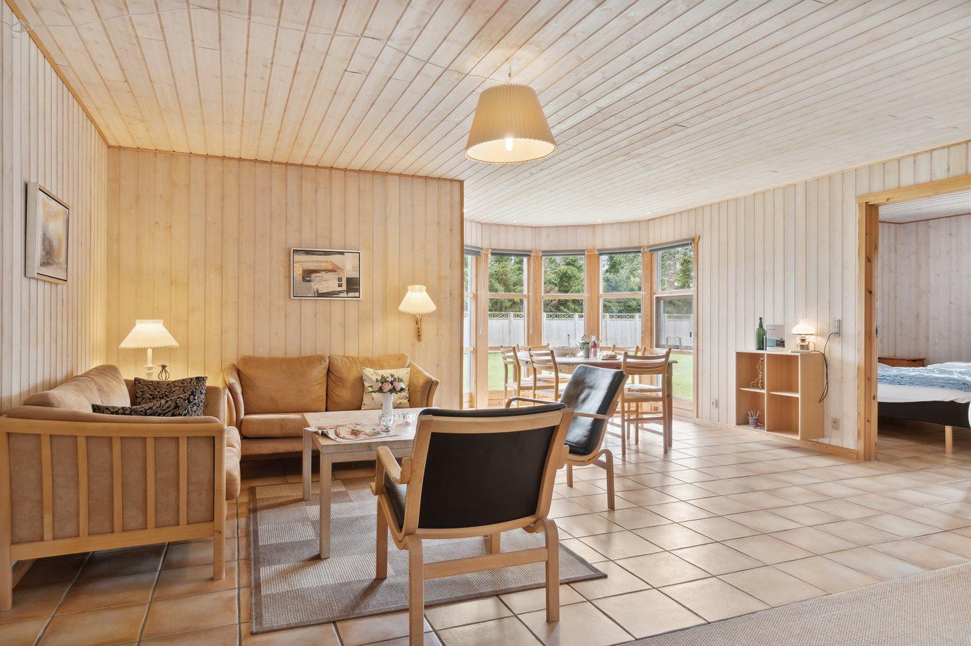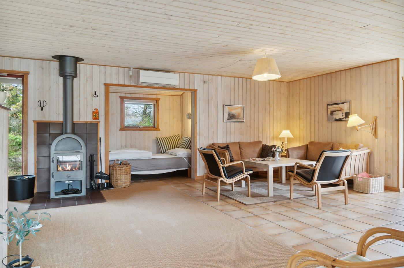 Dieses gemütliche Ferienhaus liegt auf einem schönen Grundstück mit Rasen - in einem ruhigen Ferienhausgebiet nicht weit vom Wasser, der schönen Natur und dem Fährbett der Strecke Sjællands Odde – Aarhus entfernt. Zum Haus gehört eine gute und zum Teil überdachte Terrasse mit Gartenmöbeln. Übrigens: 2 der insgesamt 6 Schlafplätze befinden sich im Wohnzimmer (siehe Grundriss).