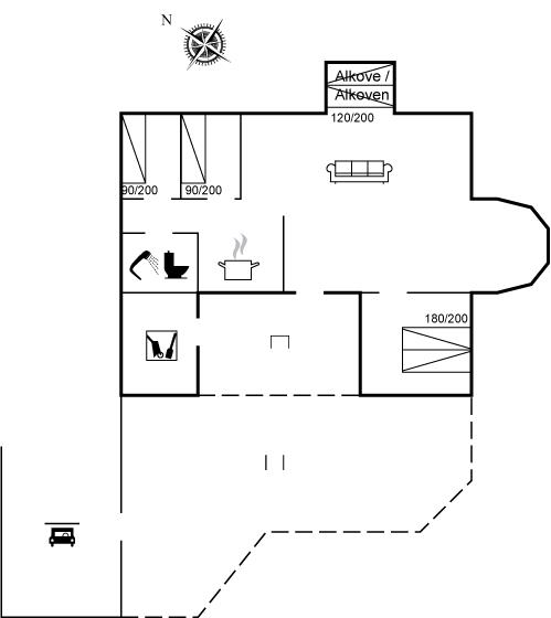 Die Schlafplätze verteilen sich auf 3 Schlafräume. 2 Schlafplätze in einem Doppelbett. 2 Schlafplätze in Einzelbetten.2 Schlafplätze im Alkoven. 2 von diesen Schlafplätzen befinden sich im Wohnzimmer.