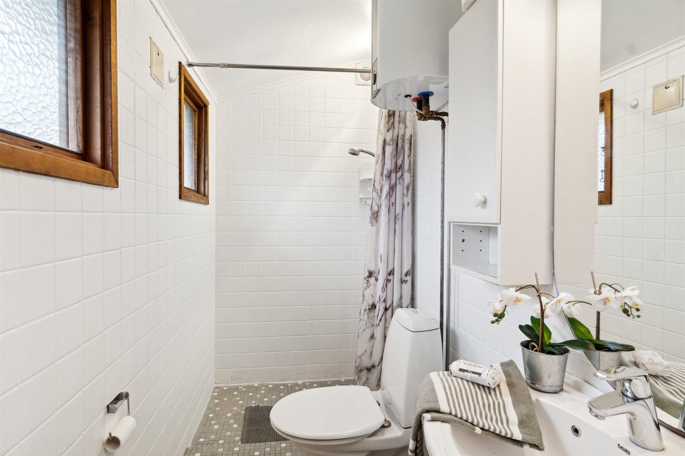 Es gibt 1 Badezimmer mit Duschnische und 1 Toilette.