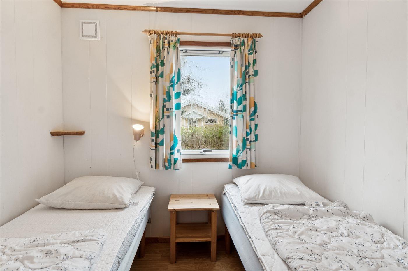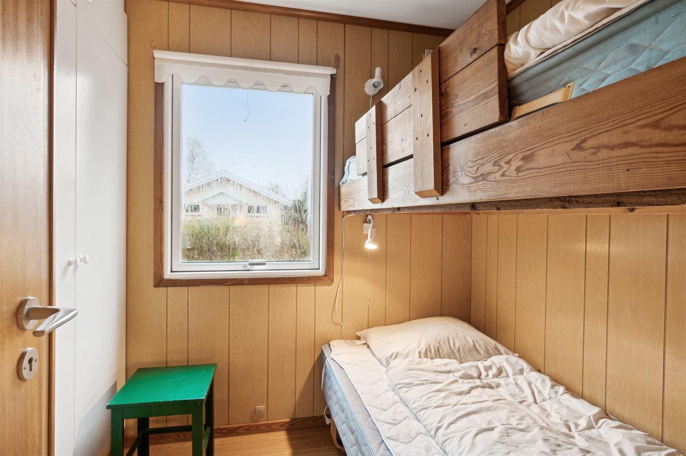 Die Schlafplätze verteilen sich auf 3 Schlafräume. 2 Schlafplätze in einem Doppelbett. 2 Schlafplätze in Einzelbetten. 2 Schlafplätze in einem Etagenbett.