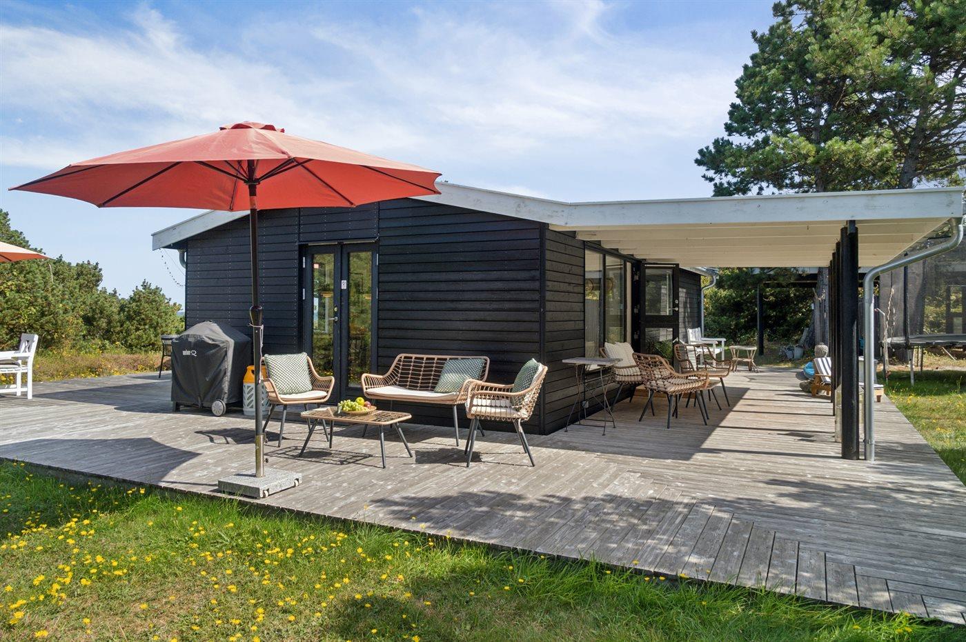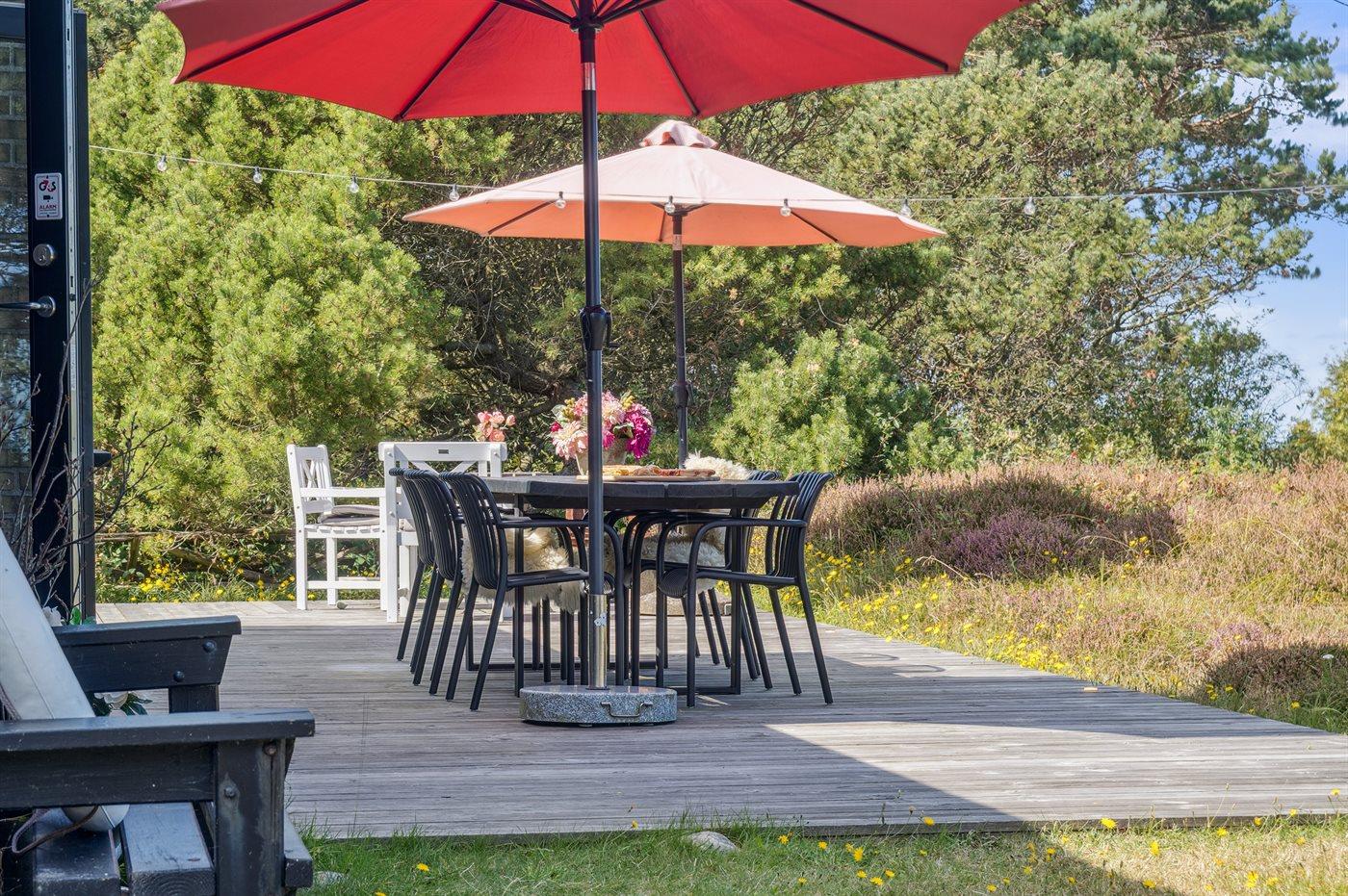 Die Ferienunterkunft liegt auf einem 2524 m² großen Naturgrundstück. Die Entfernung zum Meer beträgt 75 m. Die nächste Einkaufsmöglichkeit liegt 4600 m entfernt. In einem Abstand von 9550 m gibt es einen Golfplatz. Es steht ein 91 m² Terrassenareal zur Verfügung. Außerdem gibt es 21 m² überdachte Terrasse. Trampolin. Es steht ein Grill zur Verfügung. Es steht ein Carport zur Verfügung. Parkplatz auf dem Grundstück.