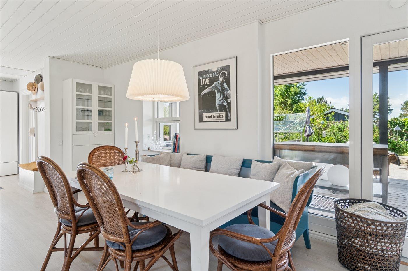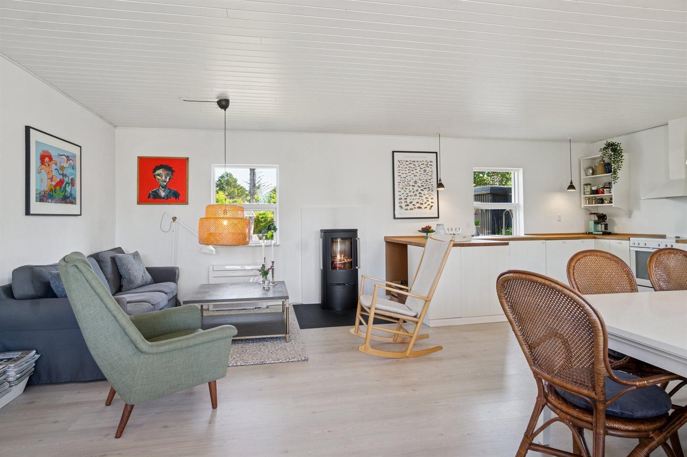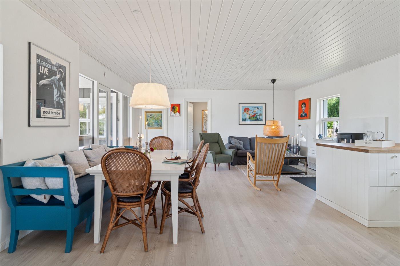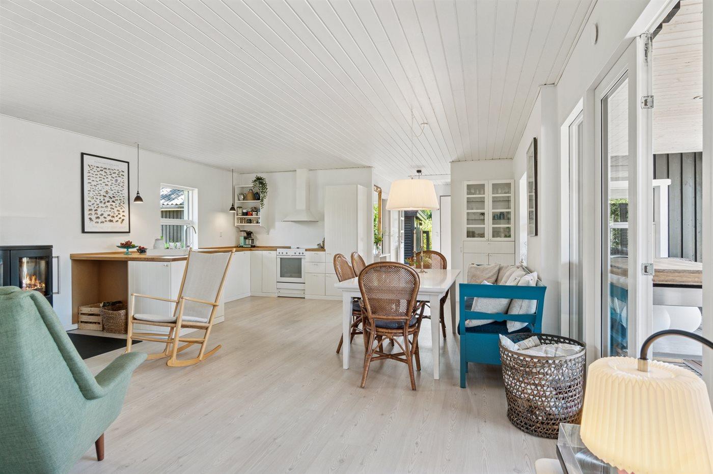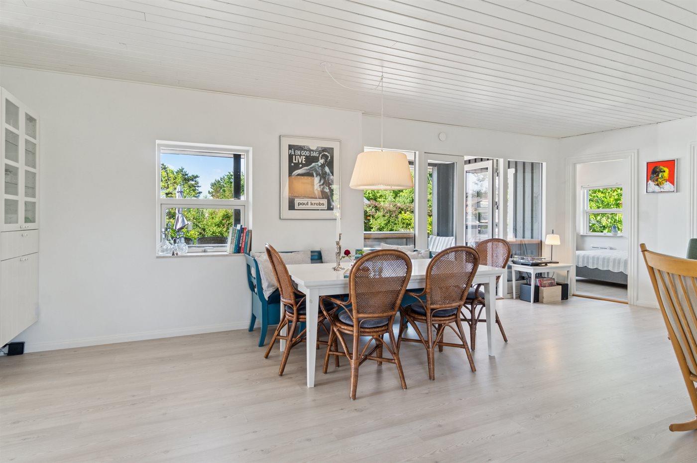 Dieses wunderschöne und sommerlich eingerichtete Ferienhaus mit einer fantastischen Terrassenlandschaft liegt auf der Südseite von Sjællands Odde in zweiter Reihe zur Sejerø Bucht, nur 125 Meter vom Strand entfernt. Das Haus lädt sowohl drinnen als auch draußen zu Entspannung und gemütlichem Beisammensein ein. Die große Südterrasse ist eingezäunt, und der Zaun ist mindestens 100 cm hoch. Hier gibt es reichlich Gelegenheit, die Sonne zu genießen sowie Schatten und Windschutz unter den überdachten Bereichen zu finden und die langen, hellen Sommerabende zu genießen.