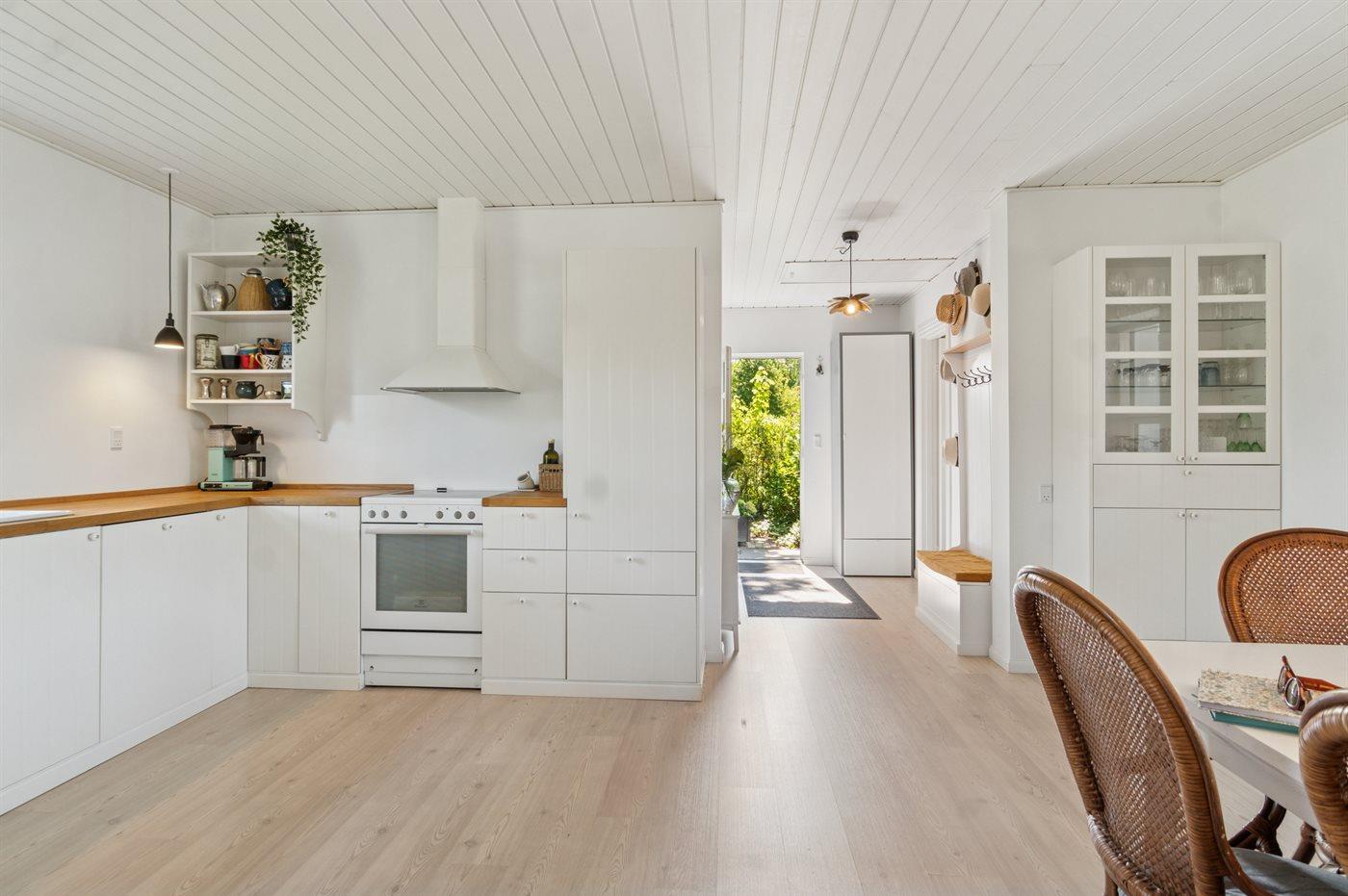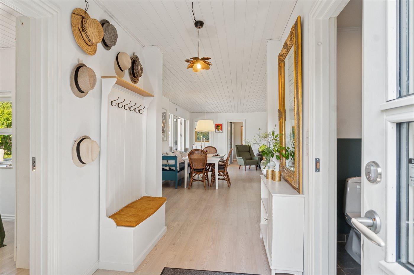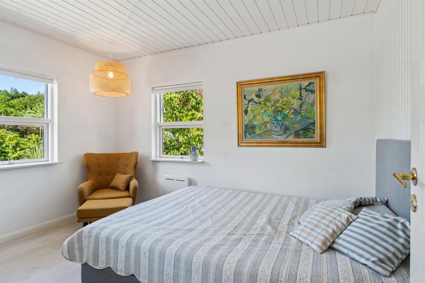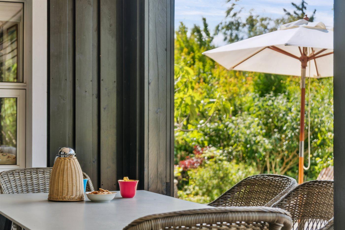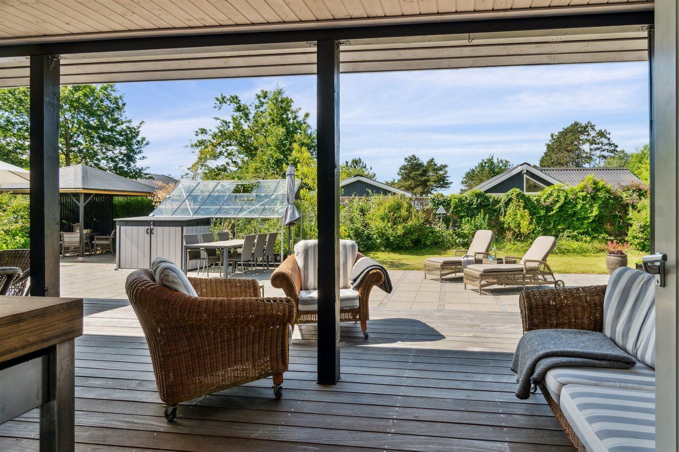 Dieses wunderschöne und sommerlich eingerichtete Ferienhaus mit einer fantastischen Terrassenlandschaft liegt auf der Südseite von Sjællands Odde in zweiter Reihe zur Sejerø Bucht, nur 125 Meter vom Strand entfernt. Das Haus lädt sowohl drinnen als auch draußen zu Entspannung und gemütlichem Beisammensein ein. Die große Südterrasse ist eingezäunt, und der Zaun ist mindestens 100 cm hoch. Hier gibt es reichlich Gelegenheit, die Sonne zu genießen sowie Schatten und Windschutz unter den überdachten Bereichen zu finden und die langen, hellen Sommerabende zu genießen.