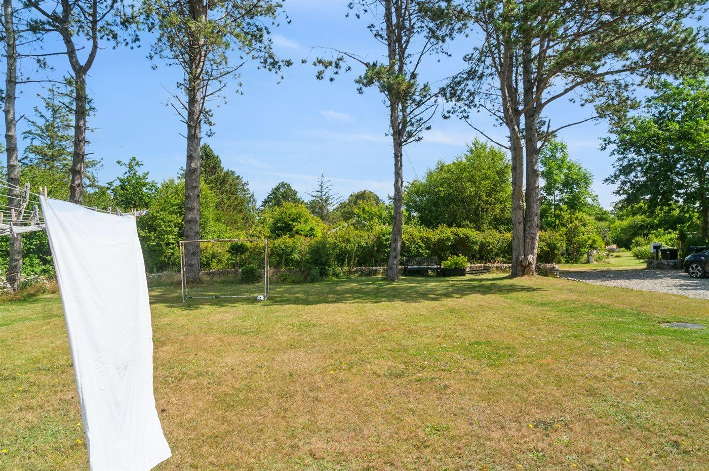 Im Garten gibt es viele Möglichkeiten zum Spielen mit den Kindern, einschließlich Schaukel und Fußballtor. Zudem gibt es eine Feuerstelle.