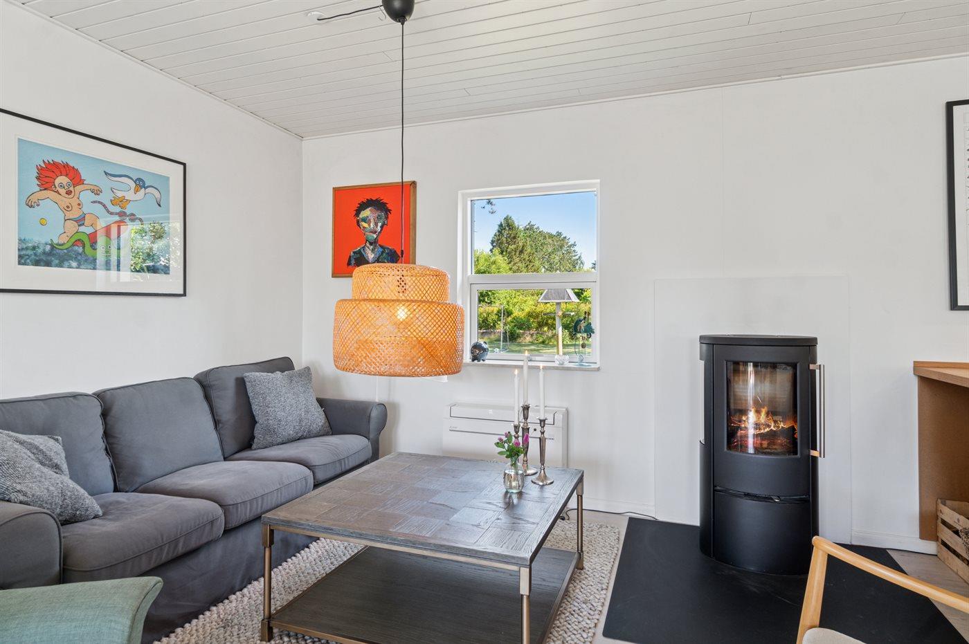 Das Haus wird energieeffizient mit einer Luft-zu-Luft-Wärmepumpe beheizt. Für besonders gemütliche Stunden steht außerdem ein Kaminofen zur Verfügung.