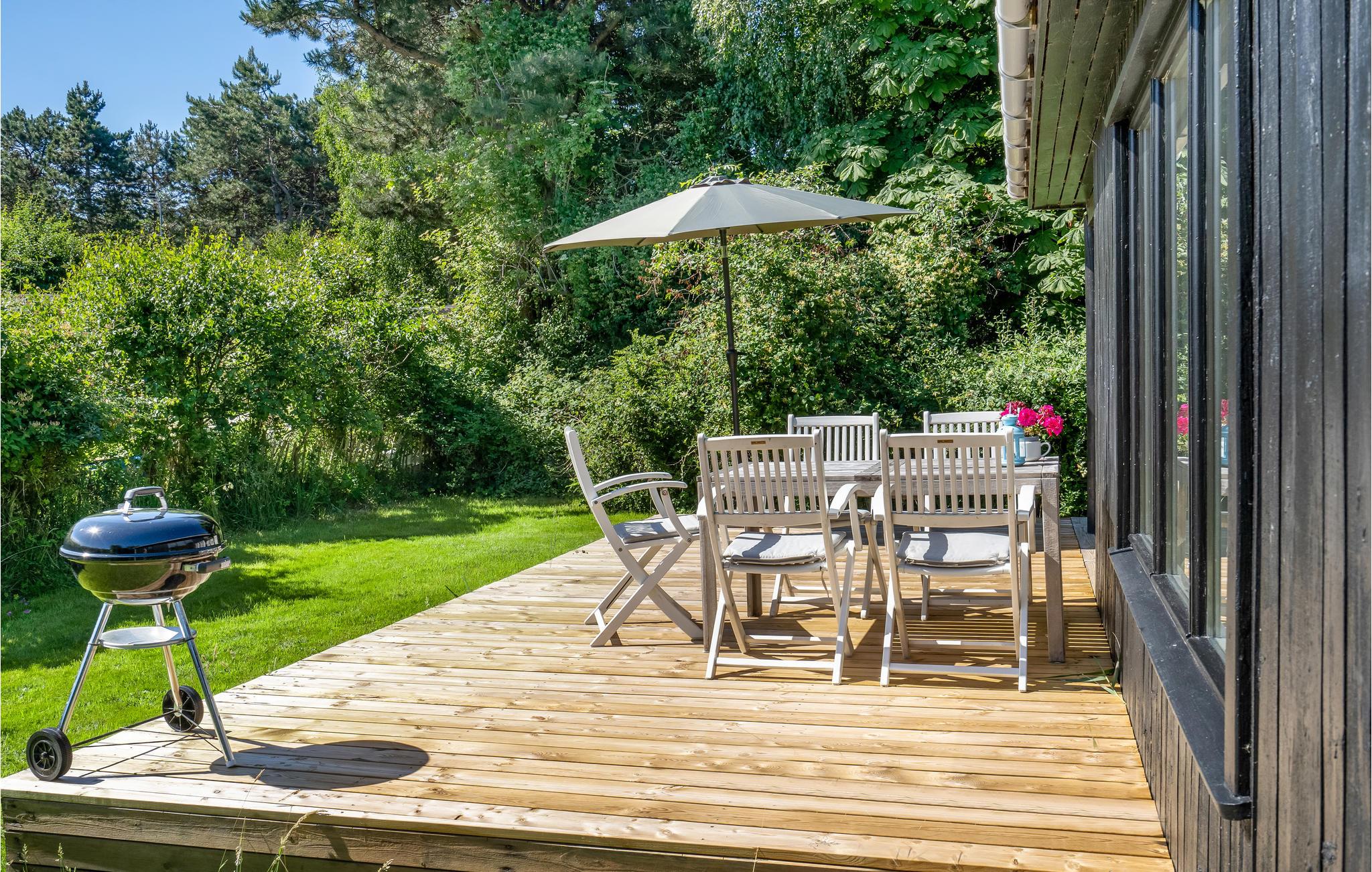 Dieses schöne und stilvoll eingerichtete Ferienhaus mit seiner großen Holzterrasse lädt soch richtig zum Entspannen in der Natur ein.