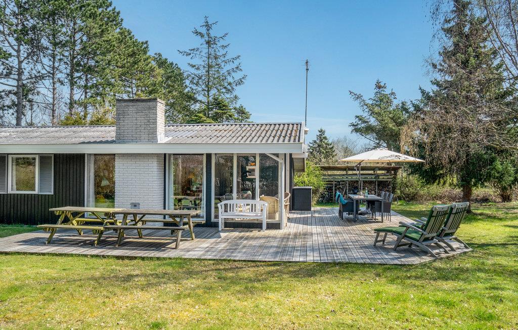 Das gemütliche Haus begrüßt Sie auf einem idyllischen, von Bäumen umgebenen Grundstück und in fußläufiger Entfernung zum Strand nahe guten Golf- und Angelmöglichkeiten. Die einladenden Räume mit wohnlicher Möblierung erhalten durch die Holzverkleidung einen warmen Ausdruck und bilden den idealen Rahmen für einen erholsamen Urlaub, in dem Sie den Alltag weit hinter sich lassen können. Große Fenster sorgen dafür, dass Sie im Wohnbereich einen schönen Blick in den Garten genießen. Entspannen Sie hier nach einem Strandspaziergang, machen Sie es sich alle zusammen mit einem Film oder Spielen gemütlich und genießen Sie die gemeinsame Zeit, während die Flammen im Kaminofen leise knistern.