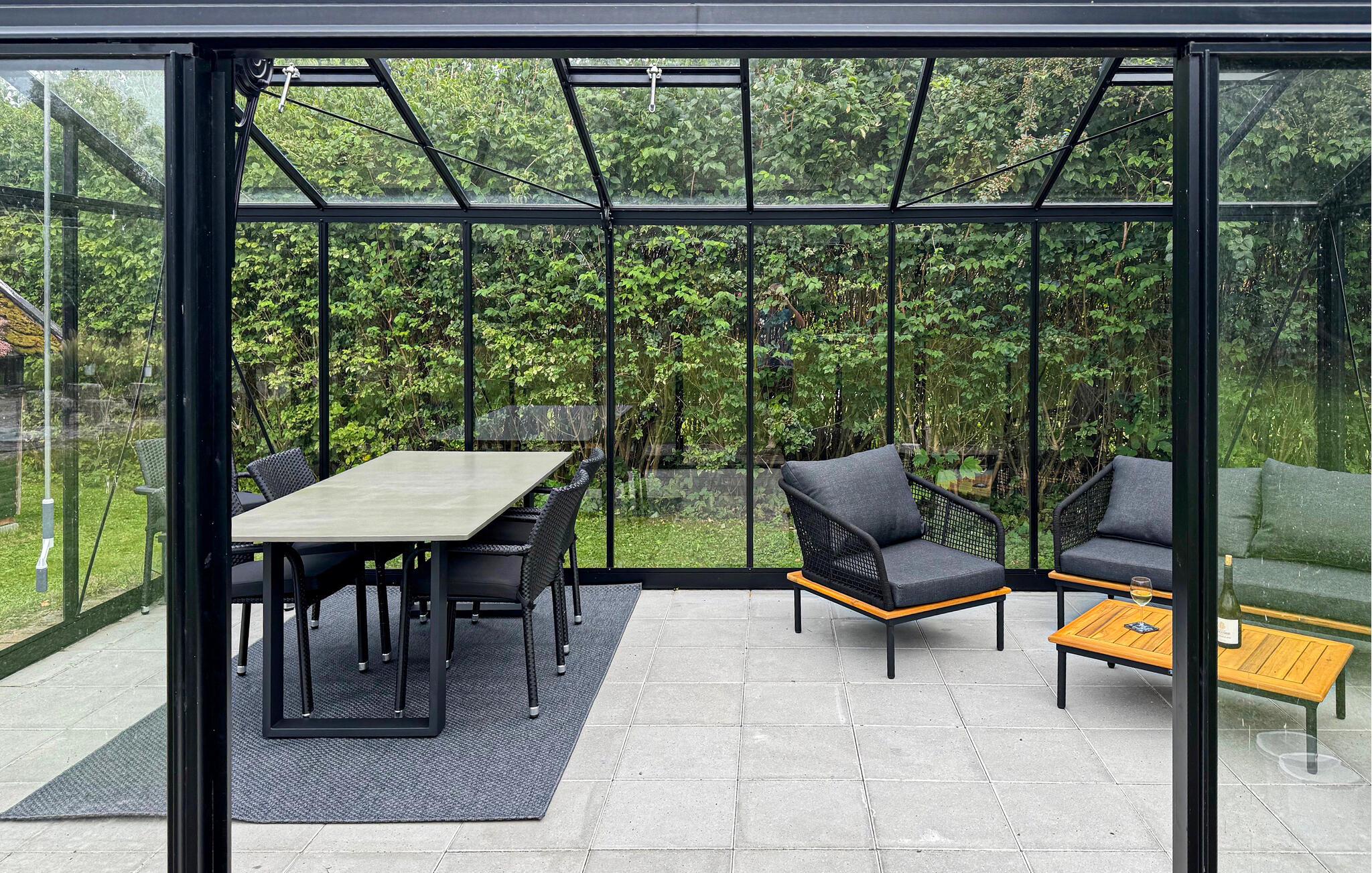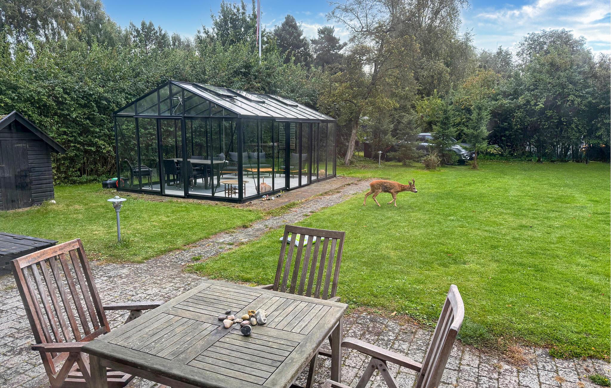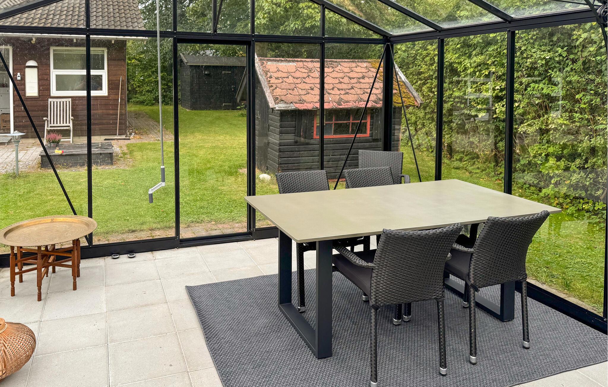 Ihr Ferienhaus liegt auf einem weitläufigen Naturgrundstück mit Terrassen und idyllischen Ecken. Machen Sie sich es in den Gartenmöbeln bei einem frisch gebrühten Kaffe oder einem kalten Getränk bequem, während die Kinder sich auf der Grünfläche austoben. Den perfekten Ort für einen stimmungsvollen Ausklang des Tages finden Sie im Gewächshaus, das dank des Terrassenheizers das ganze Jahr über benutzt werden kann.