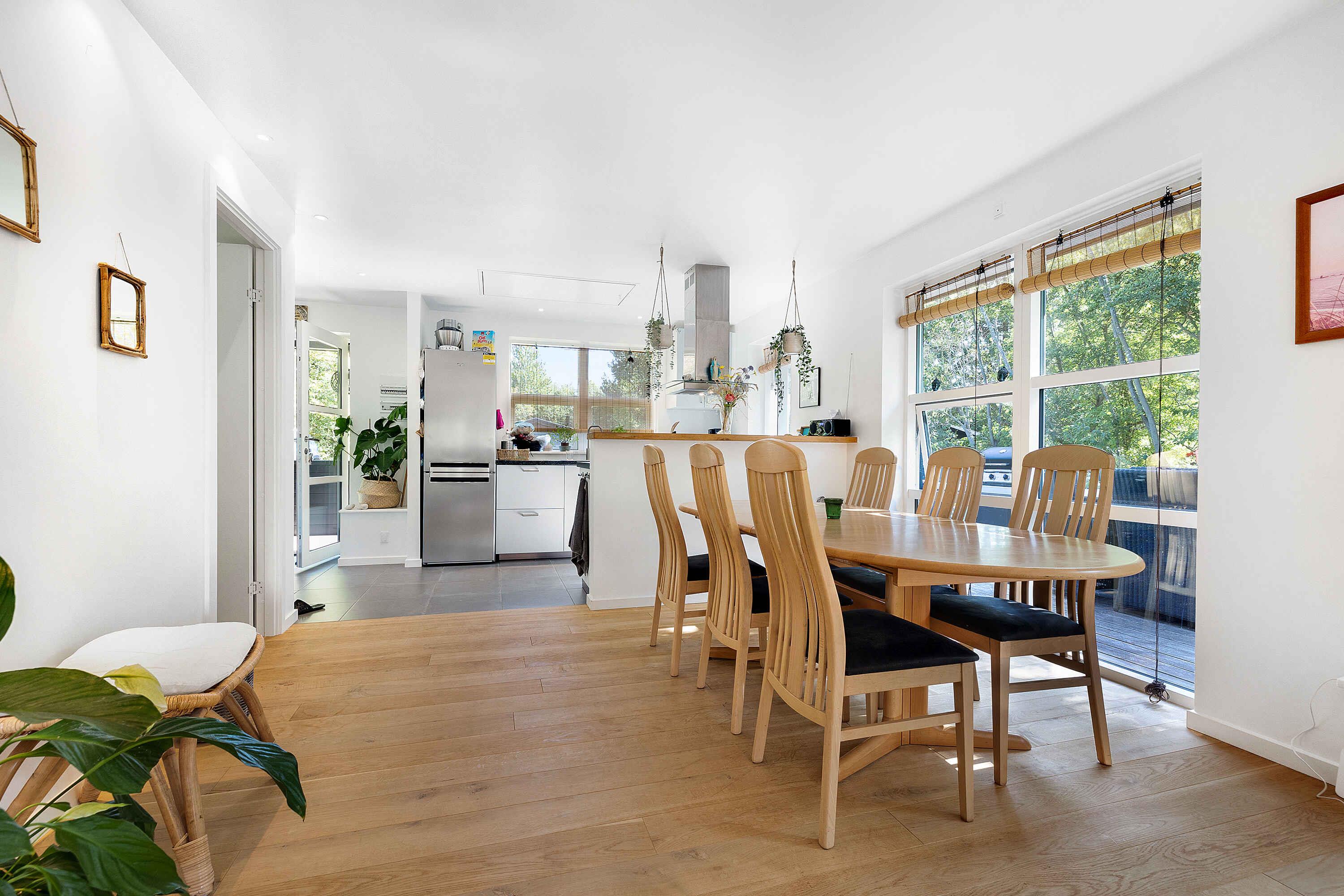 An der Landspitze Seelands, in der Nähe der Fähre nach/von Aarhus, liegt dieses moderne Ferienhaus nur 700 Meter vom Strand entfernt. Das Haus ist gut eingerichtet mit zwei schönen Badezimmern und drei Schlafzimmern mit zwei Doppelbetten und einem Etagenbett. Insgesamt 7 Schlafplätze. Es gibt auch eine offene und gut ausgestattete Küche, einen großen Esstisch für die ganze Familie und ein gemütliches und geräumiges Wohnzimmer mit bequemen Möbeln und Fernseher. Ein perfekter Ort, um sich zu entspannen und einen wunderschönen Urlaub zu genießen. Das Haus wirkt einladend und hell mit schönen Fensterpartien mit viel Licht. Gemütliche Ecken erwarten Sie auf der großen Terrasse, perfekt für herrlich warme Sommertage. Genießen Sie die schöne Umgebung und stellen Sie sich ein leckeres Menü im Freien zusammen, das Sie auf dem hauseigenen Grill zubereiten können. Das Haus liegt auf einem großen, schönen Grundstück in einer malerischen und ruhigen Umgebung, die großartige Möglichkeiten für Aktivitäten im Freien und zum Spielen bietet. Vom Haus aus sind es nur 10 Gehminuten zu den Stränden in beide Richtungen (Kiesstrände). Wenn Sie einen Sandstrand mit Rettungsschwimmern bevorzugen, finden Sie den beliebten und kinderfreundlichen Strand in Gudmindrup, nur ca. 15 Autominuten vom Haus entfernt. Es gibt auch gute Möglichkeiten zum Angeln und eine kurze Entfernung zu einer Burgerbar und einer Eisdiele. Einkaufsmöglichkeiten und ein Fischhaus mit leckeren frischen Fischen befinden sich ca. 4-5 km vom Haus entfernt. Unweit des Hauses befinden sich u.a. Vandeksperimentariet (eine Wasseranlage zum Spielen und Lernen, die auf Sjællands Odde frei zugänglich ist) und Sommerland Sjælland (ein Freizeitpark). Zwei lustige Erlebnisse für die ganze Familie.