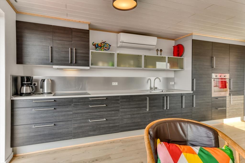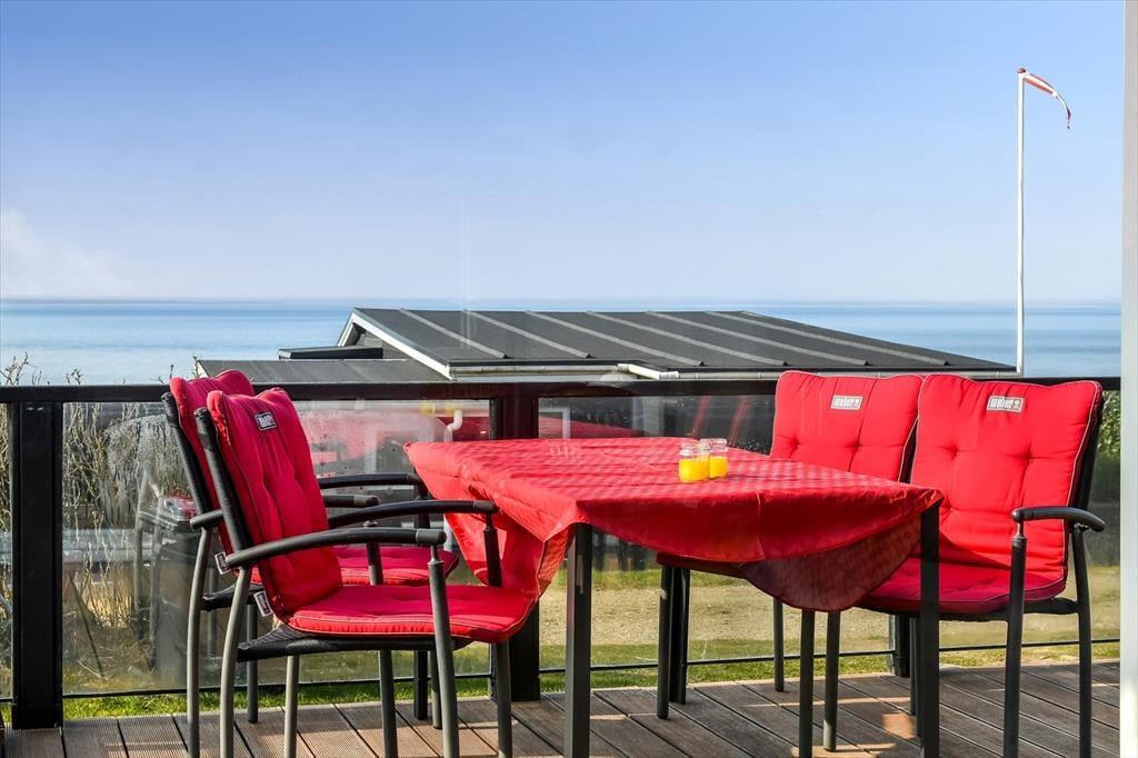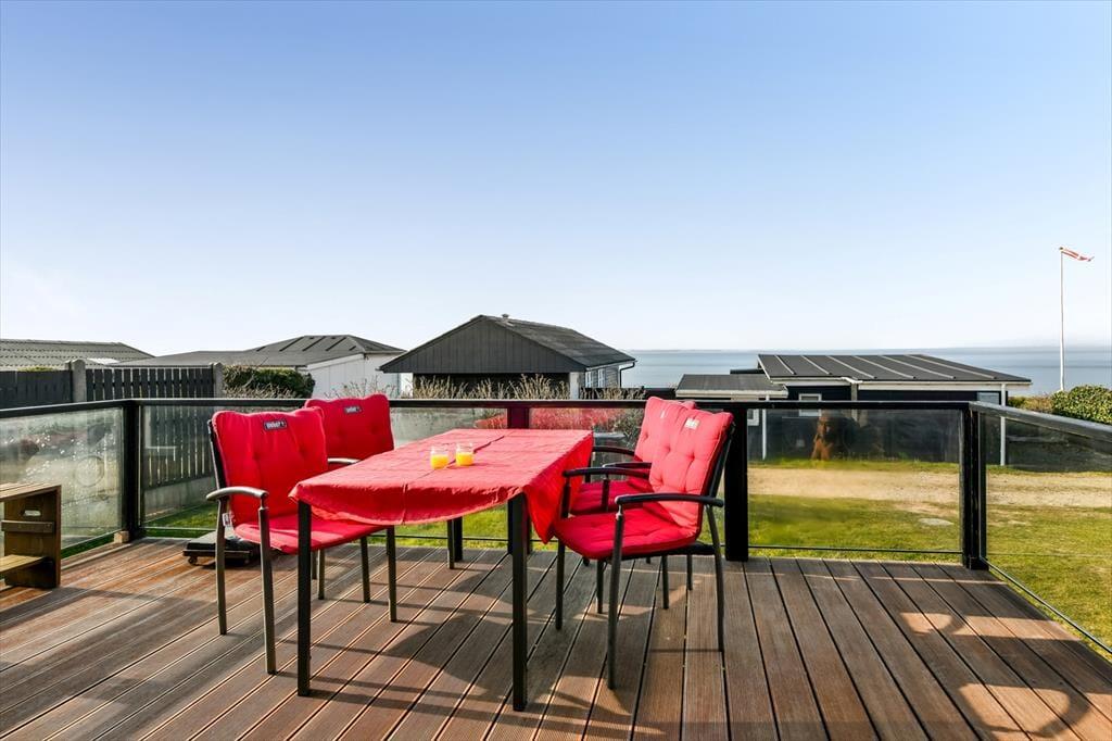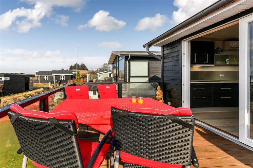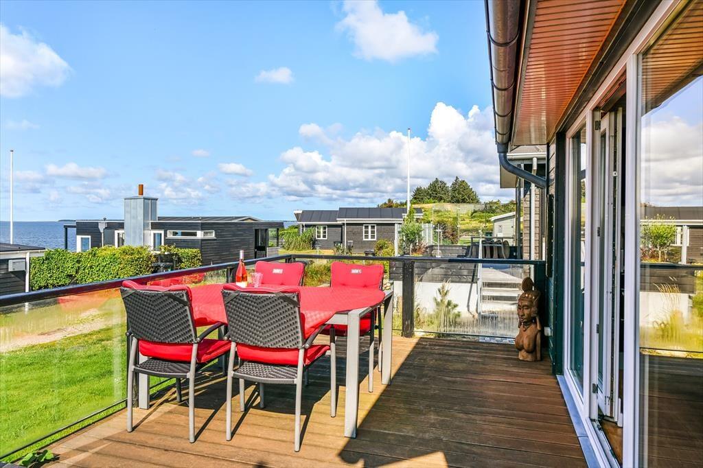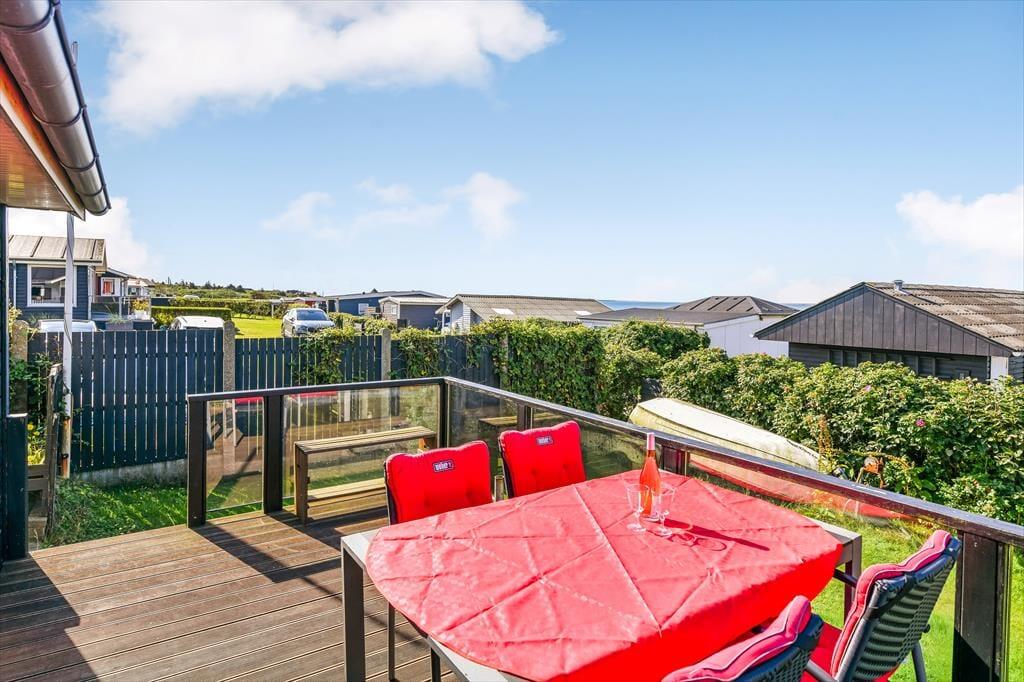 Vom Aufenthaltsraum gelangst du hinaus auf die nach Südwesten ausgerichtete Terrasse, auf der du dich den ganzen Tag über sonnen, spannende Bücher lesen und die tolle Aussicht auf die Ho Bucht genießen kannst. Wenn die Sonne am Abend langsam am Horizont versinkt, bewundert ihr das wunderschöne Farbenspiel am besten mit eurem Lieblingsgetränk in der Hand. Dies sind die Momente, die den Urlaub zu etwas ganz Besonderem machen! Rund um das Haus begrüßen dich unterschiedliche Terrassenareale. Die kleine Grasfläche wird durch einen hölzernen Sichtschutzzaun gut abgeschirmt.