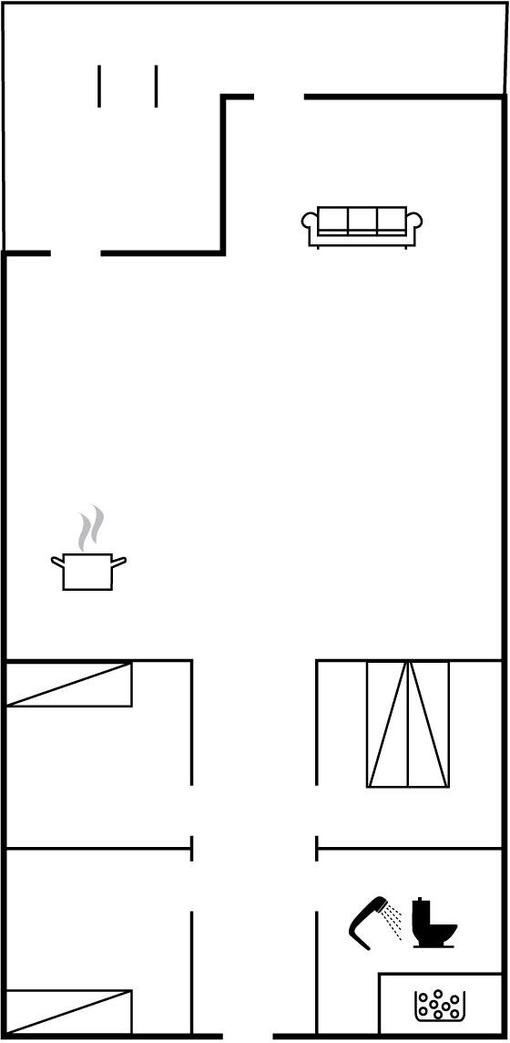 Die Schlafplätze verteilen sich auf 3 Schlafräume. 2 Schlafplätze in einem Doppelbett. 2 Schlafplätze in Einzelbetten.