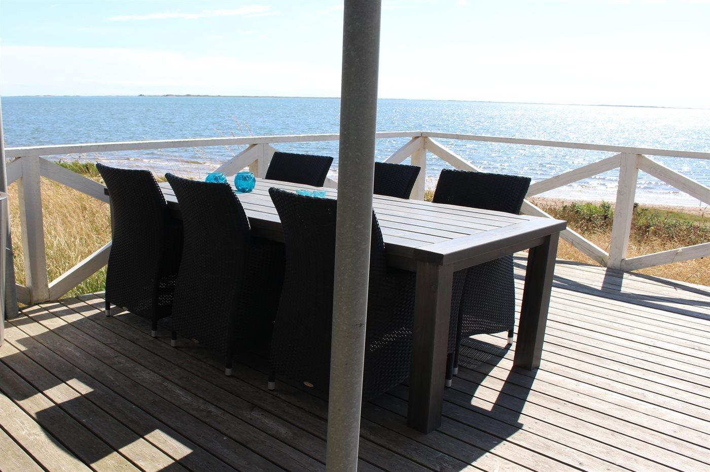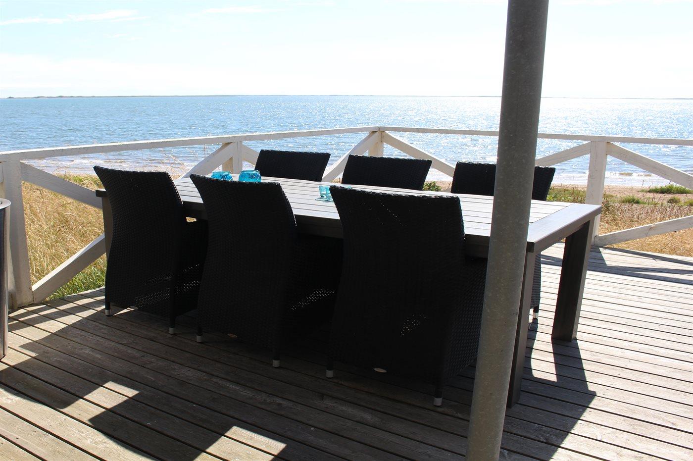 Die Ferienunterkunft liegt auf einem 1400 m² großen Naturgrundstück. Die Entfernung zum Meer beträgt 30 m. Die nächste Einkaufsmöglichkeit liegt 3000 m entfernt. Es steht ein offenes Terrassenareal zur Verfügung. Parkplatz auf dem Grundstück.