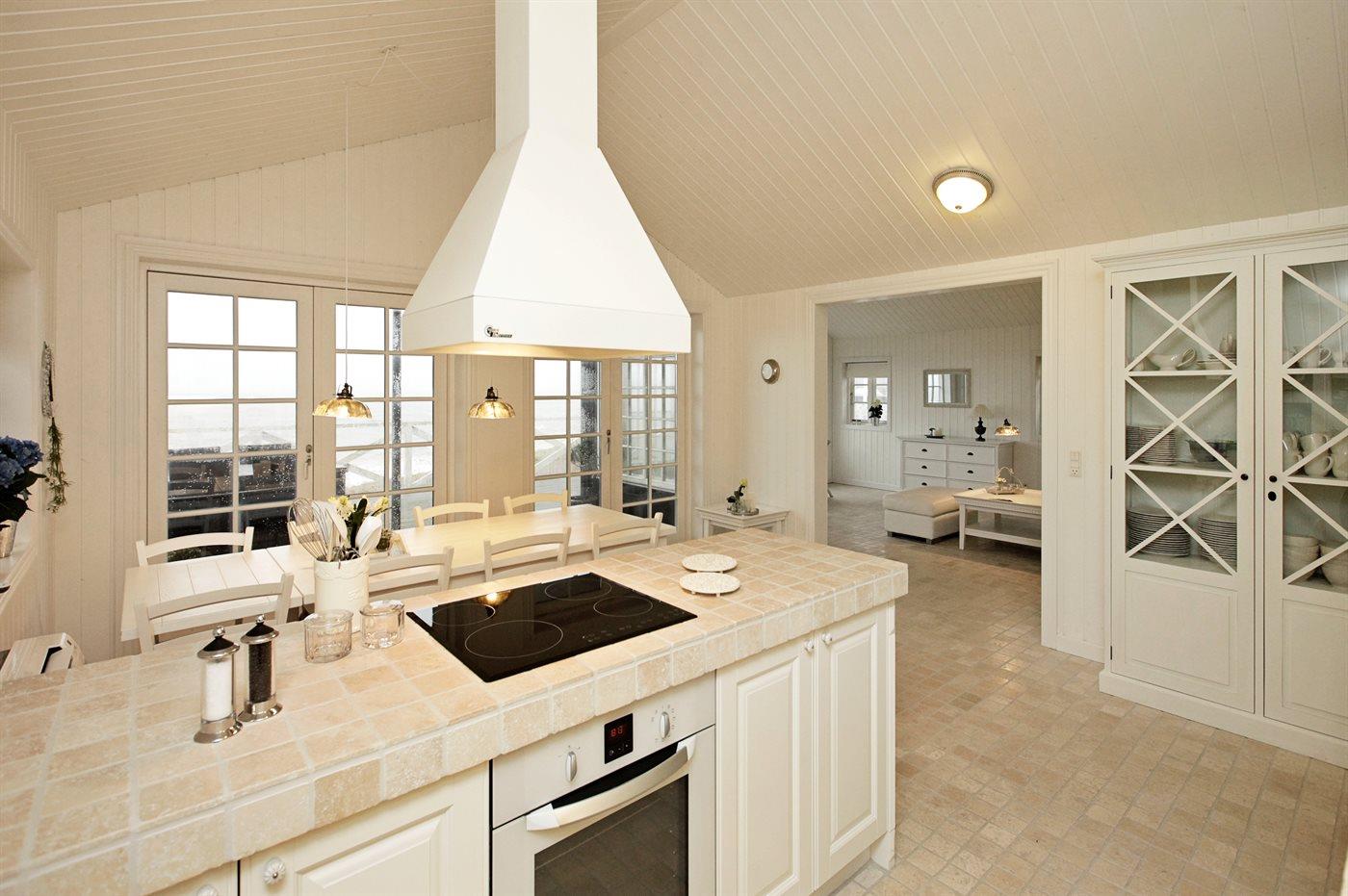 Die Küche ist mit Kühlschrank ausgestattet. Außerdem gibt es 4 Keramik-Kochfelder, Umluftofen, Mikrowelle sowie Geschirrspüler.
