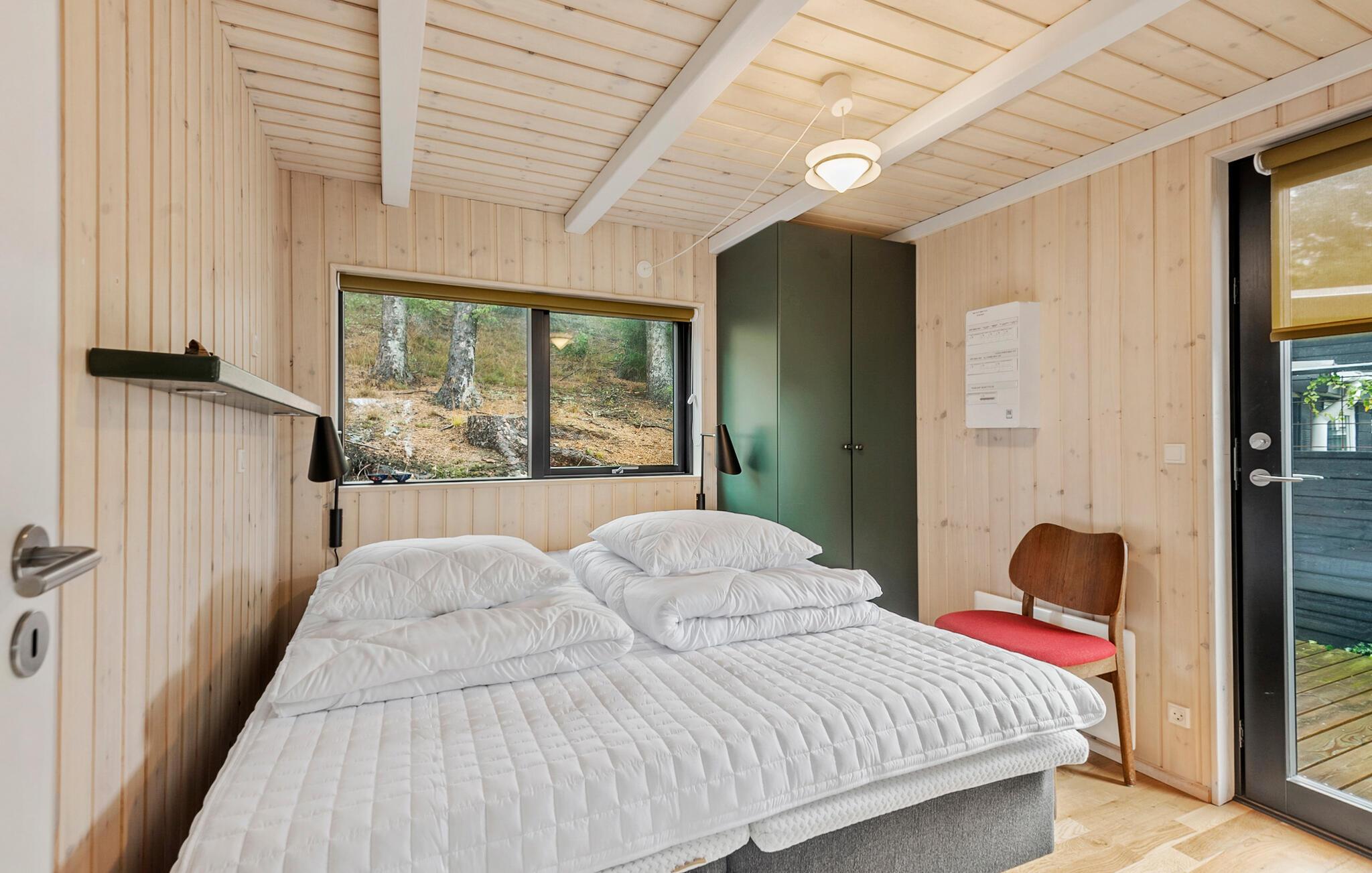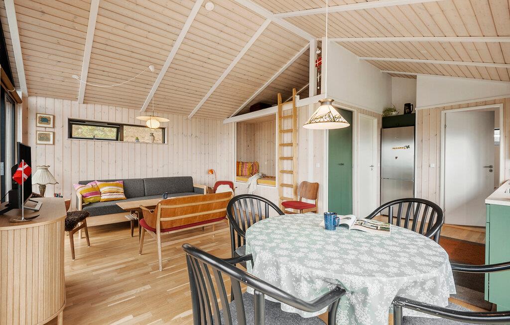 Das Innere dieses einladenden Hauses zeichnet sich durch Rustikalität und Wärme aus. Eine naturfarbene Holzvertäfelung, gemütliche Sofas und große Fenster sorgen für eine Atmosphäre, in der Sie sich wohlfühlen und schnell entspannen können. Hören Sie Ihre Lieblingsmusik, einen interessanten Podcast oder genießen Sie einfach nur das Nichtstun. Die moderne Küche lädt dazu ein, gemeinsam zu kochen und ausgiebig bei einem Glas Wein zu tafeln.