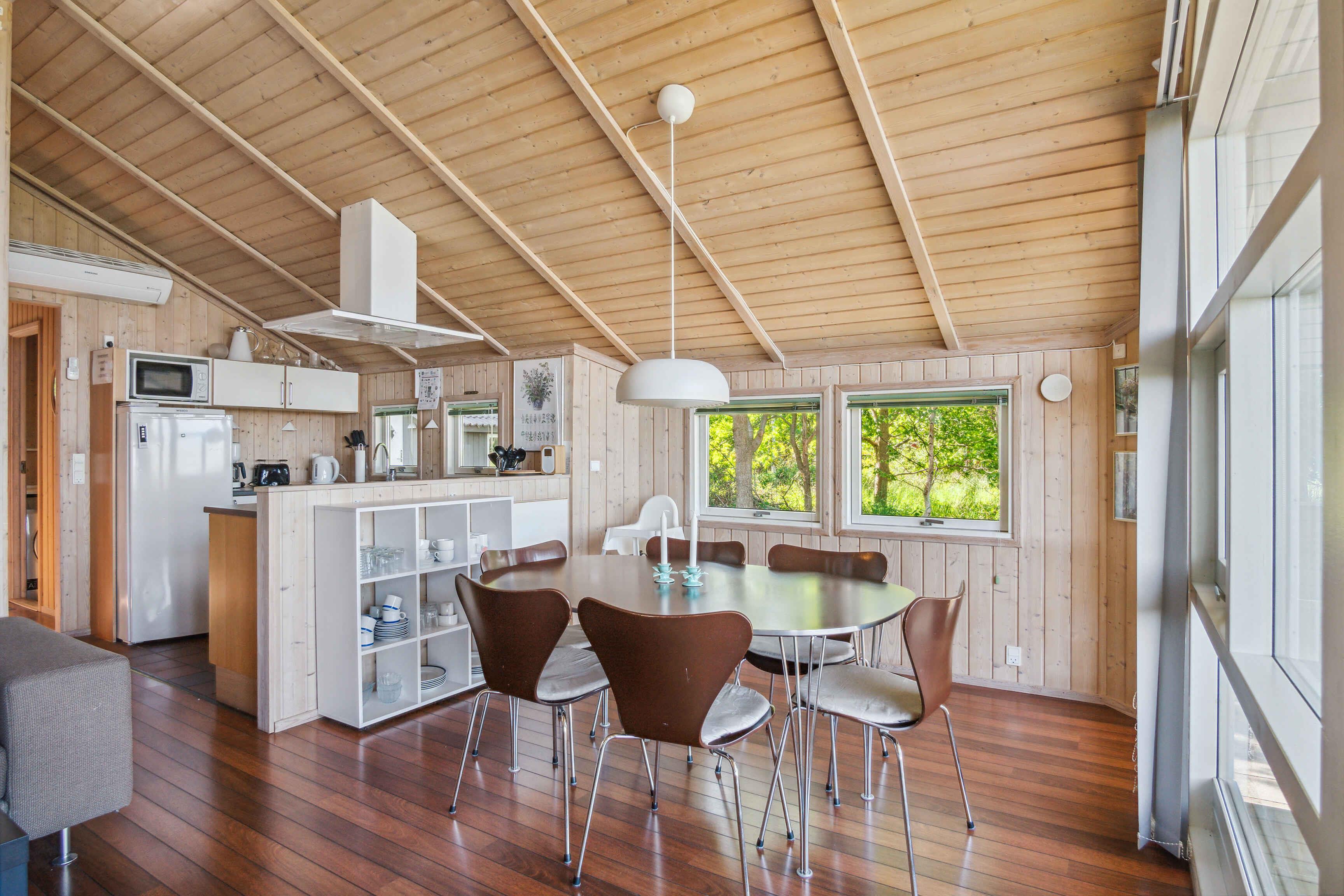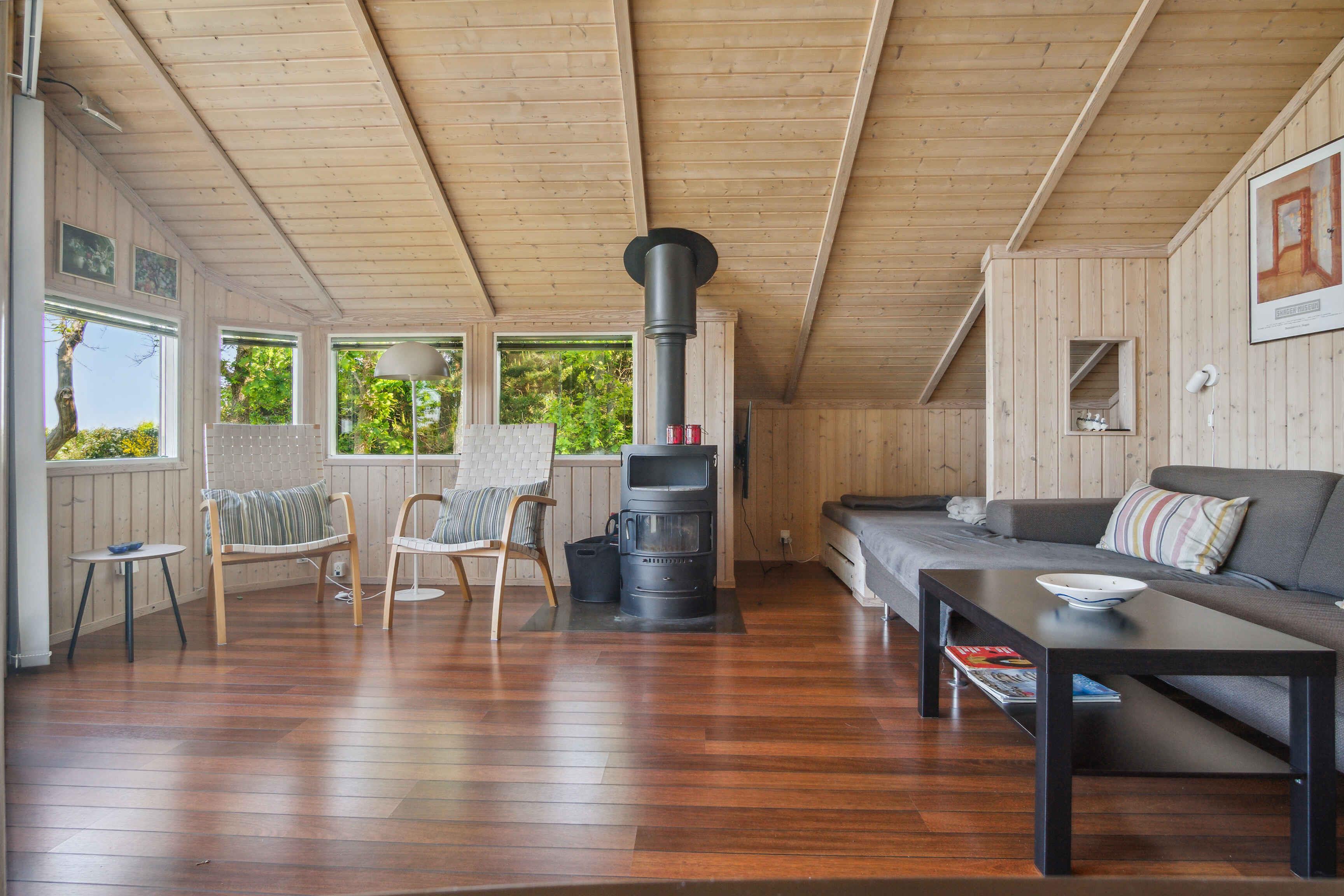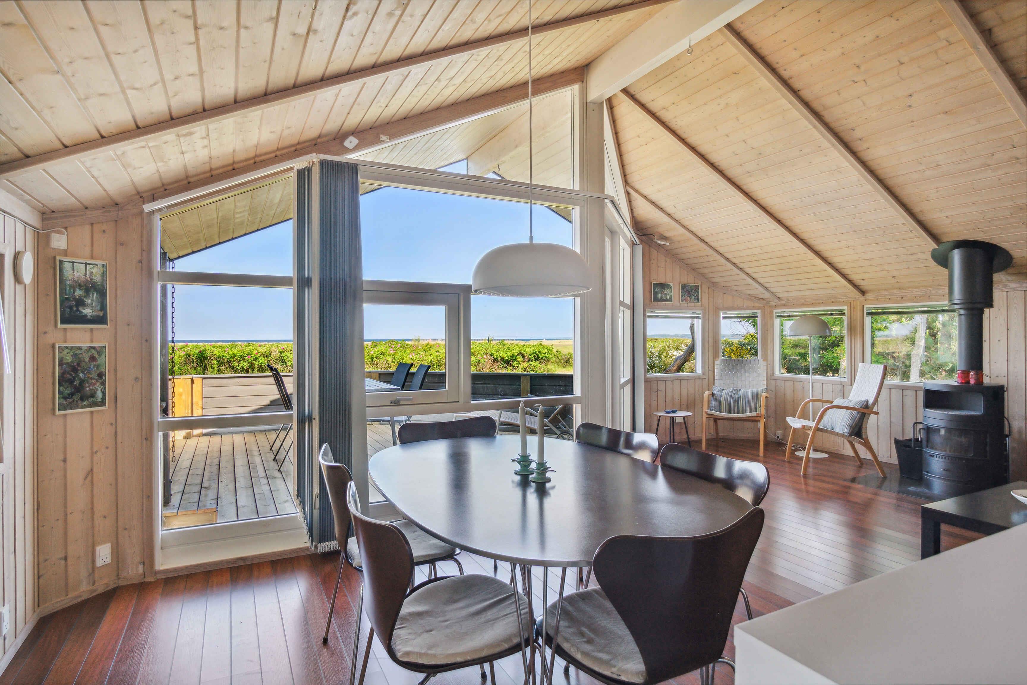 Willkommen in diesem charmanten Sommerhaus, wo jede Ecke des Hauses und des Gartens zu einem unvergesslichen Urlaubserlebnis einlädt. Bei der Ankunft werden Sie von einem wunderbaren Panoramablick von der Terrasse begrüßt, der sich über die sich verändernde Landschaft und das glitzernde Wasser erstreckt. Die einzigartige Lage auf einem Naturgrundstück am Strand ermöglicht es Ihnen, die wahre Schönheit und Ruhe der Natur zu erleben. Mit nur 200 Metern zum klaren, blauen Wasser ist es einfach, in den Urlaubsrhythmus mit entspannten Tagen am Strand und erfrischenden Schwimmen zu gelangen. Sonnenuntergänge über dem Meer werden tägliches Highlight sein, während Sie Ihre Gedanken frei lassen und unvergessliche Momente zusammen schaffen. Im Inneren des Hauses werden Sie von einer hellen und offenen Atmosphäre begrüßt, in der moderne Möbel eine stilvolle und komfortable Oase schaffen. Vom Wohnzimmer über die Küche bis hin zu den drei gemütlichen Schlafzimmern ist alles auf Ihren Komfort und Ihr Wohlbefinden ausgerichtet. Ein Holzofen sorgt für eine zusätzliche Dimension der Gemütlichkeit, perfekt für kühle Abende oder frühe Morgenstunden, wenn der Morgennebel noch über dem Meer hängt. Neben dem unmittelbaren Charme und Komfort des Sommerhauses erwartet Sie eine aufregende Umgebung, die es zu erkunden gilt. Unternehmen Sie Abenteuer in den umliegenden Dörfern, wo Sie lokale Kultur und Gastronomie genießen können. Entdecken Sie die wunderschöne Landschaft, die zu Radtouren durch Wälder und Felder oder Wanderungen entlang von Pfaden einlädt, die zu versteckten Schätzen und atemberaubenden Aussichtspunkten führen. Alles in allem können Sie sich auf ein unvergessliches Urlaubserlebnis in diesem schönen Sommerhaus freuen. Willkommen an einem Ort, an dem jeder Tag neue Abenteuer und schöne Momente bietet.